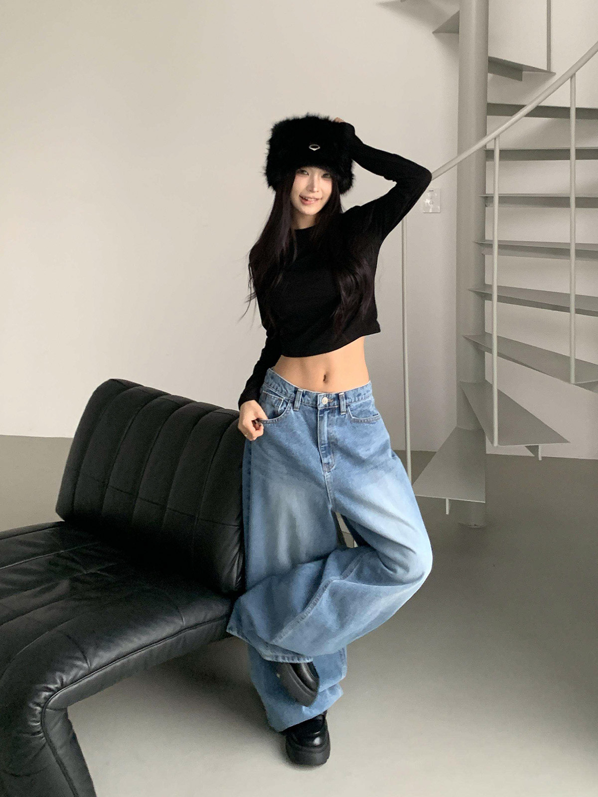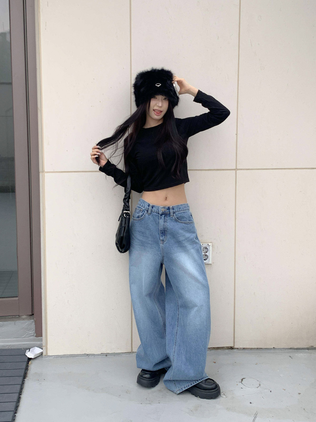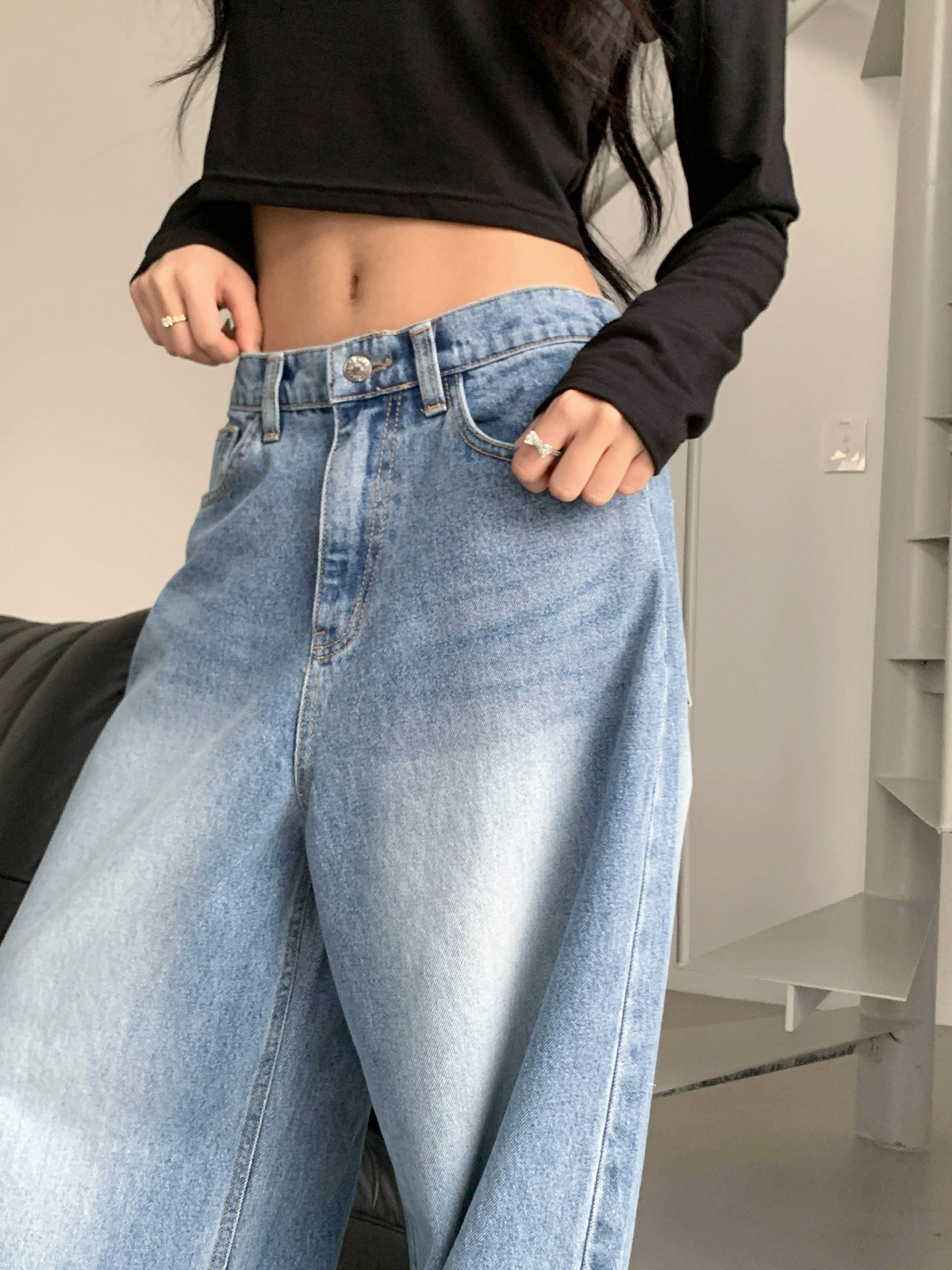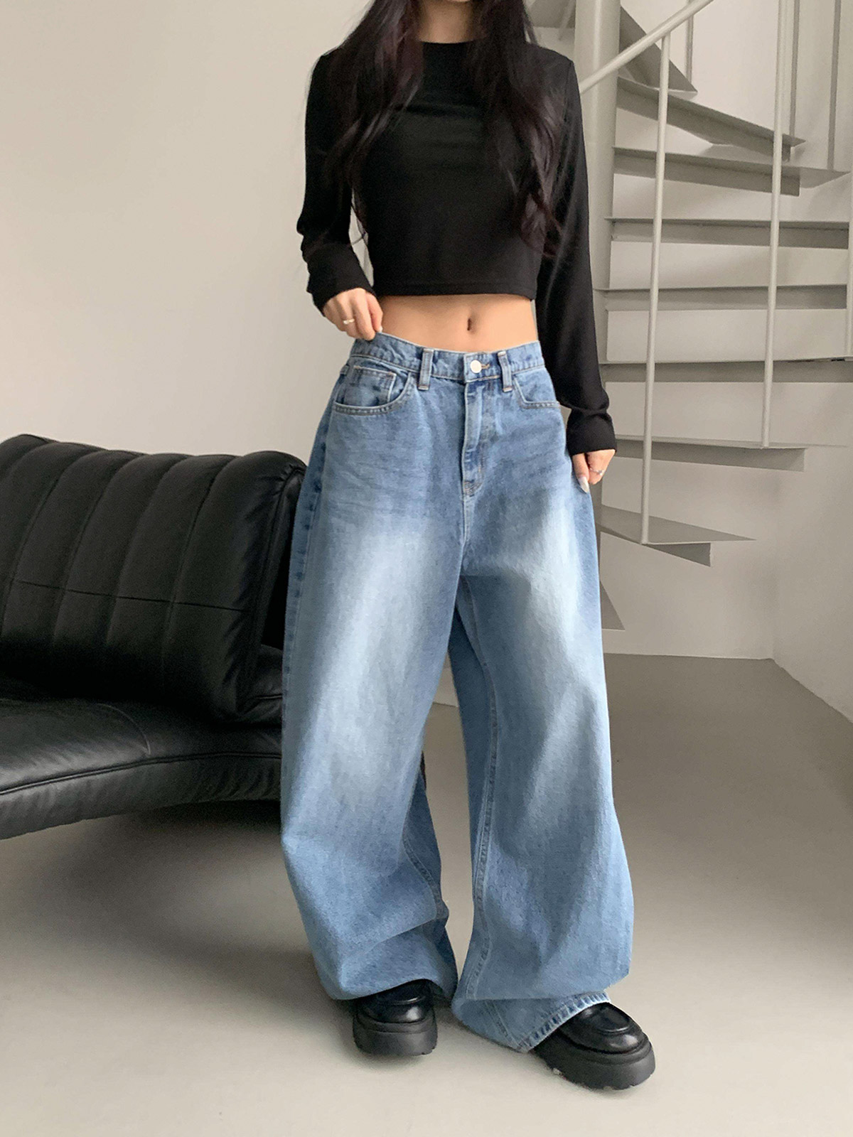 트렌디한 와이드 핏의 빈티지한 워싱이 포인트인 데님 팬츠