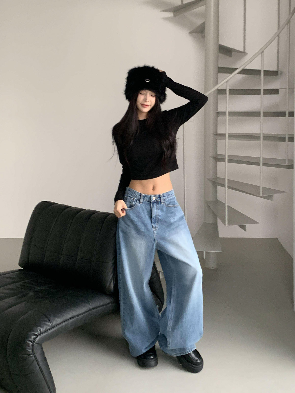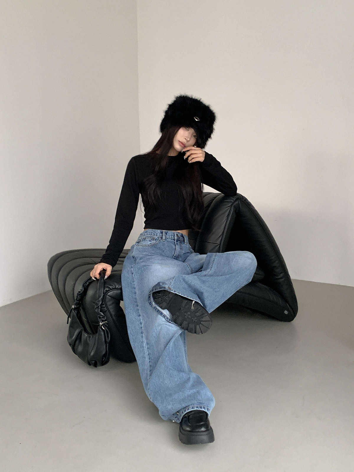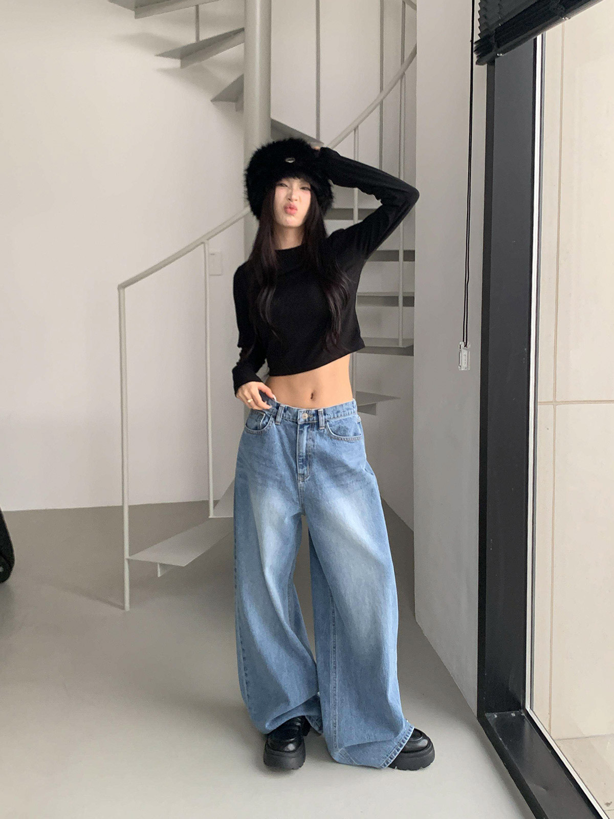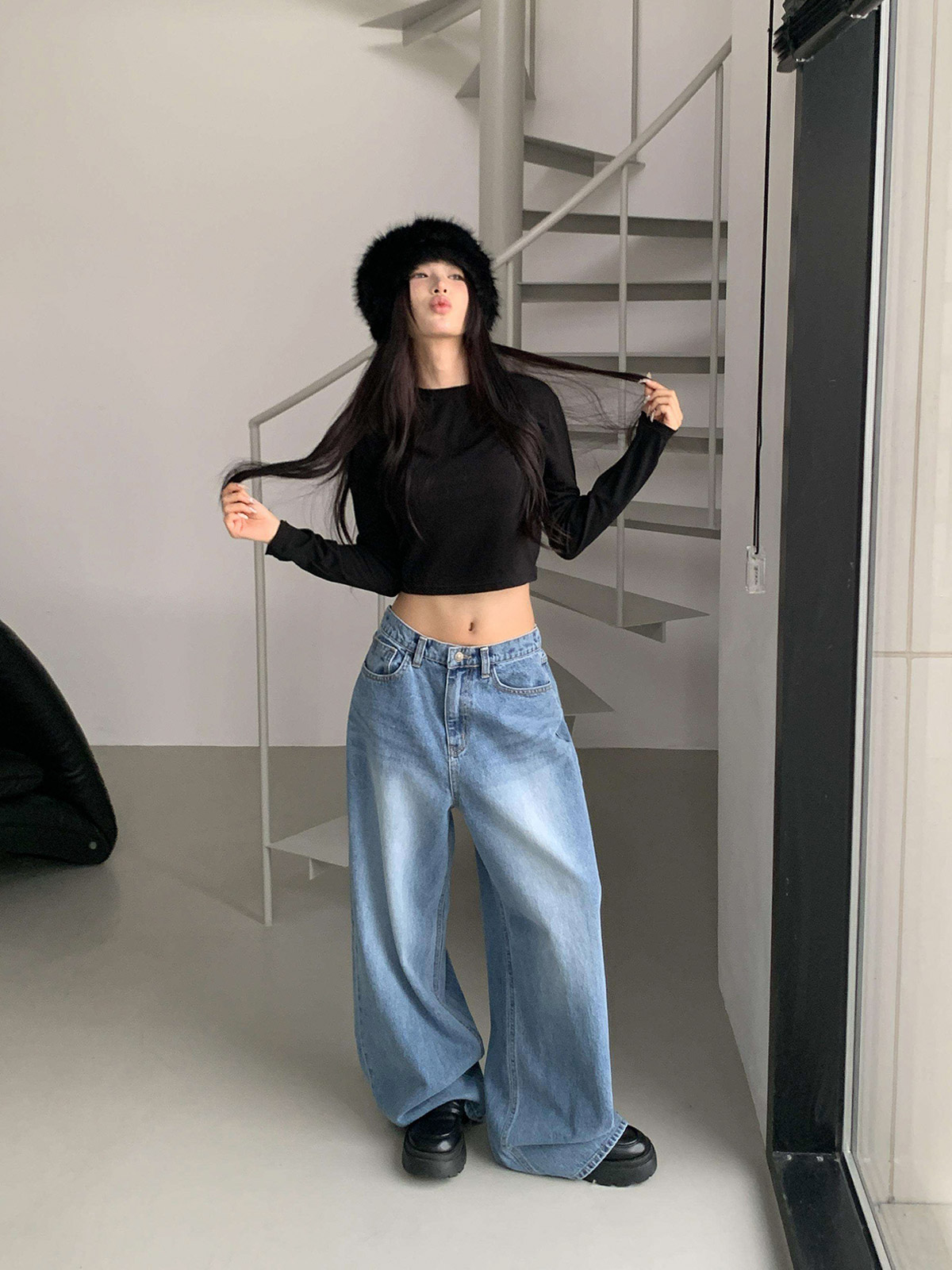 트렌디한 와이드 핏의 빈티지한 워싱이 포인트인 데님 팬츠