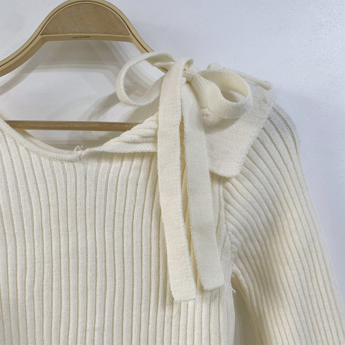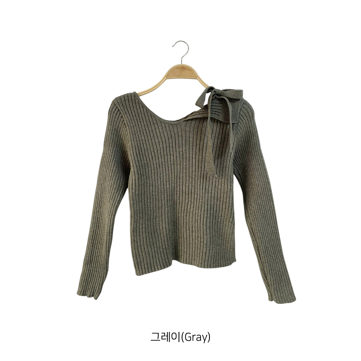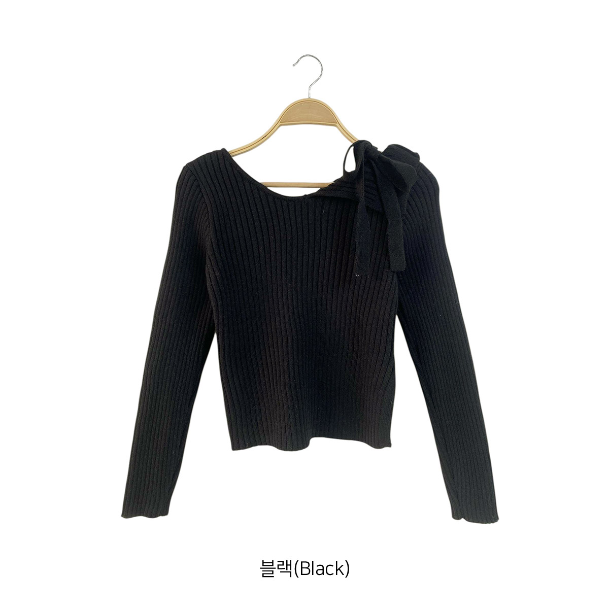 [ NT6098K5B-푸으스 슬림핏 골지 스트랩 오프 니트 ]