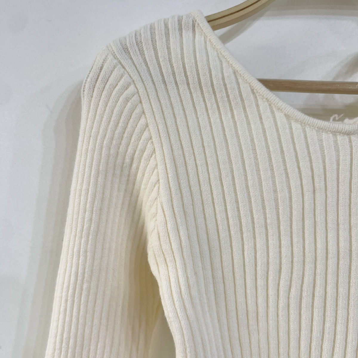 잔잔한 세로 골지 짜임의 슬림핏 오프 니트