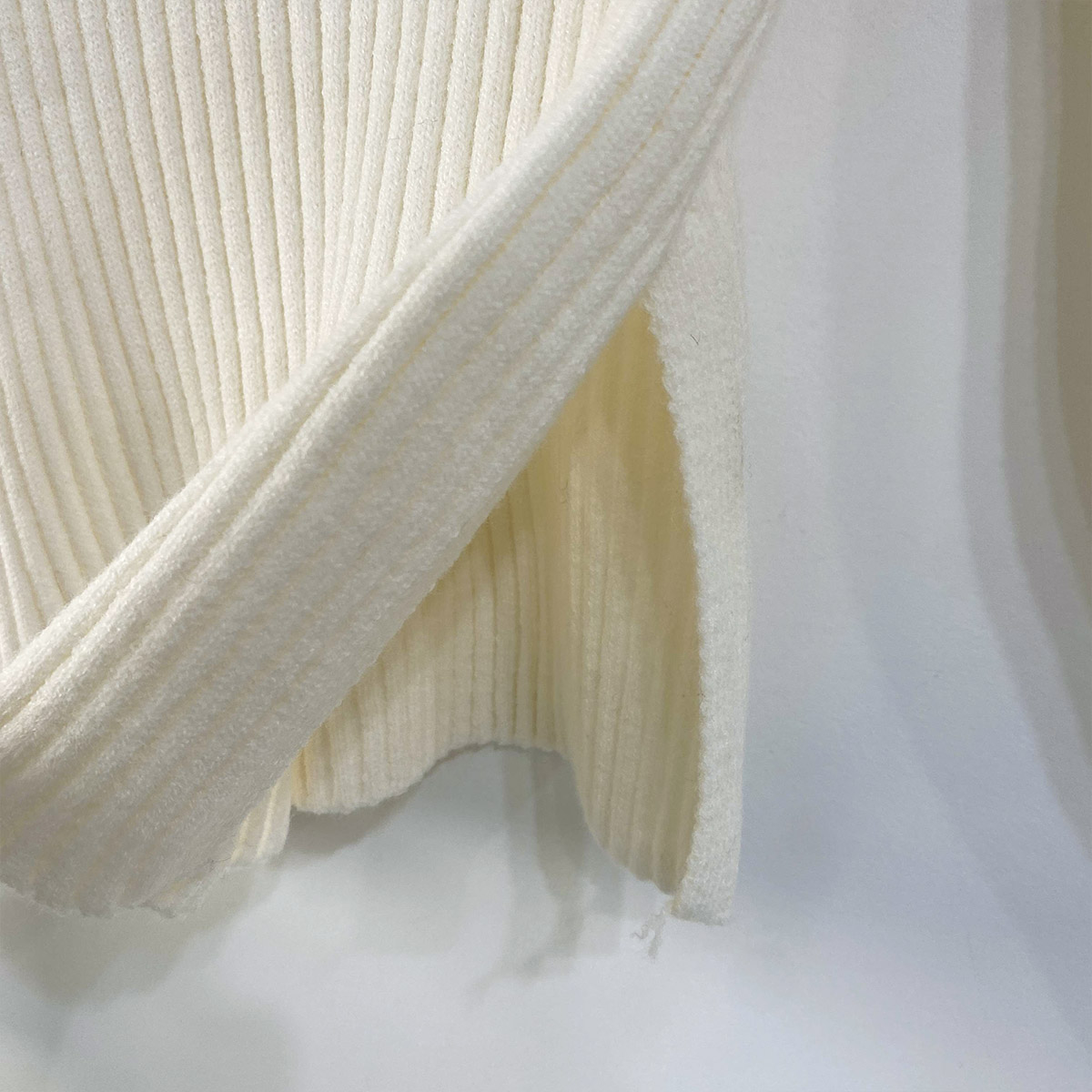 잔잔한 세로 골지 짜임이 슬림한 핏을 잡아주며