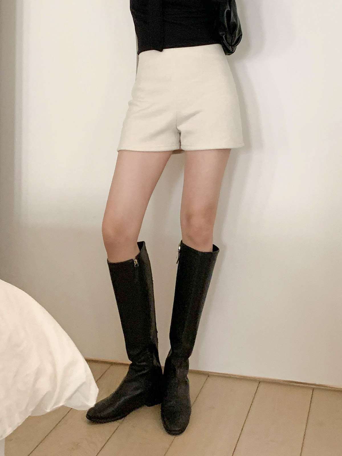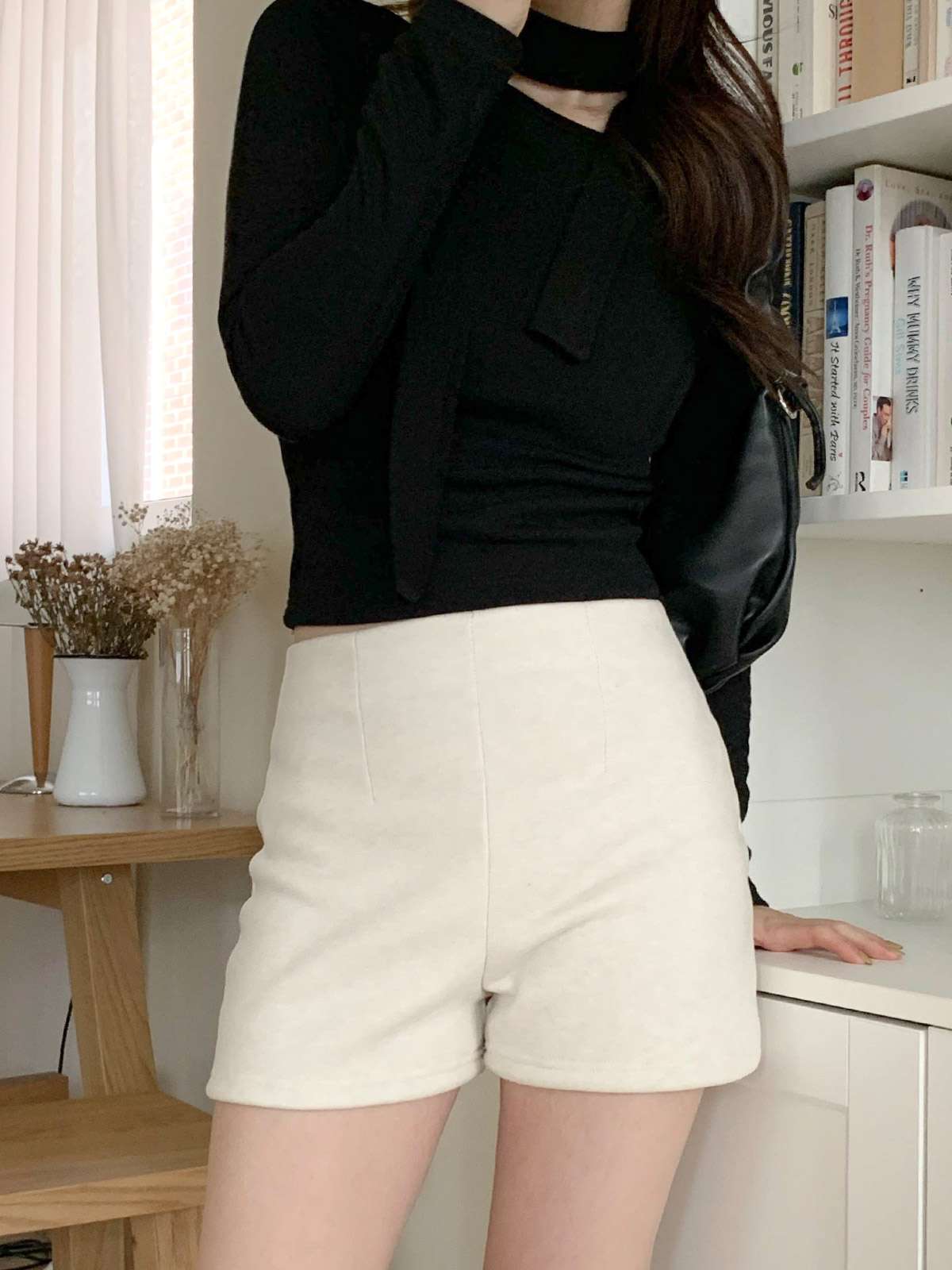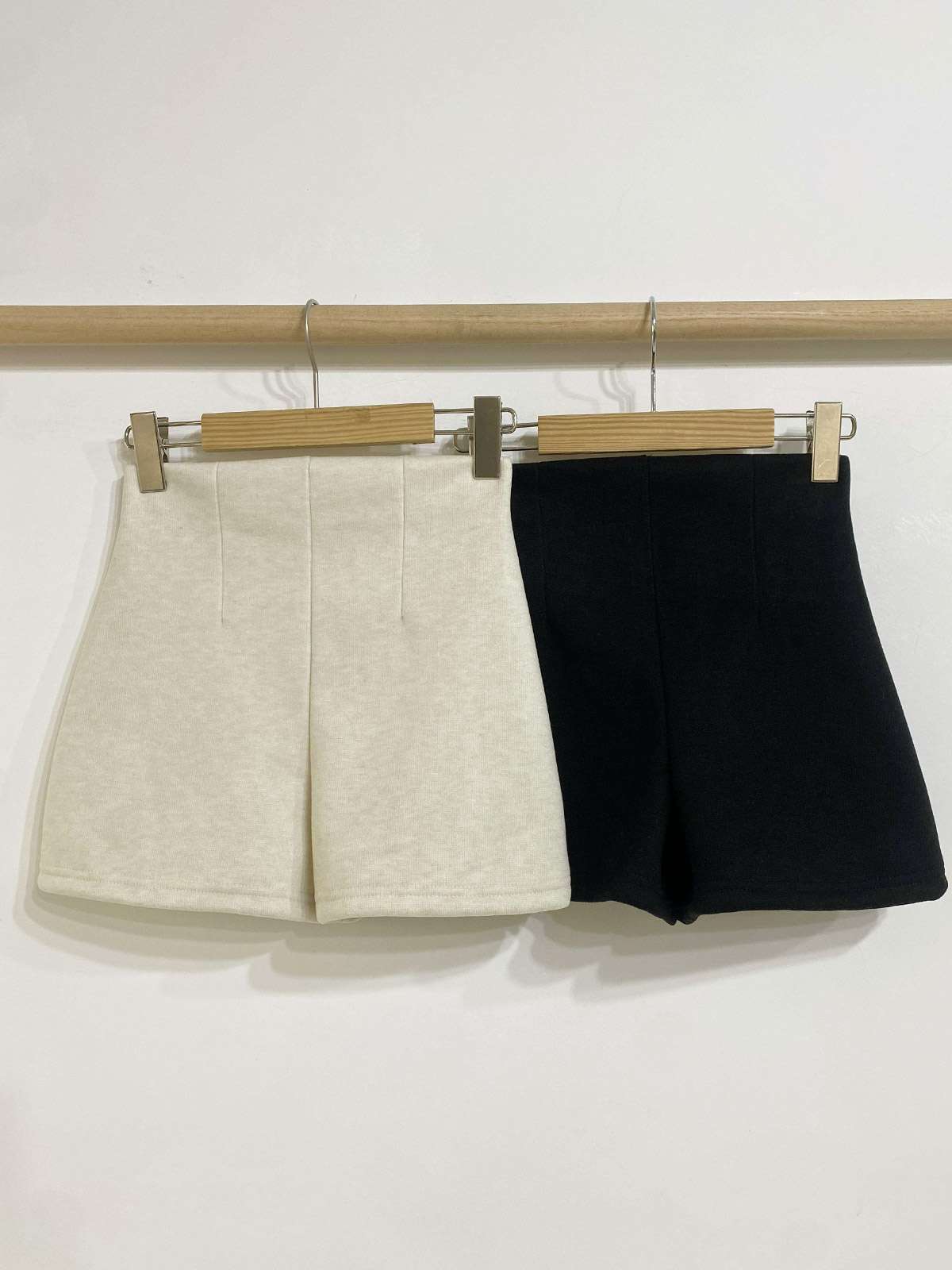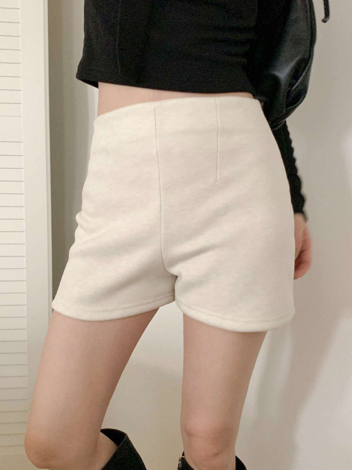 하이웨이스트 디자인과 A라인 핏의 기모 반바지