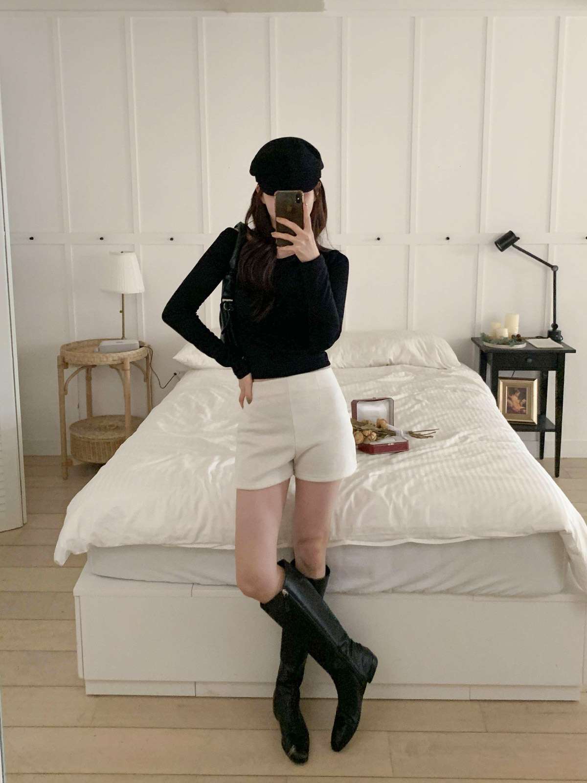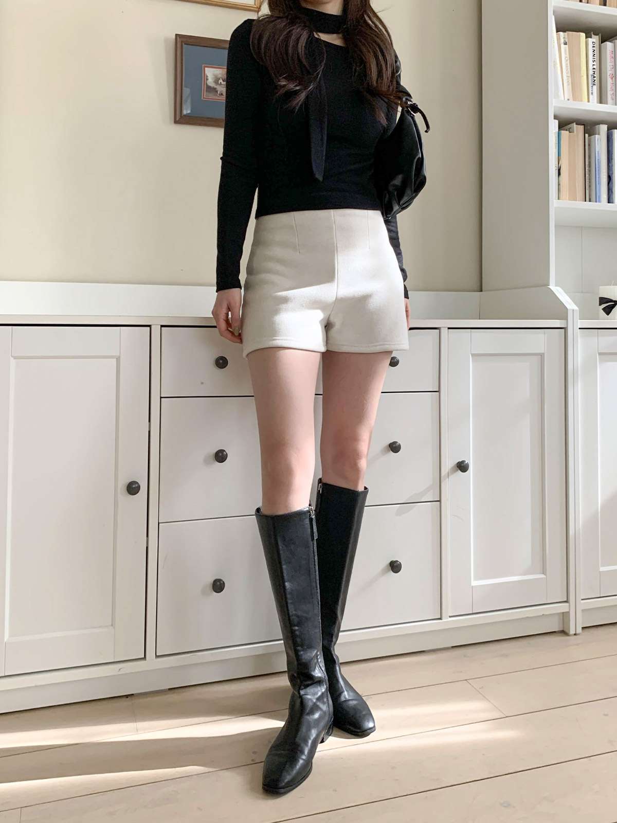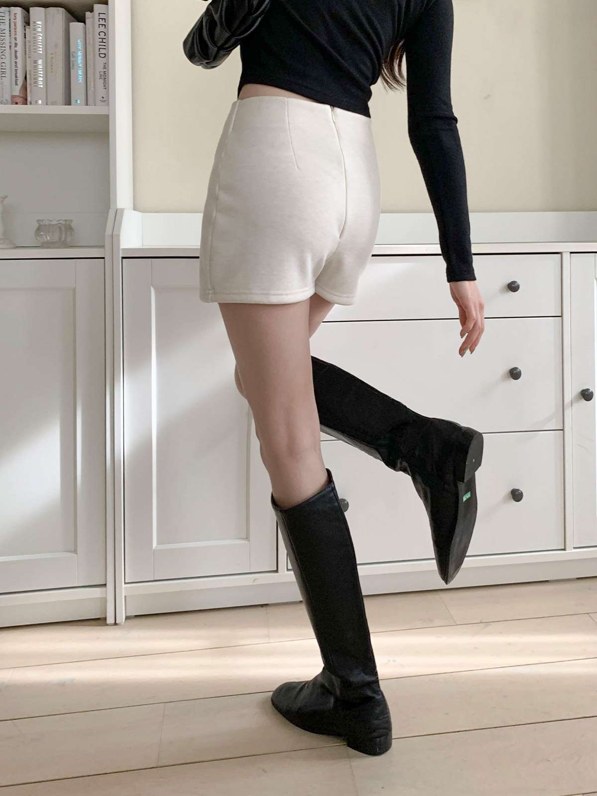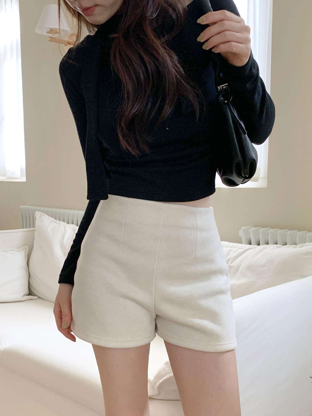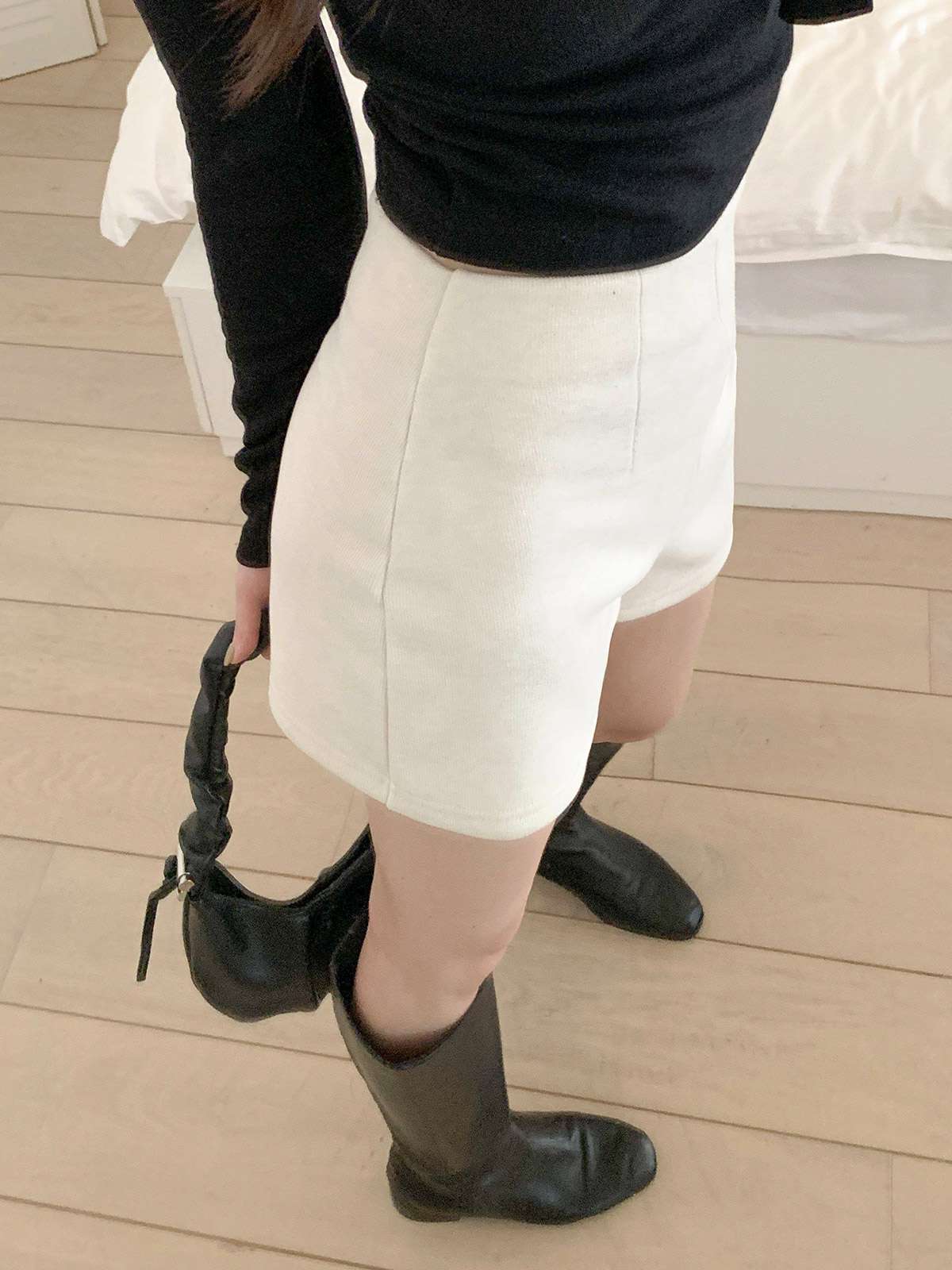 하이웨이스트 디자인과 A라인 핏의 기모 반바지