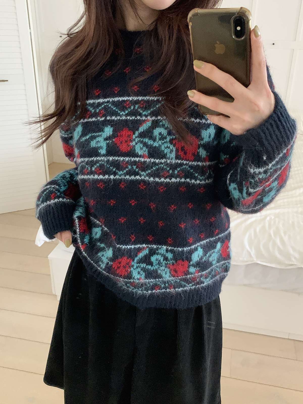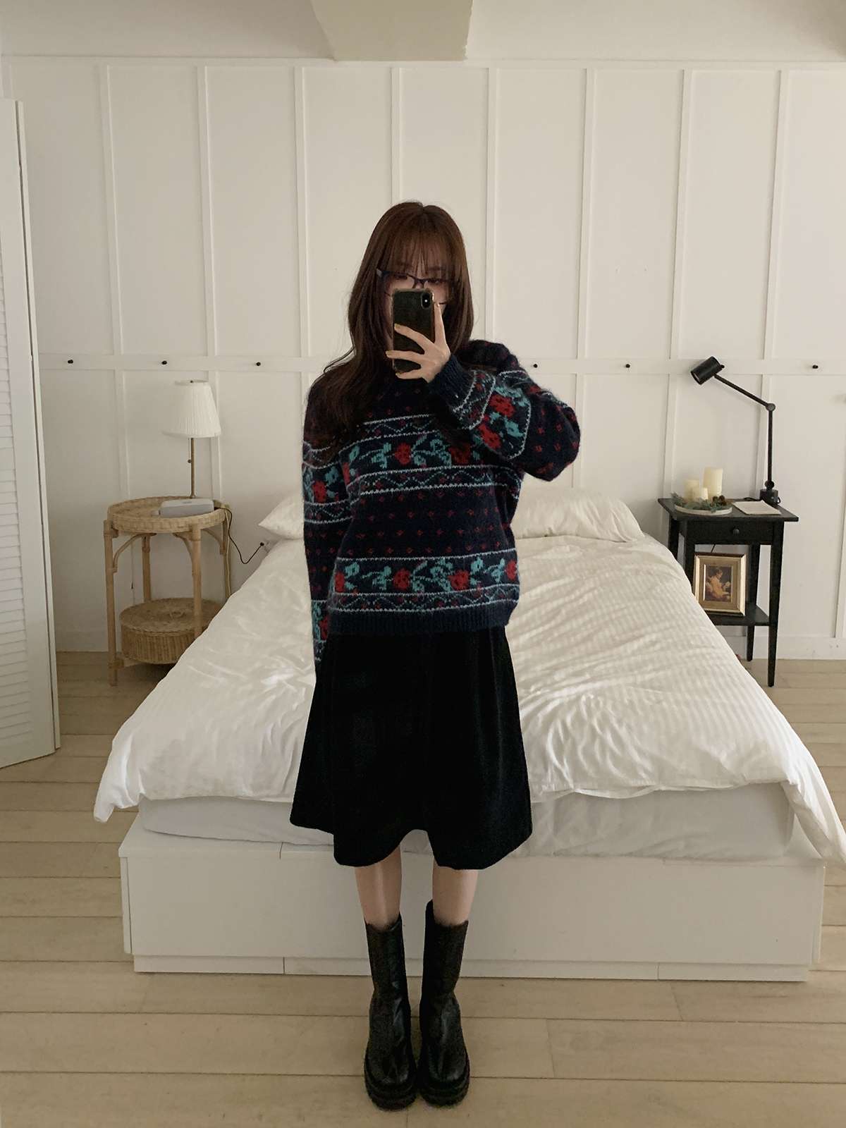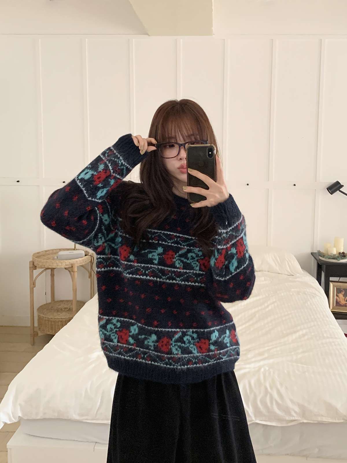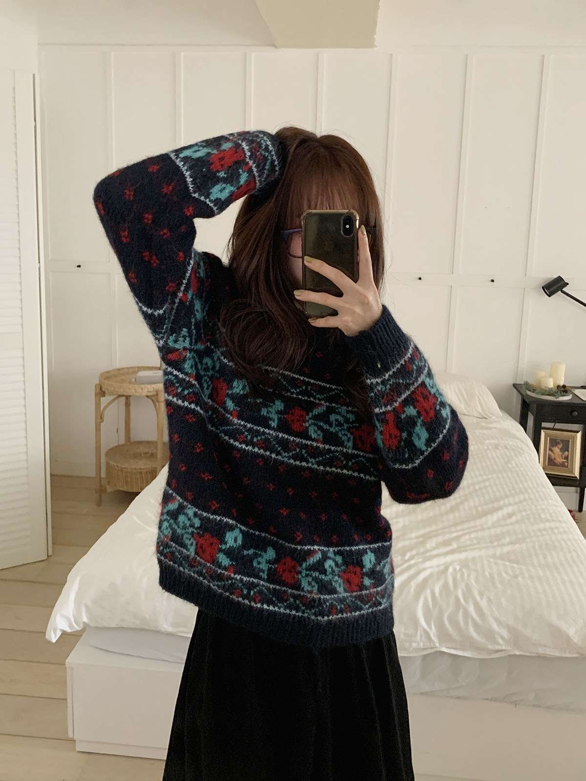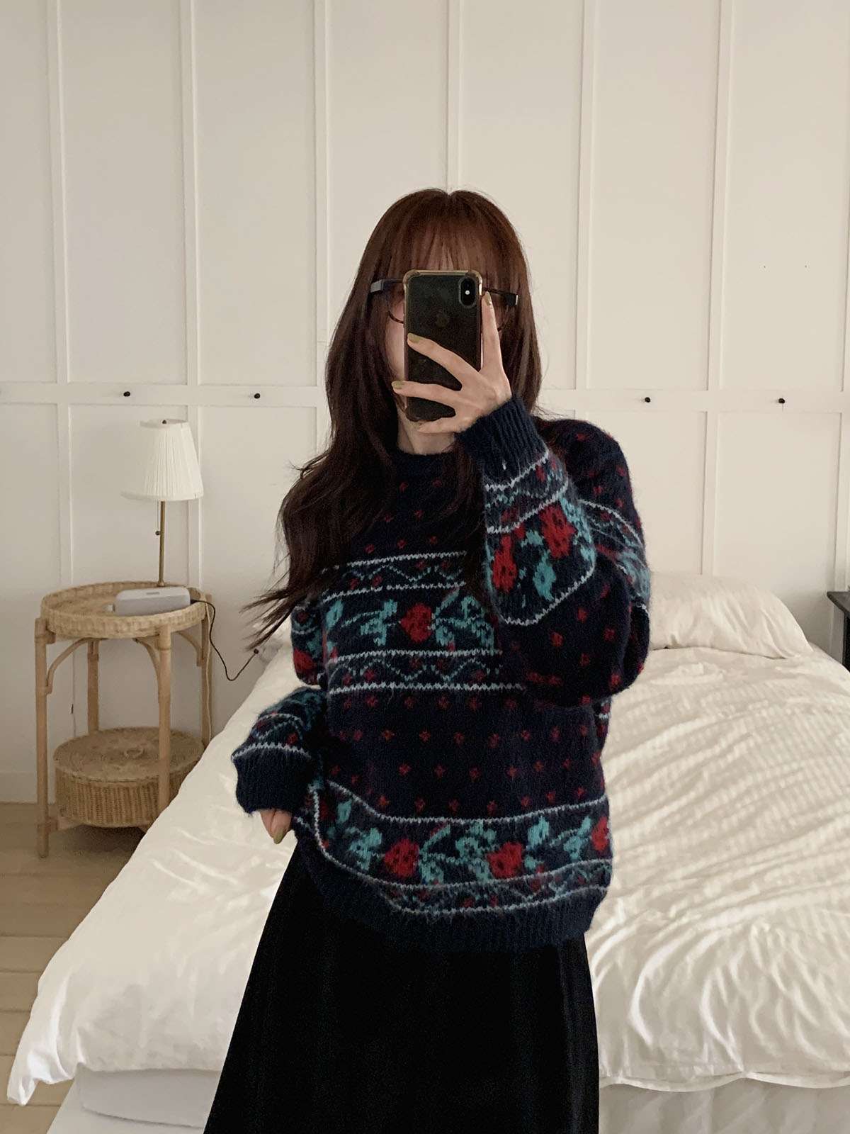 #니트#플라워#패턴#라운드넥#루즈핏#울#폴리#아크릴#겨울#러블리#플라워니트#패턴니트#라운드니트#루즈핏니트#겨울니트#플라워패턴#체형커버#부드러운니트#울니트#플라워패턴니트#라운드루즈핏니트#울플라워니트#겨울패턴니트#감성적인플라워니트#유니크#포인트#데일리룩#연말룩#겨울룩#데이트룩#러블리룩#캐주얼룩#캠퍼스룩#포근한룩