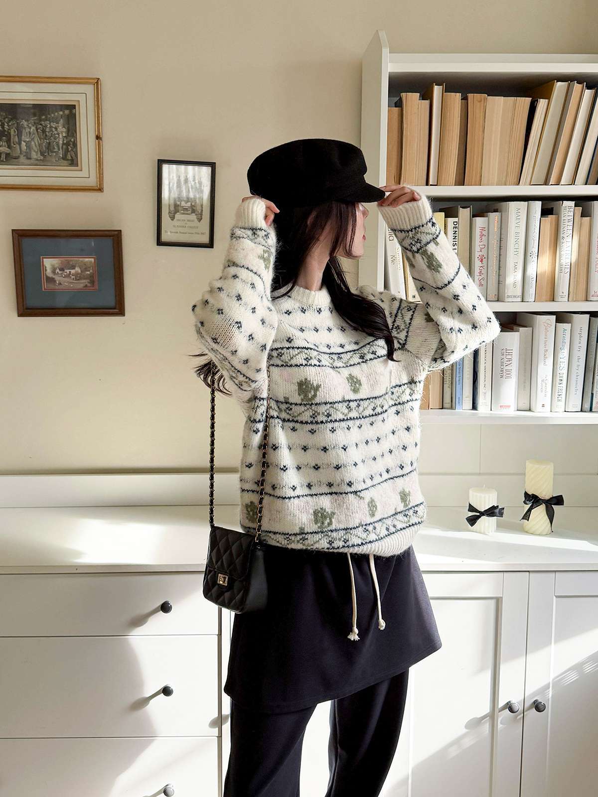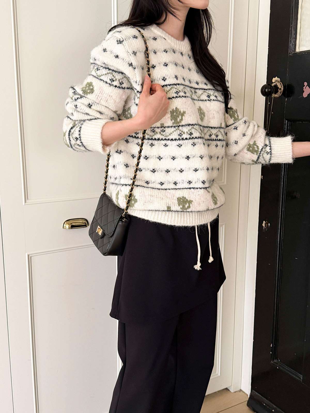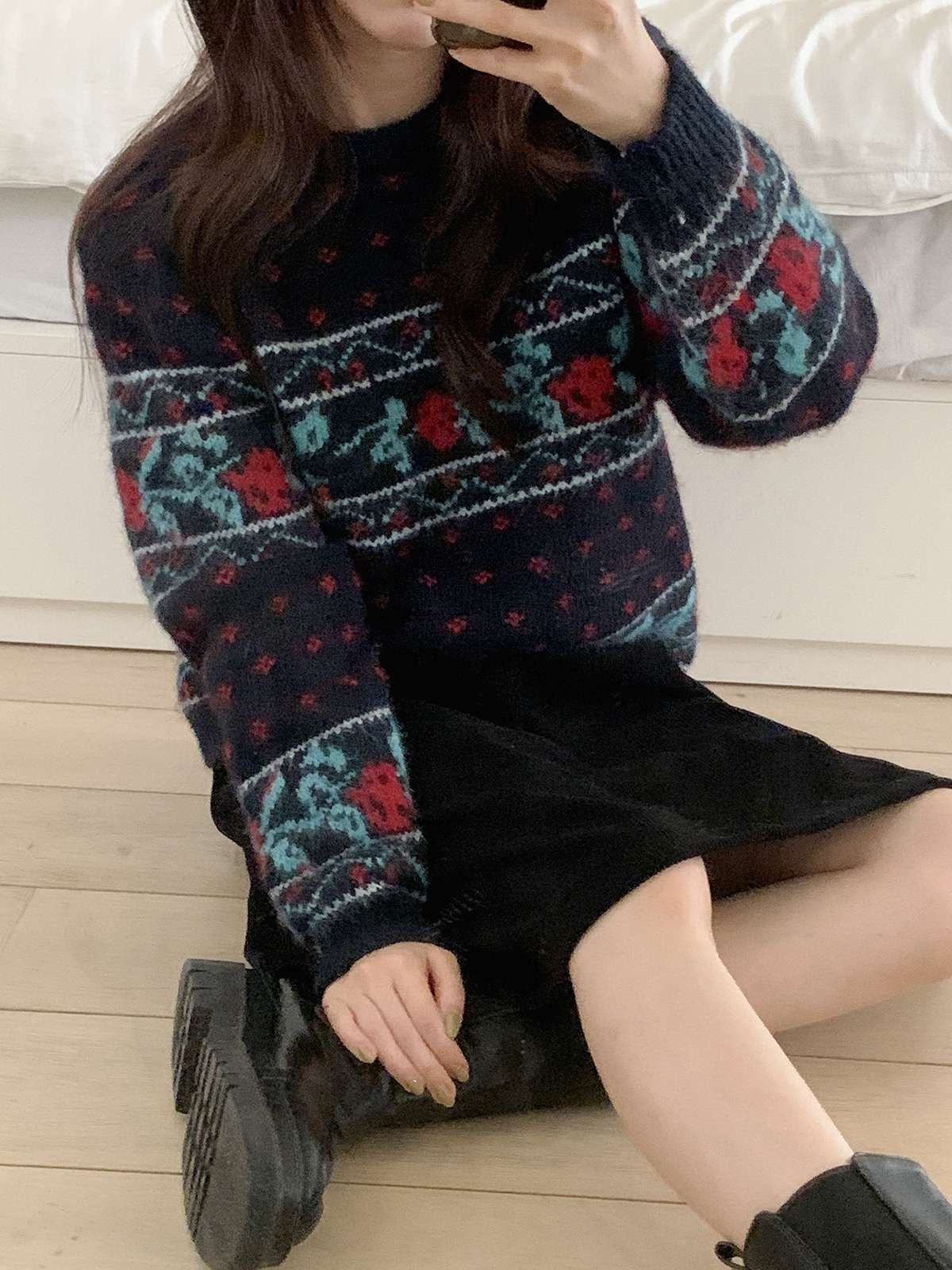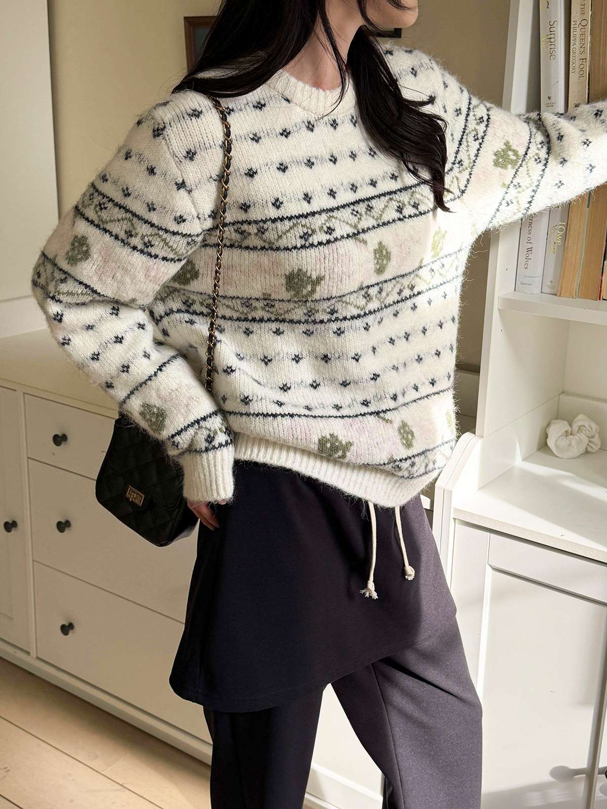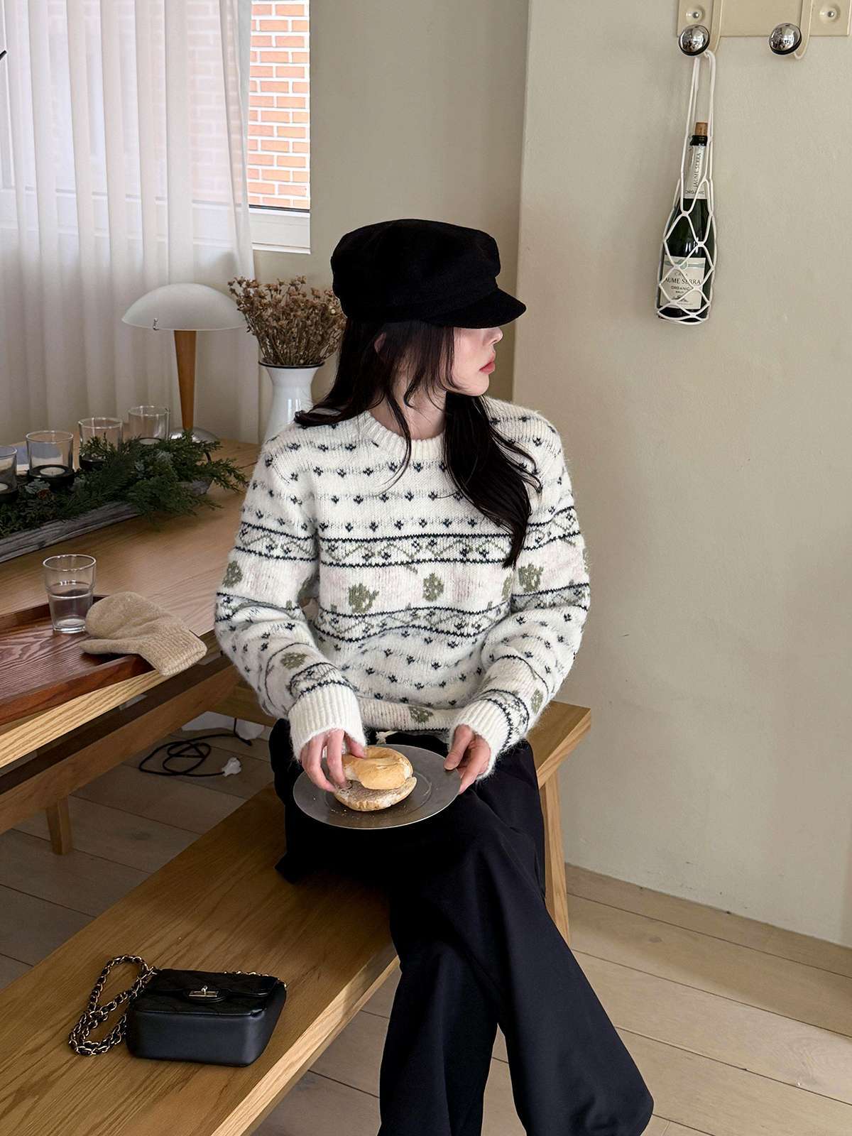 #니트#플라워#패턴#라운드넥#루즈핏#울#폴리#아크릴#겨울#러블리#플라워니트#패턴니트#라운드니트#루즈핏니트#겨울니트#플라워패턴#체형커버#부드러운니트#울니트#플라워패턴니트#라운드루즈핏니트#울플라워니트#겨울패턴니트#감성적인플라워니트#유니크#포인트#데일리룩#연말룩#겨울룩#데이트룩#러블리룩#캐주얼룩#캠퍼스룩#포근한룩
