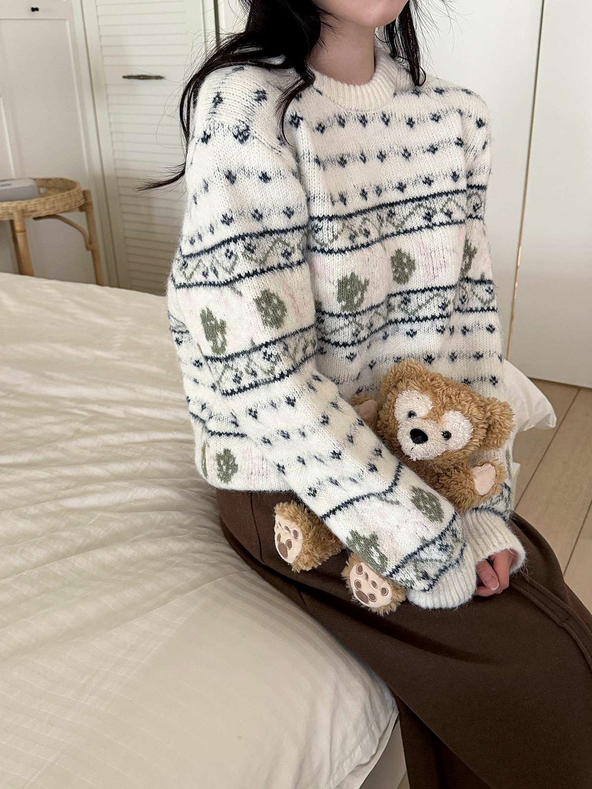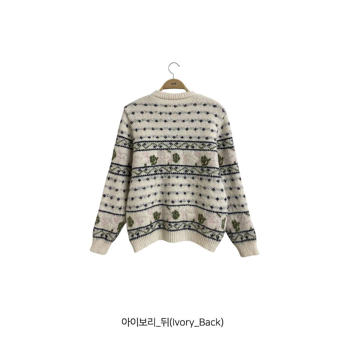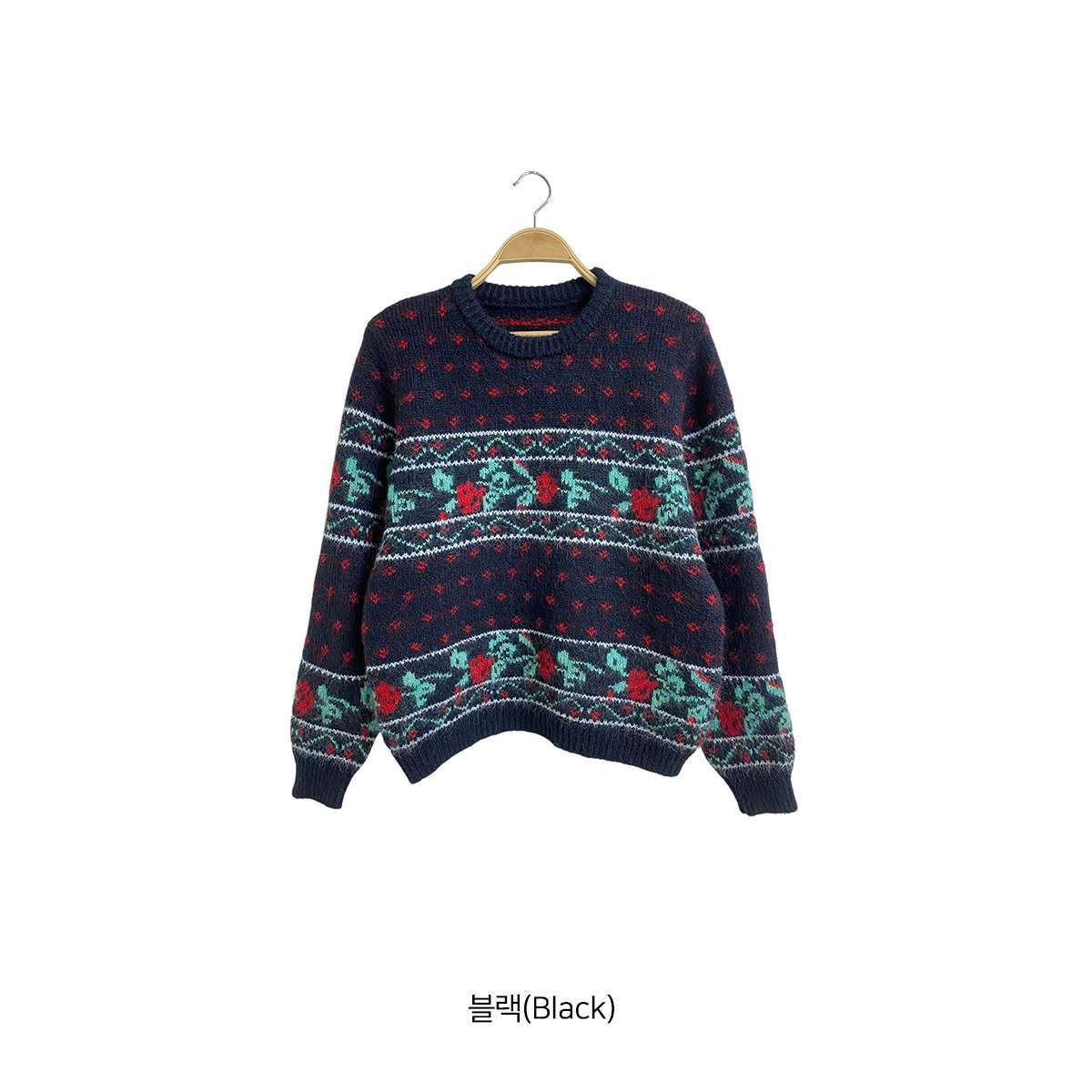 NT6104K5B-루벨드 플라워 패턴 라운드 루즈핏 니트