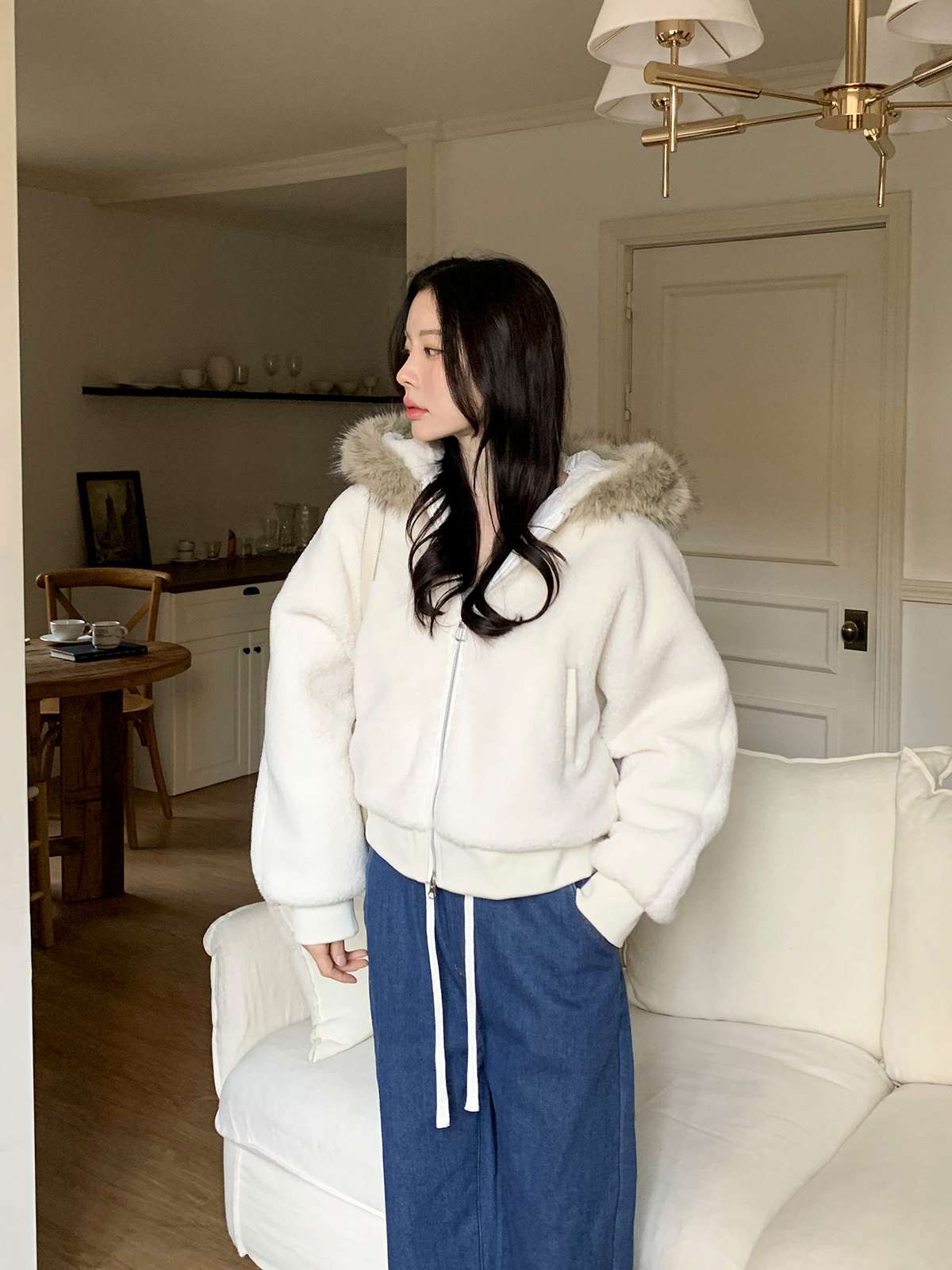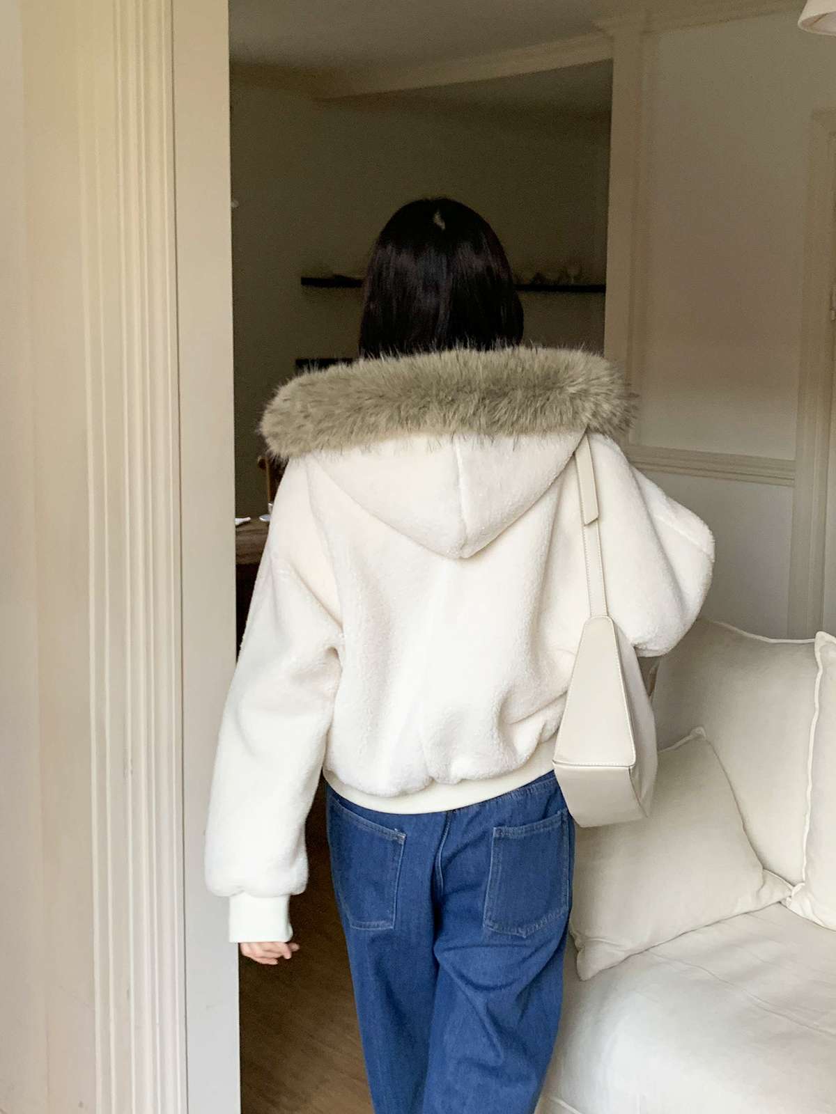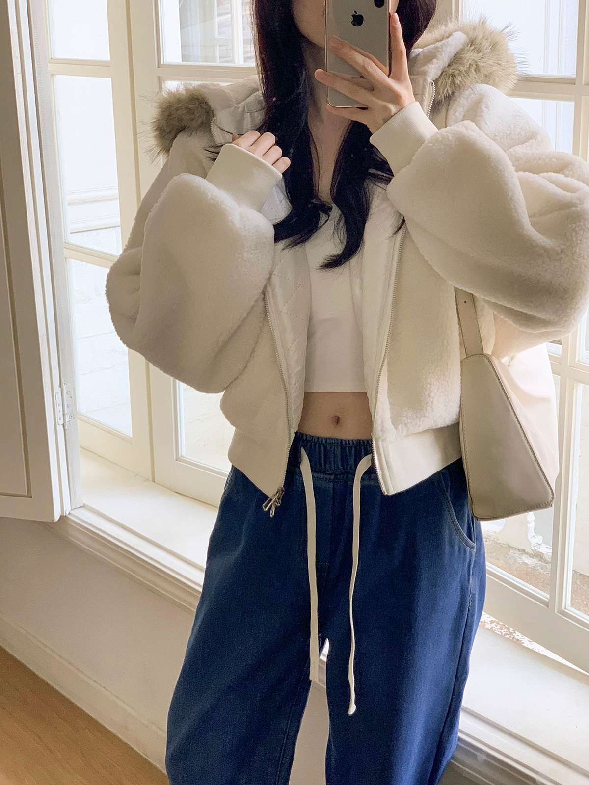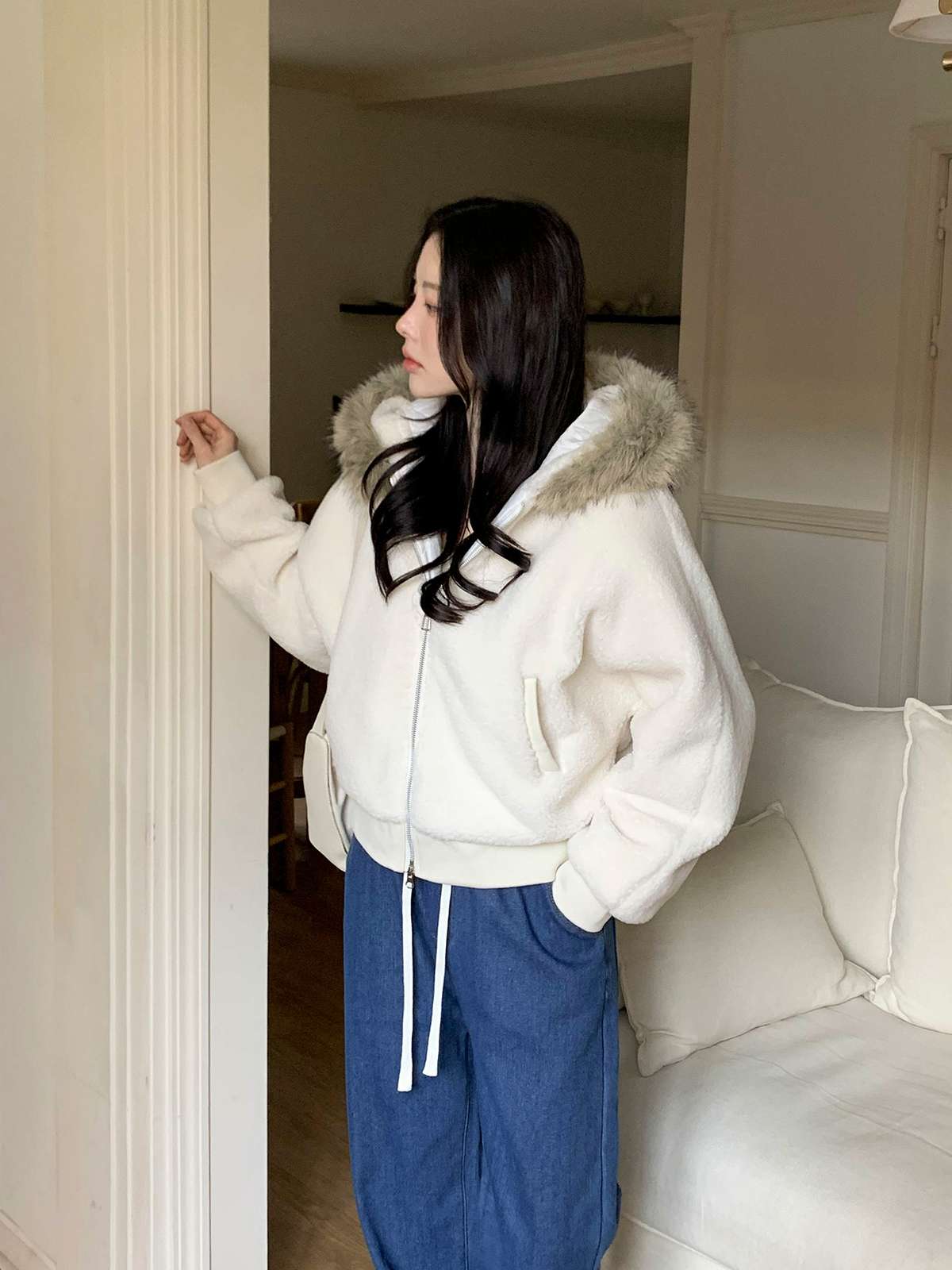 [ JK6126K5B-디엘르 양털 플리스 퍼 후드 점퍼 ]