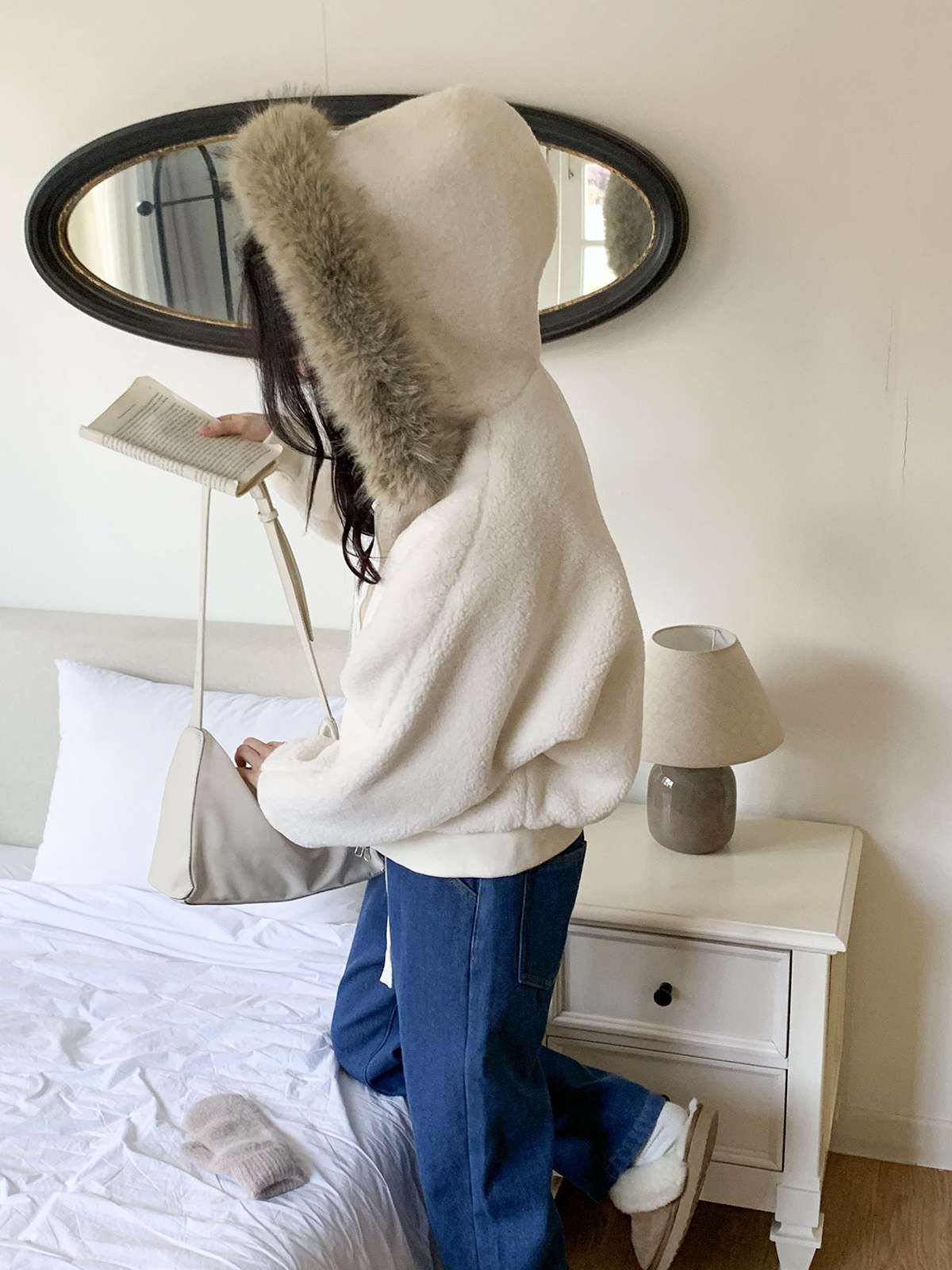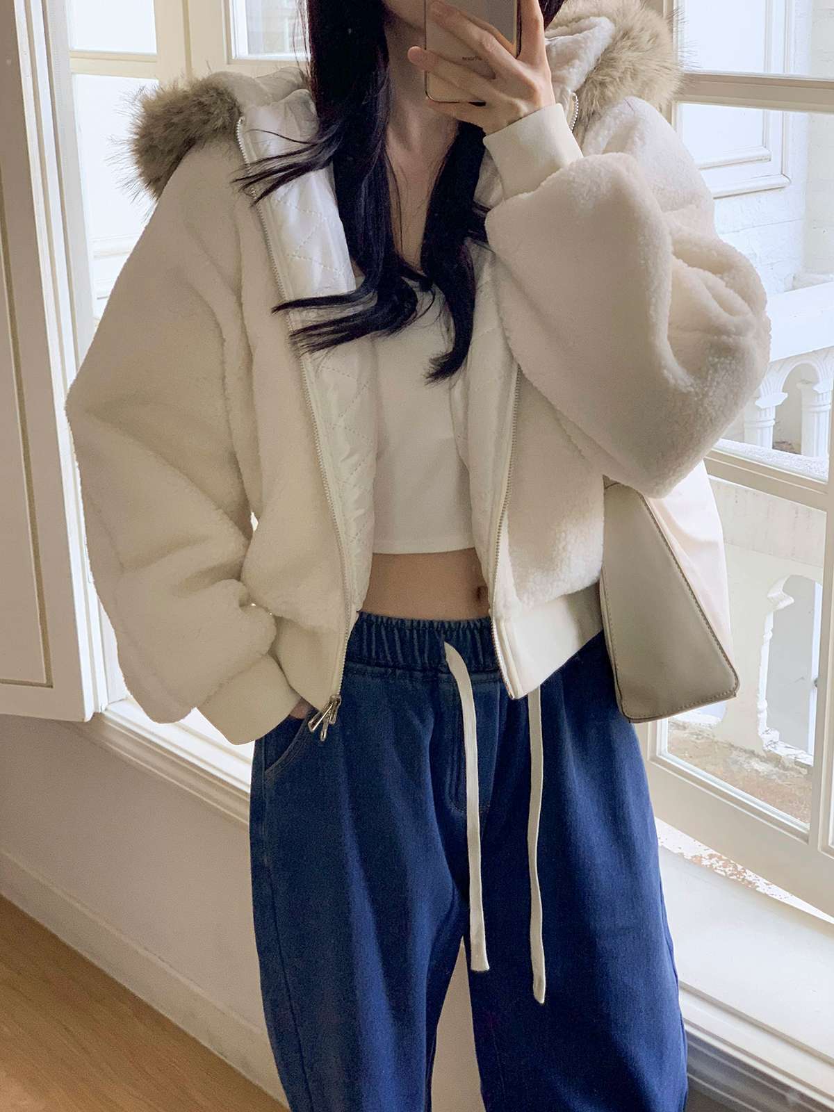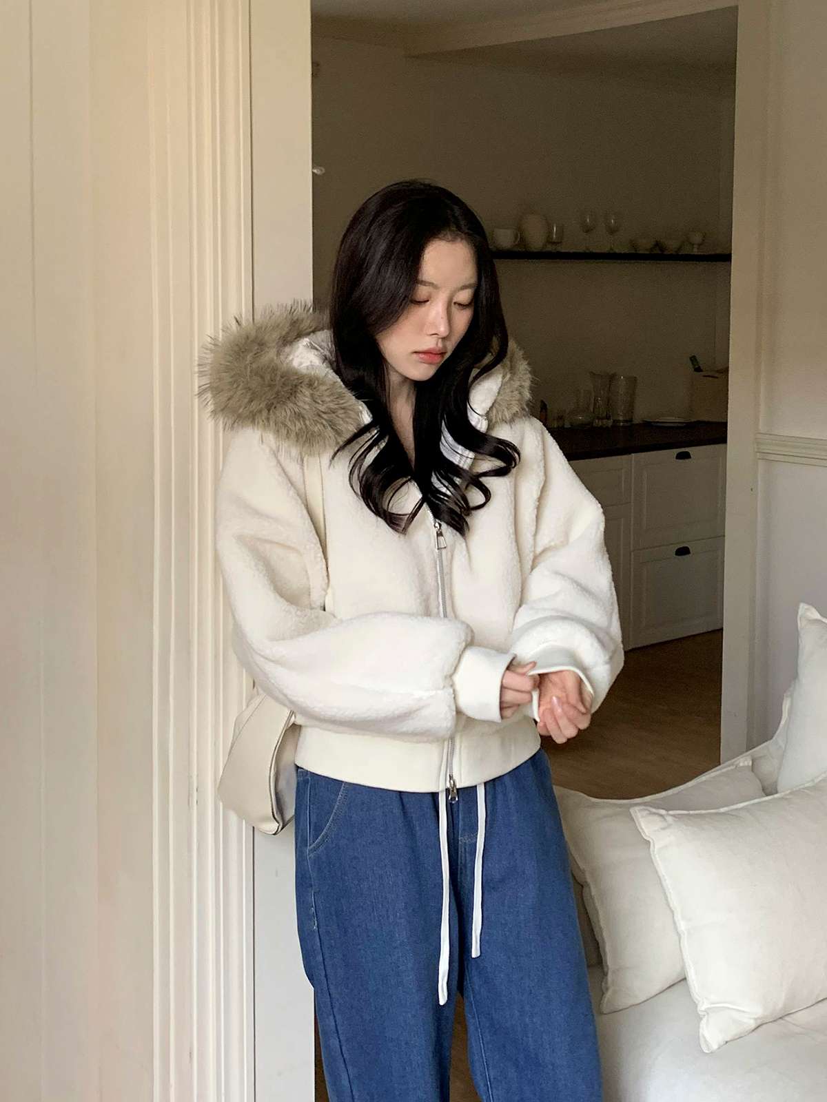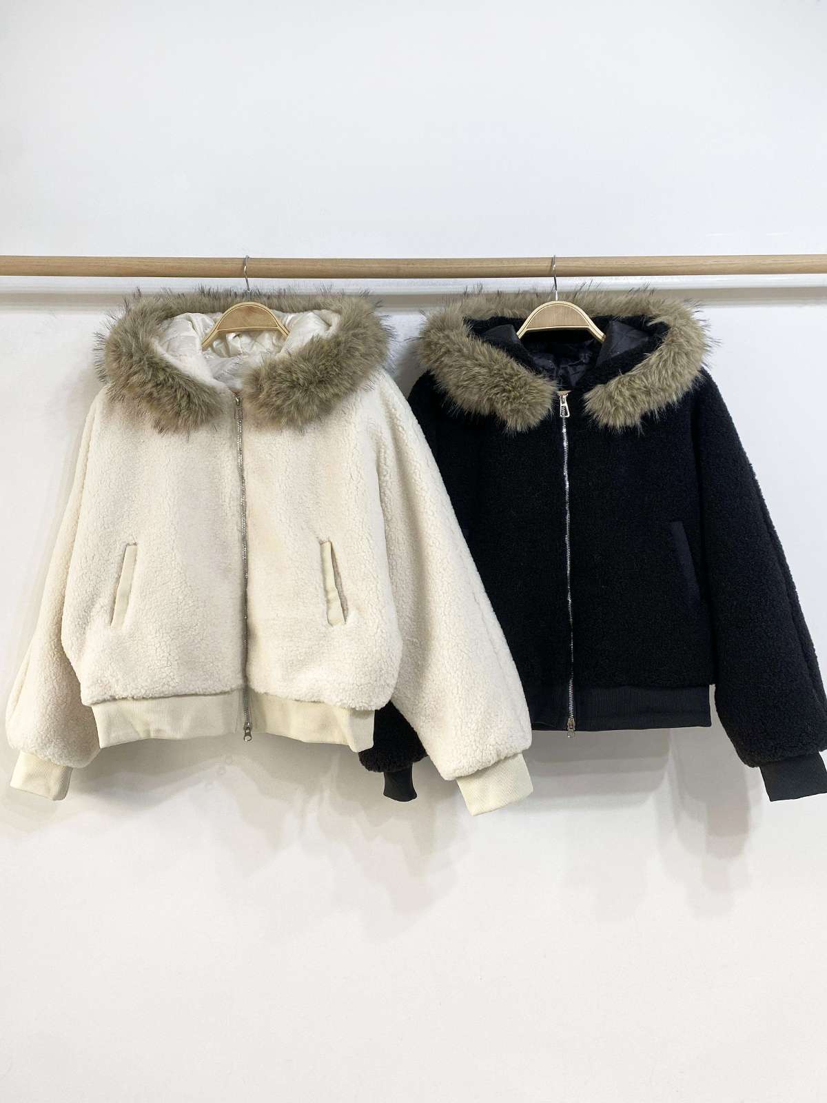[ JK6126K5B-디엘르 양털 플리스 퍼 후드 점퍼 ]