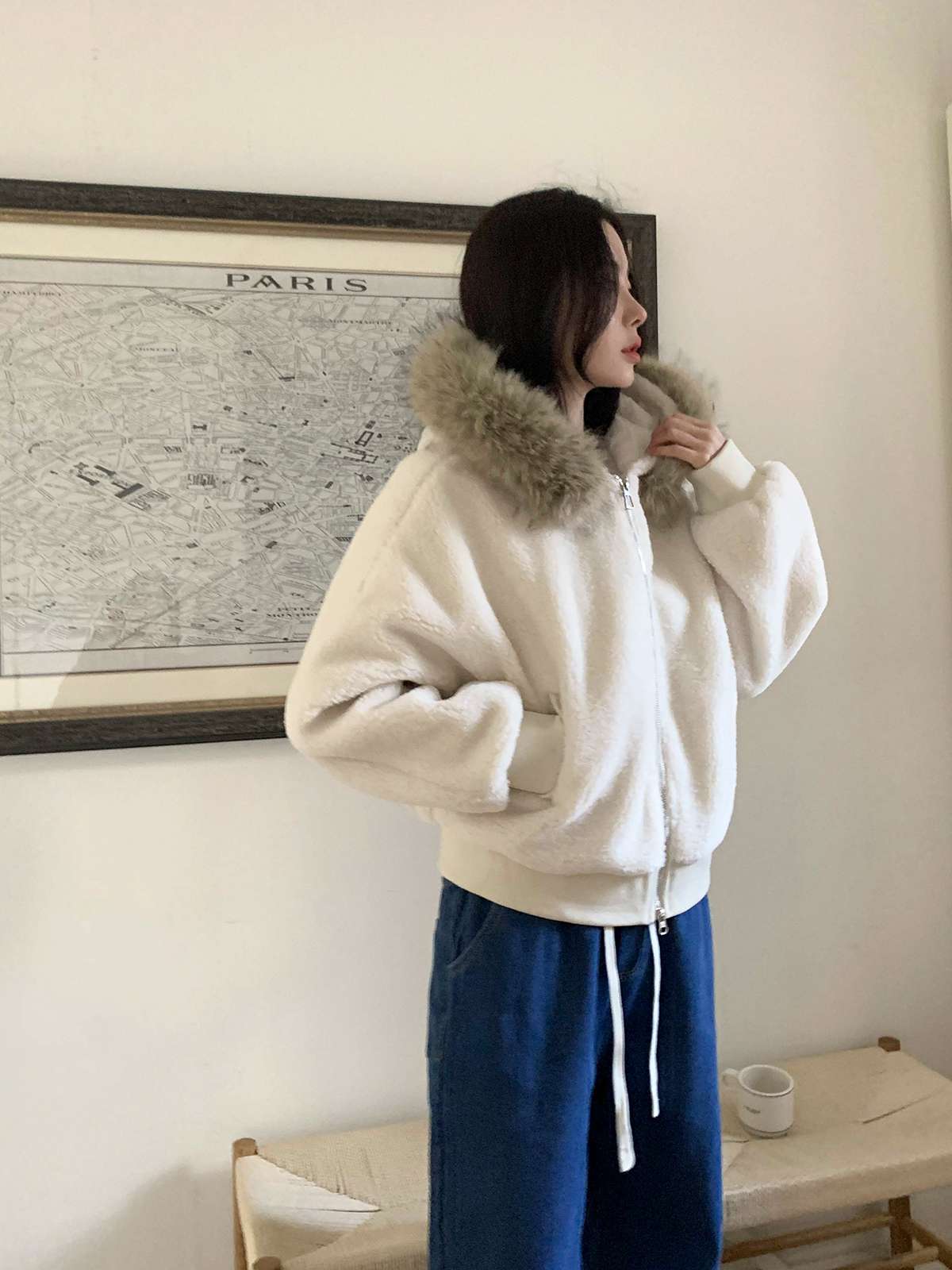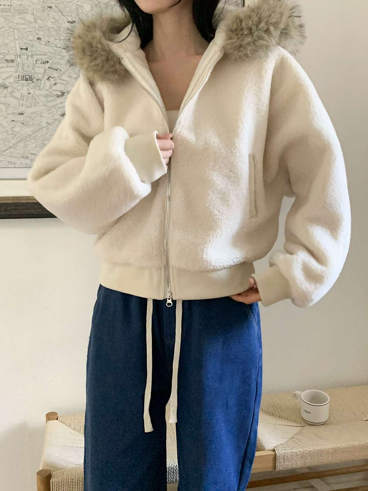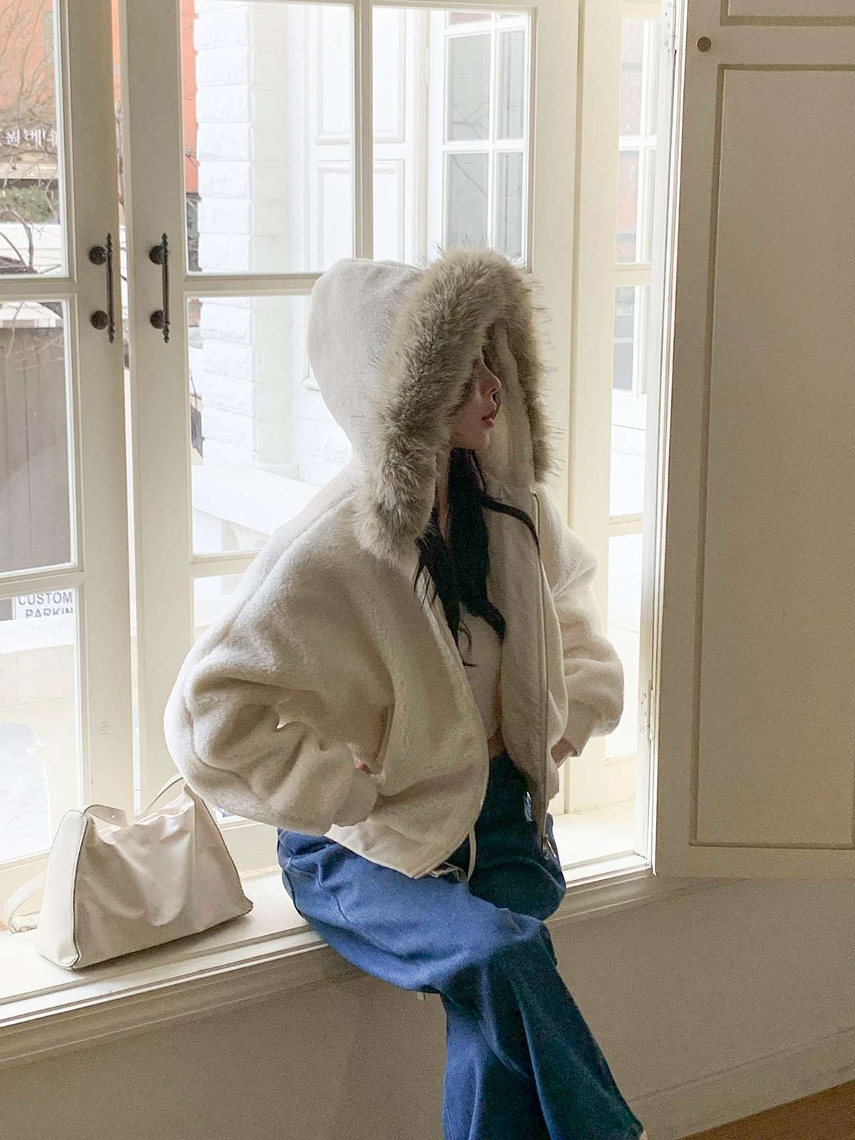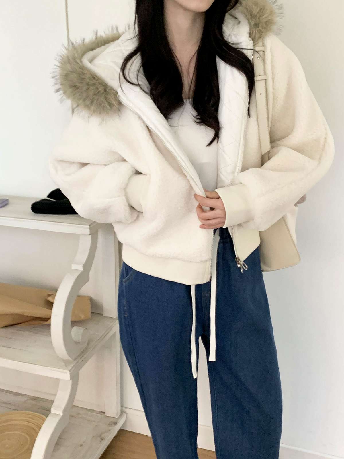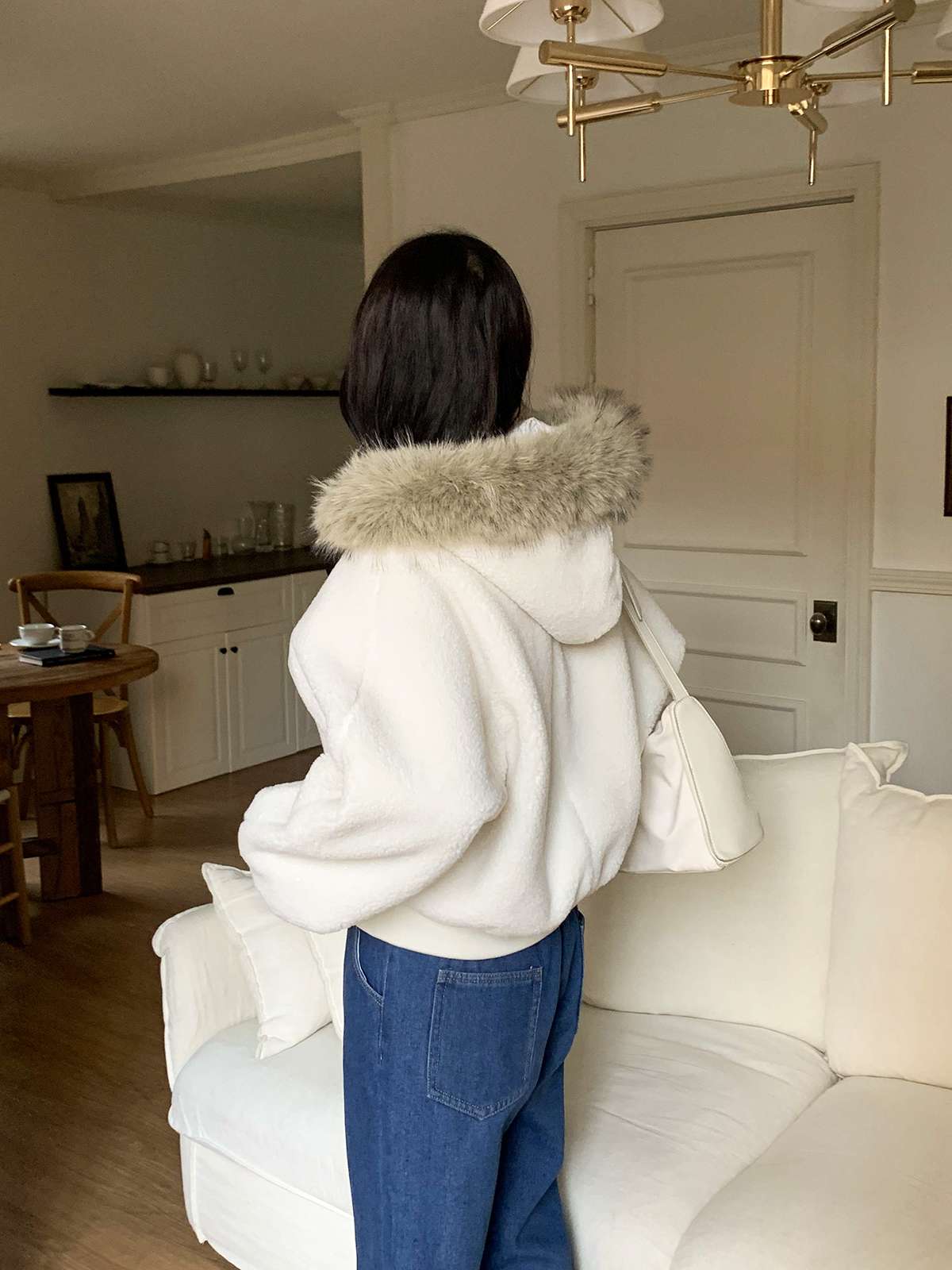 [ JK6126K5B-디엘르 양털 플리스 퍼 후드 점퍼 ]