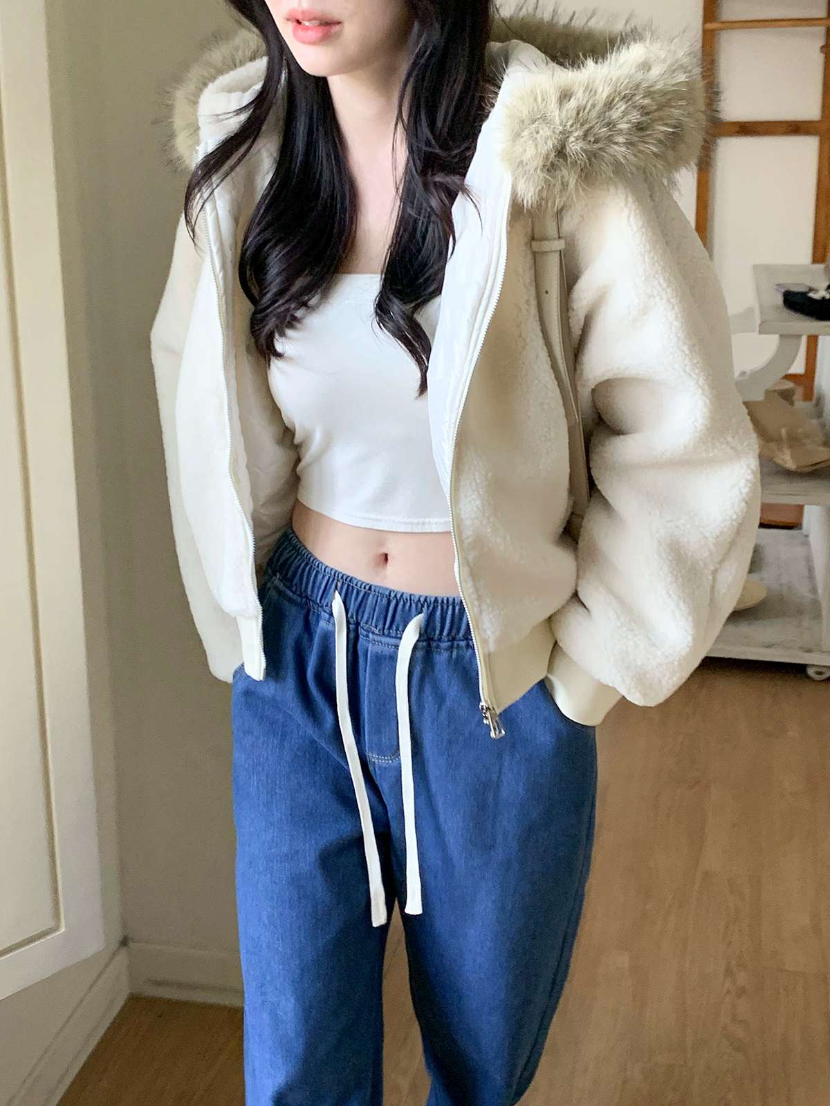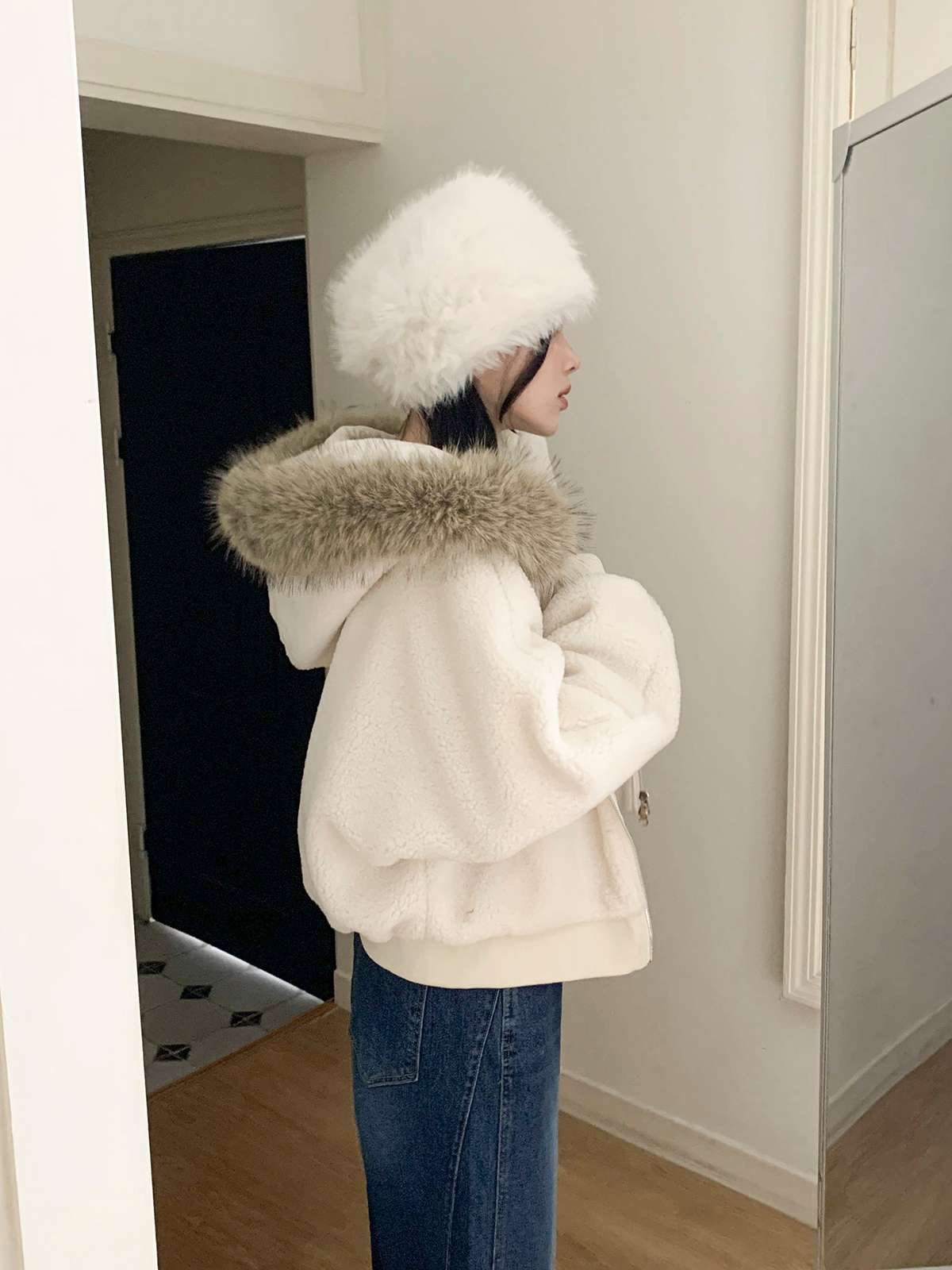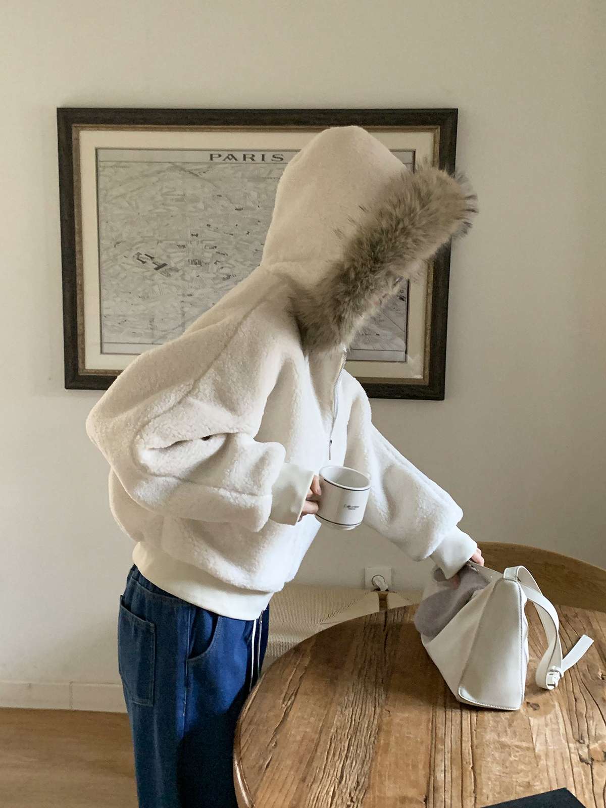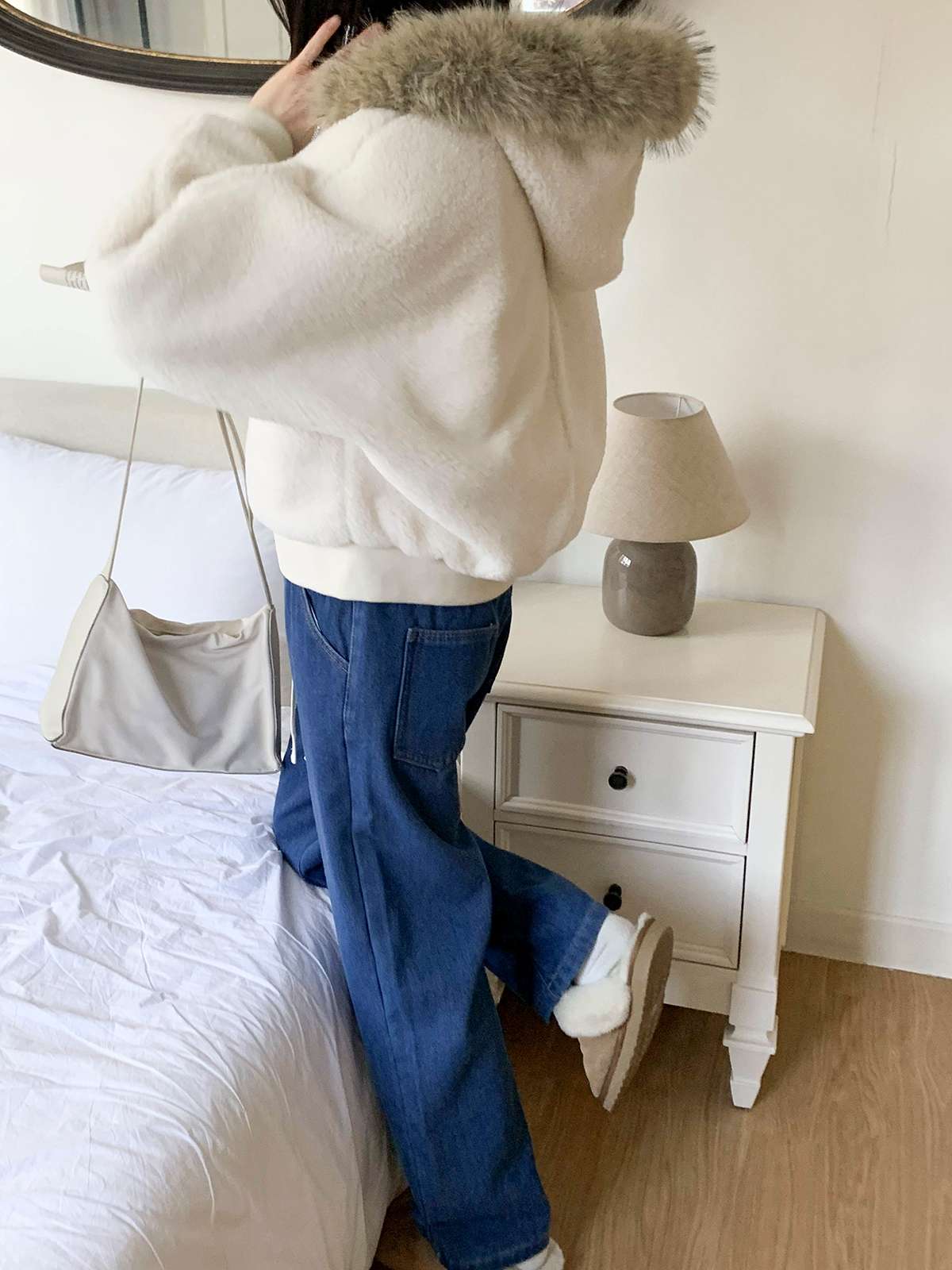 [ JK6126K5B-디엘르 양털 플리스 퍼 후드 점퍼 ]