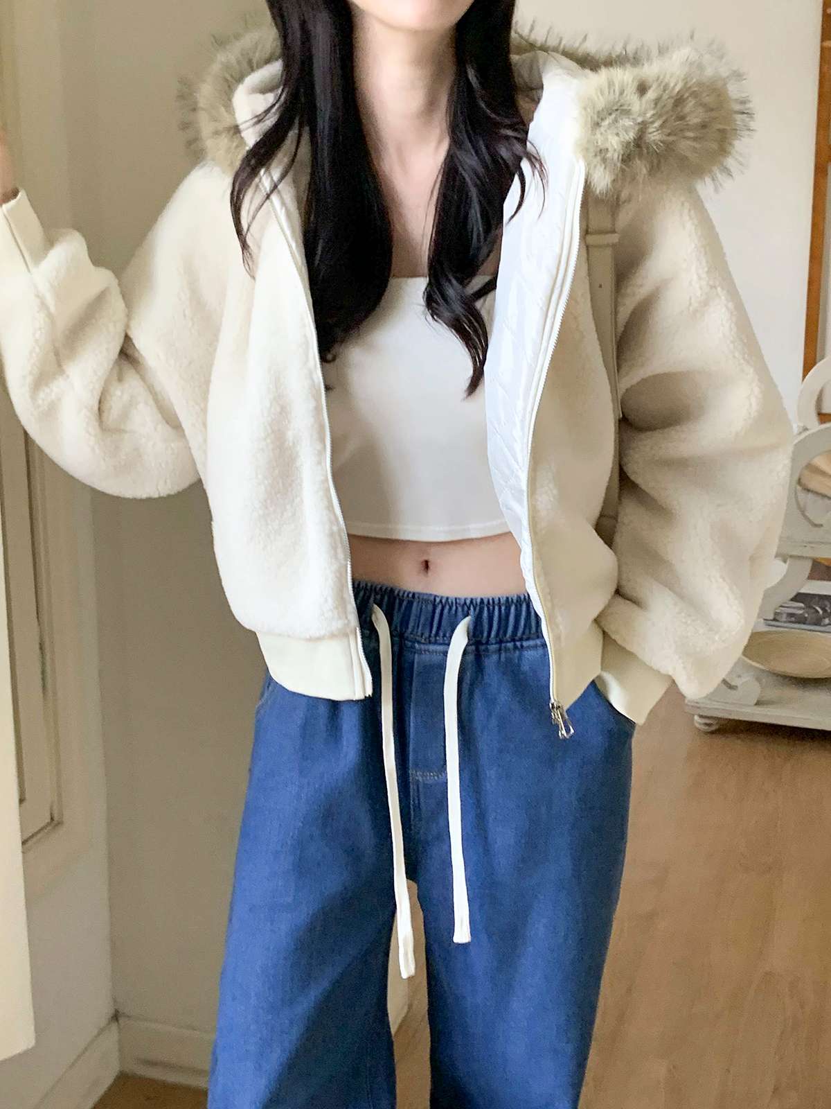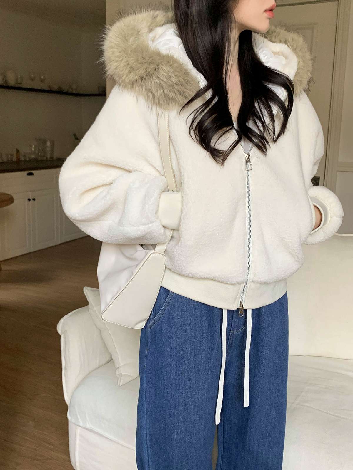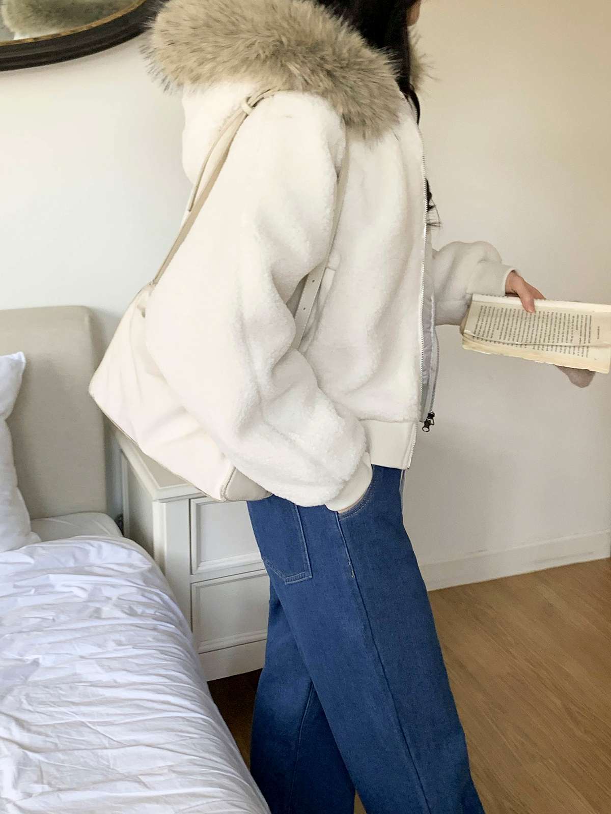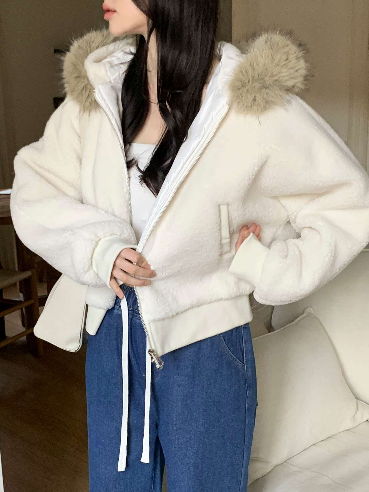[ JK6126K5B-디엘르 양털 플리스 퍼 후드 점퍼 ]
