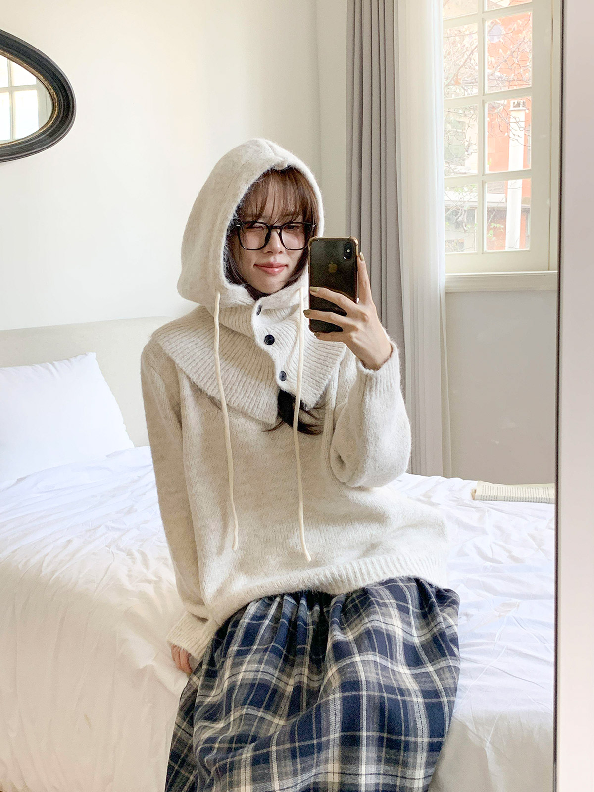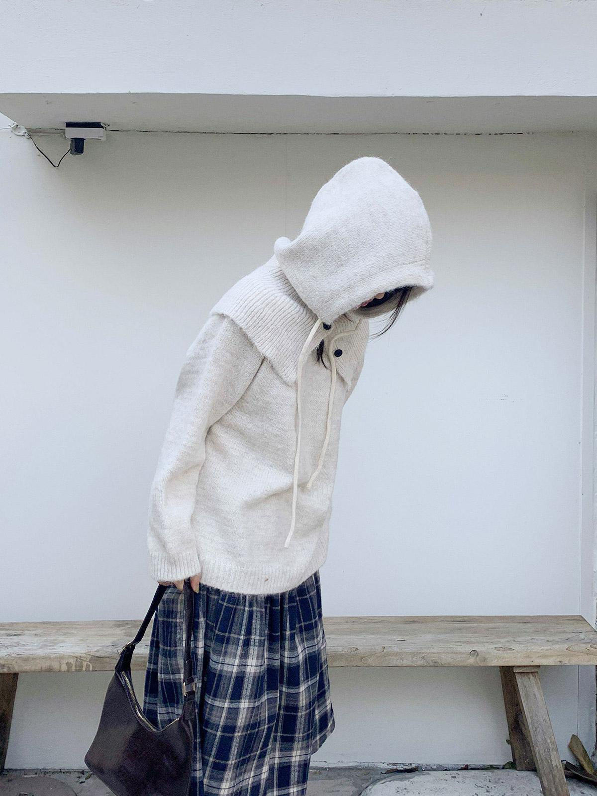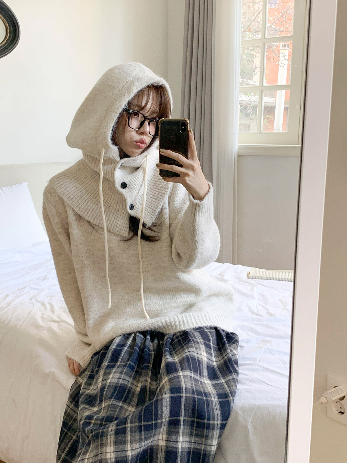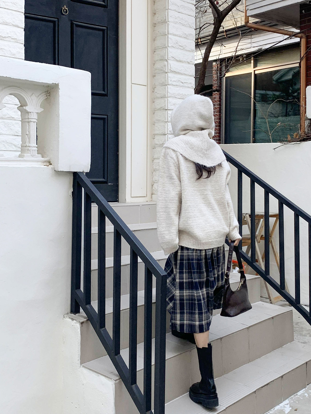 바라클라바 모자와 루즈한 핏의 니트 세트