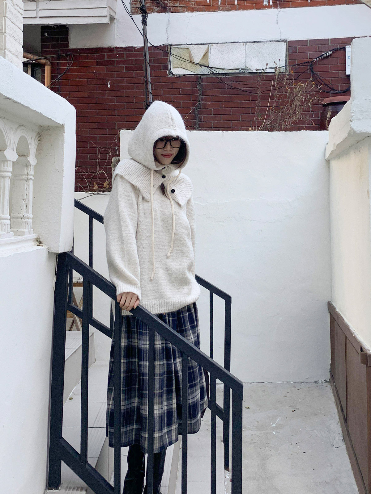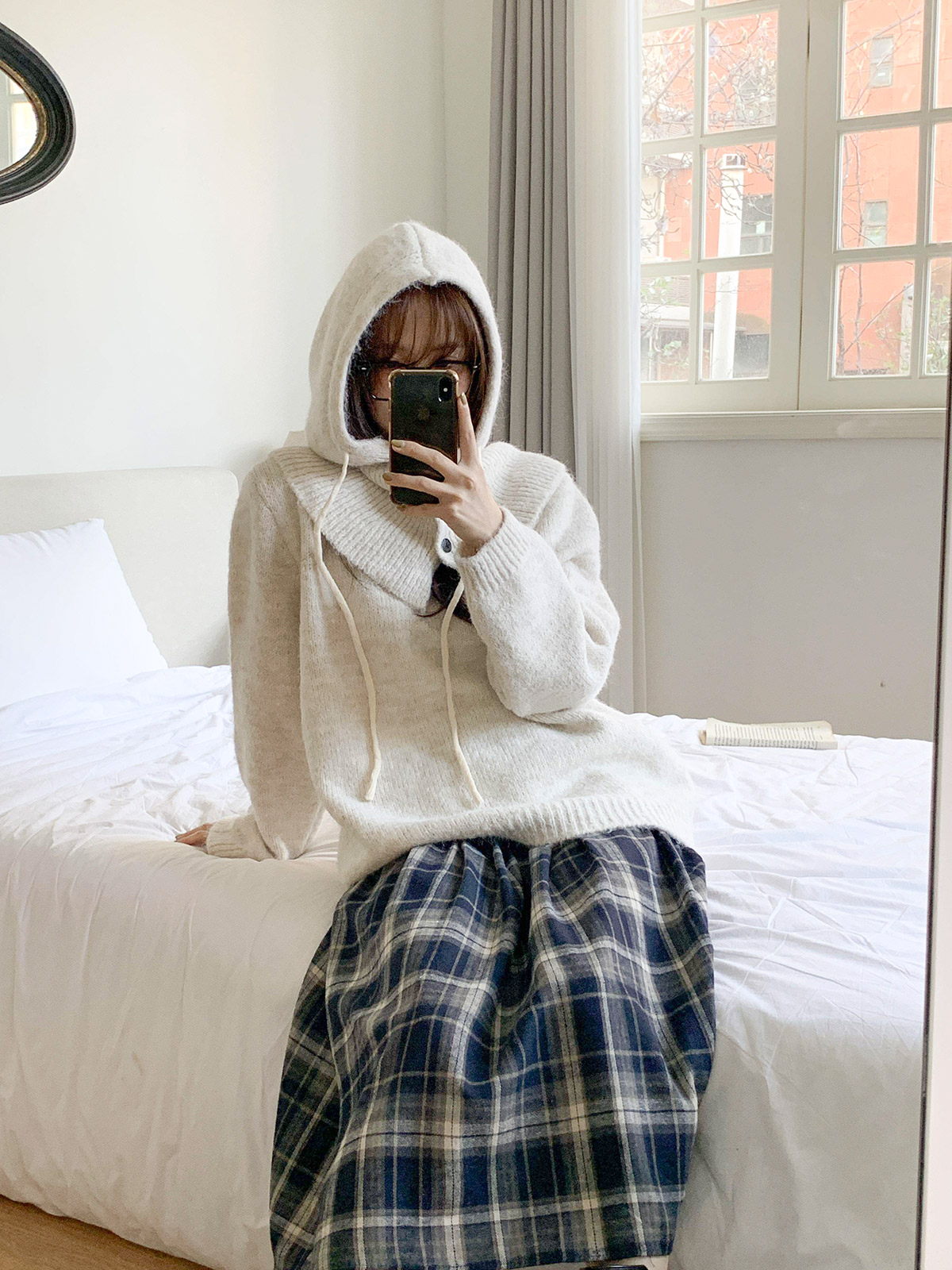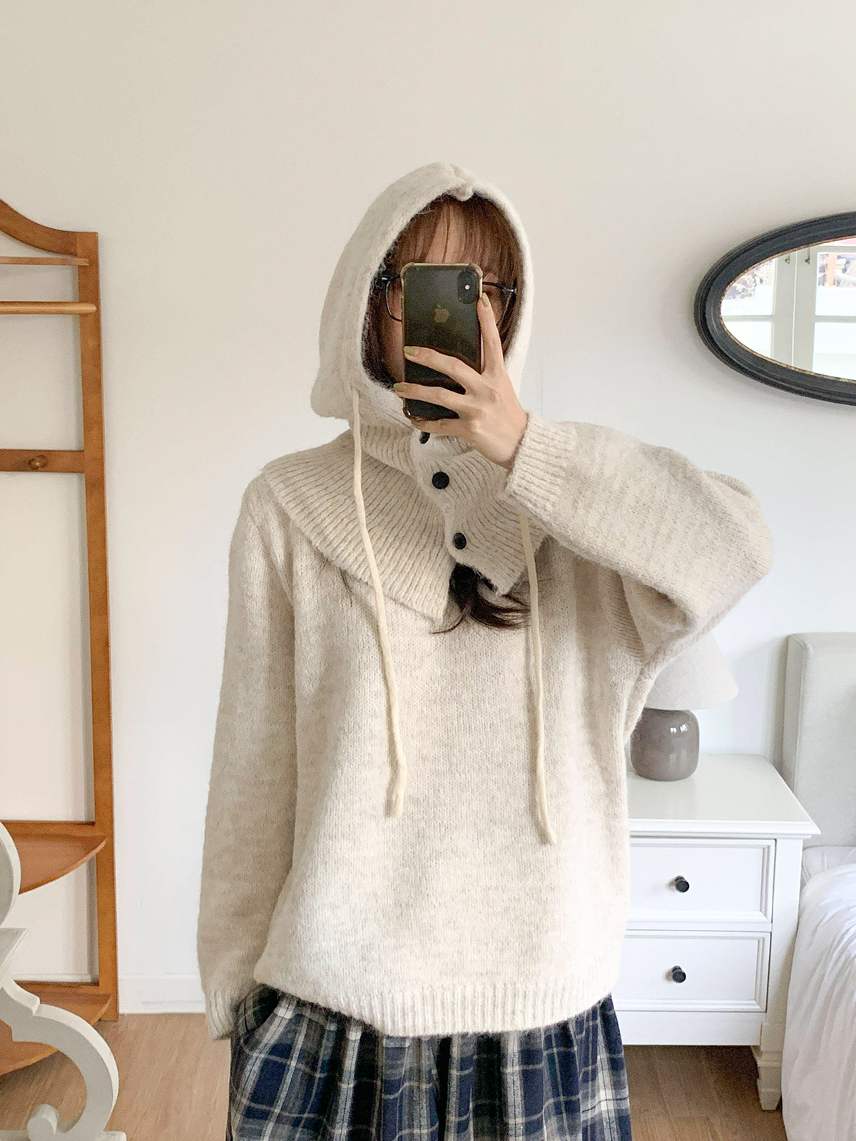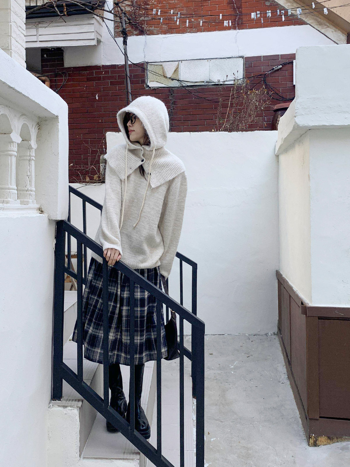 바라클라바 모자와 루즈한 핏의 니트 세트