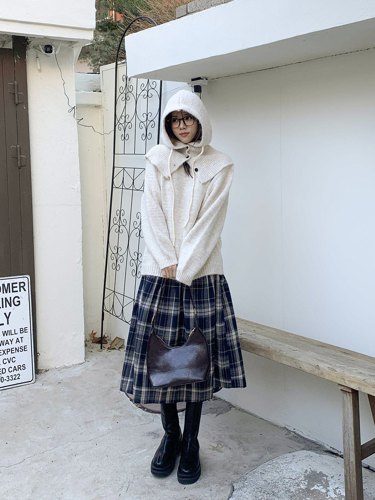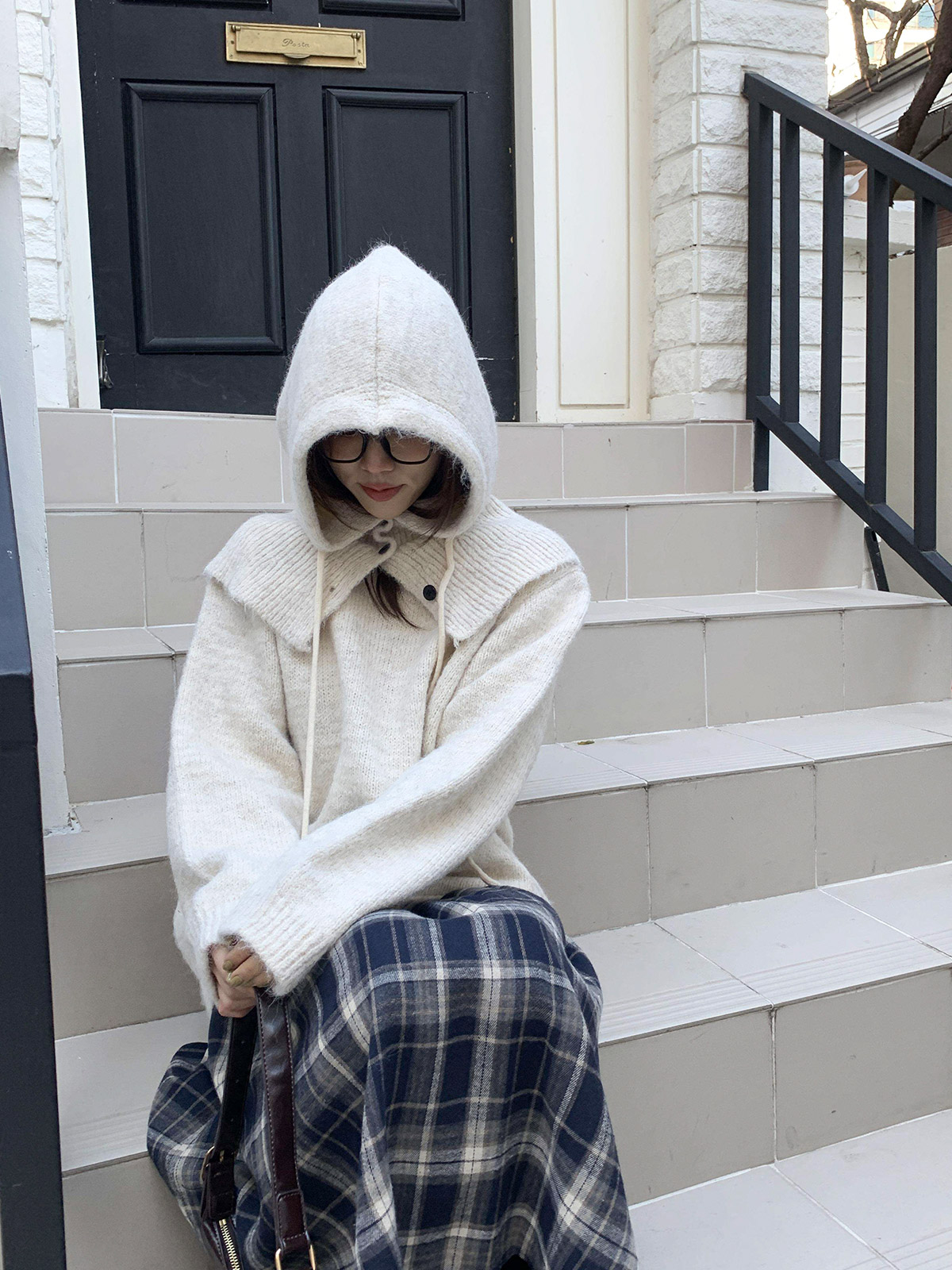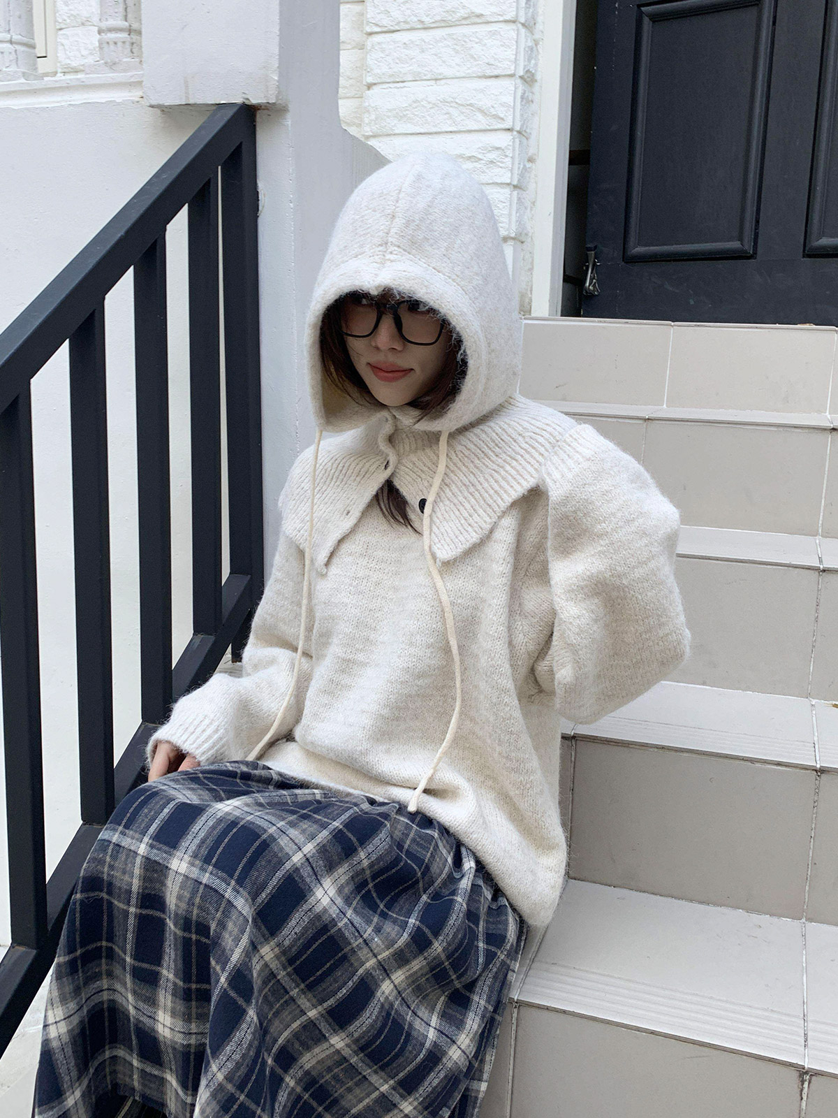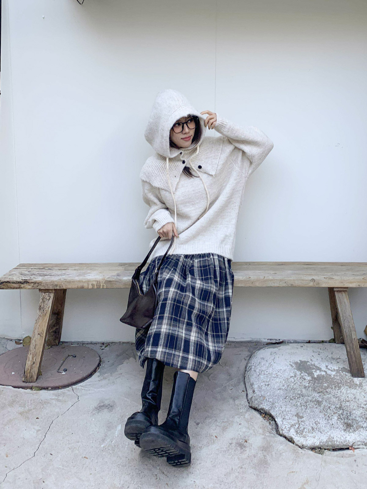 바라클라바 모자와 루즈한 핏의 니트 세트