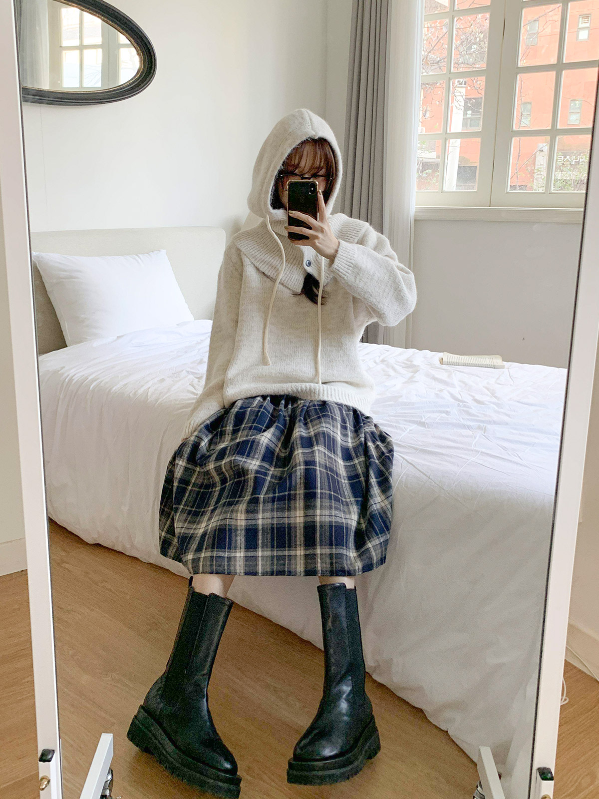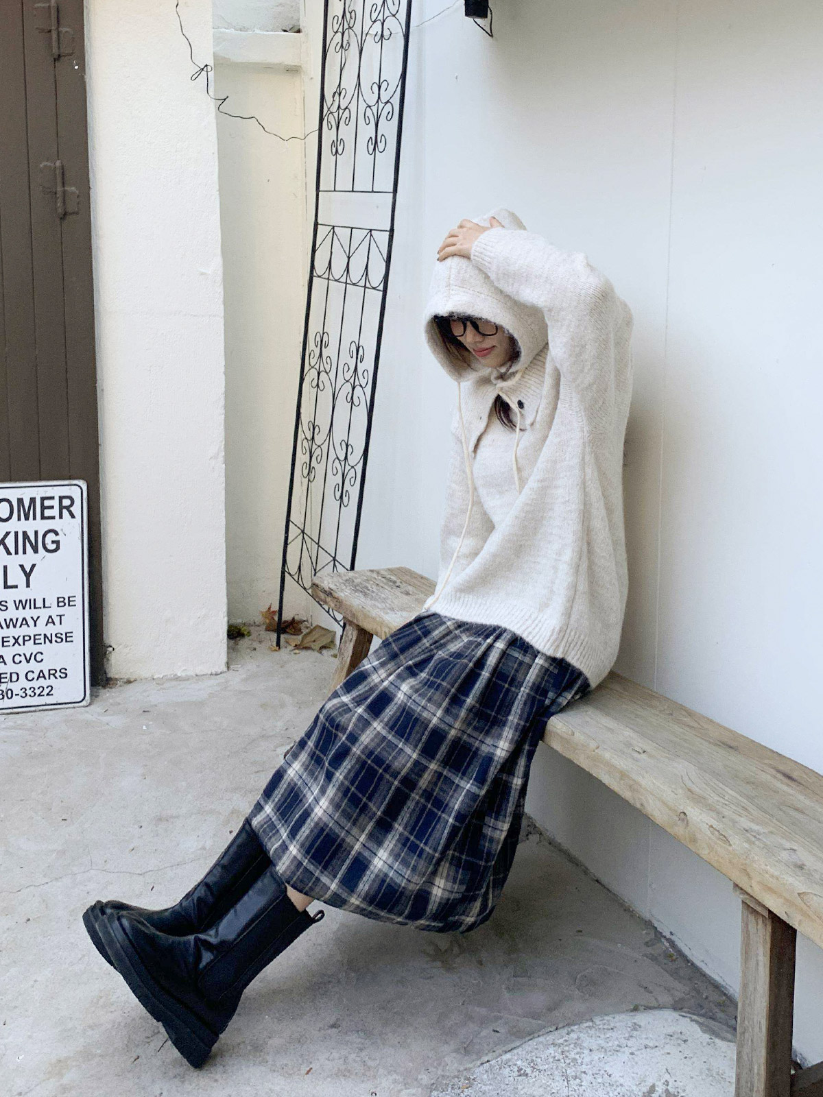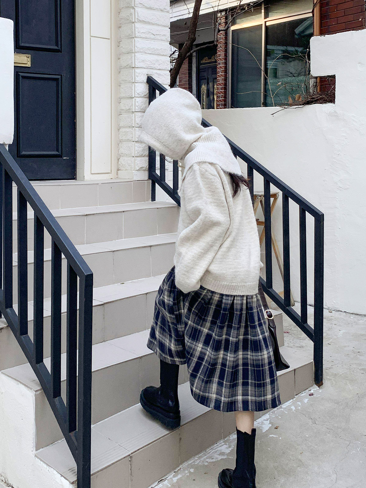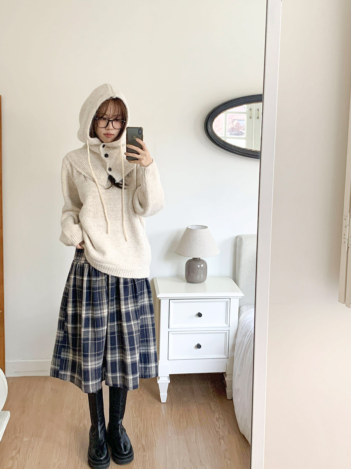 바라클라바 모자와 루즈한 핏의 니트 세트