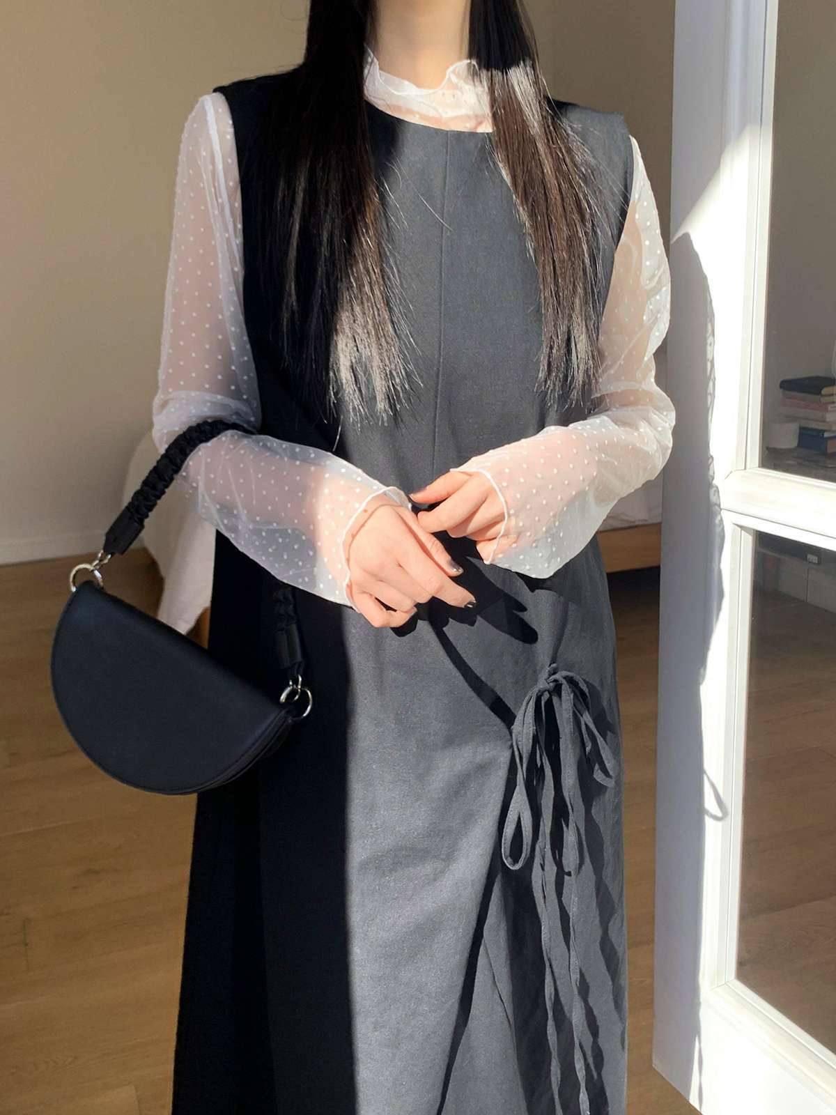 허리 라인의 묶음 포인트 디테일이