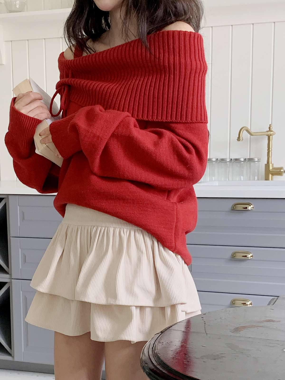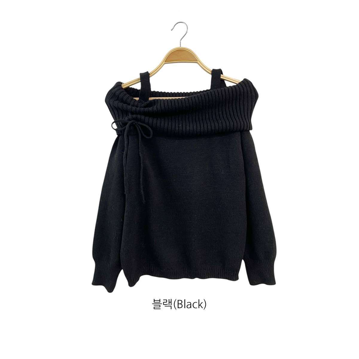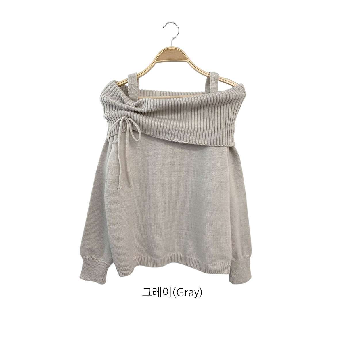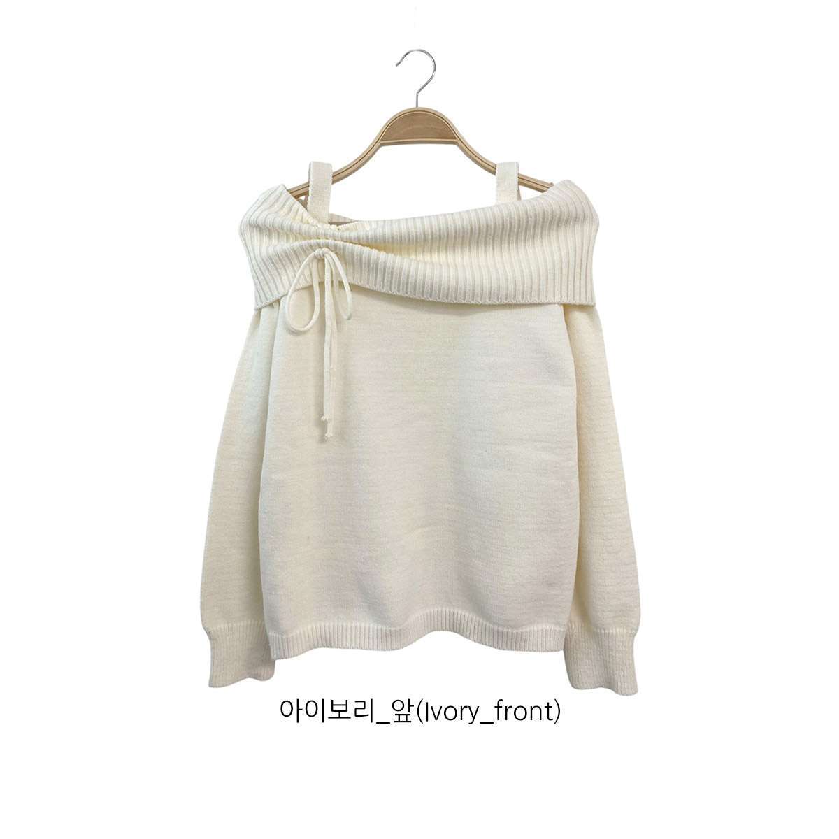 NT6109K5C-루비안 리본 셔링 오프숄더 루즈핏 니트