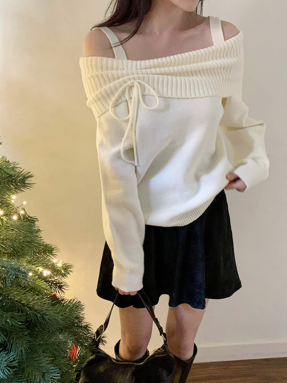 데일리룩 연말룩 데이트룩 특별한날에도 입기좋은 오프숄더 니트