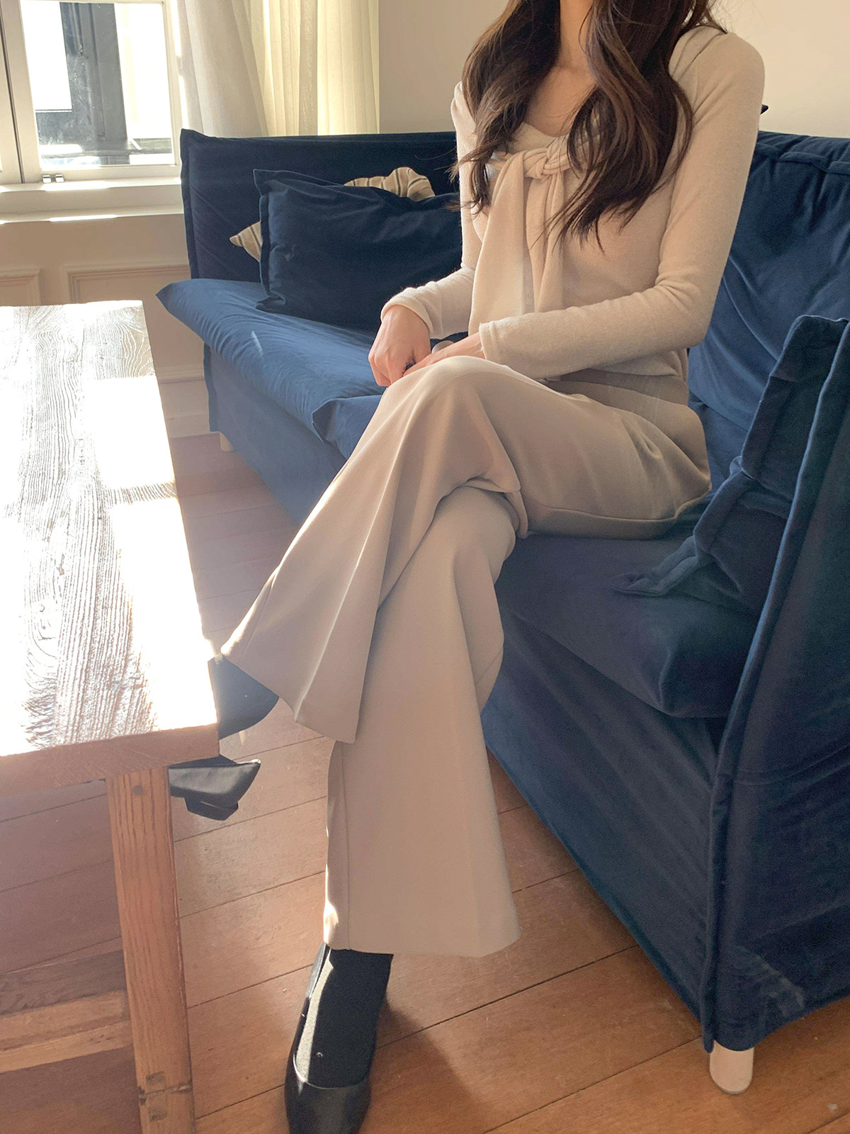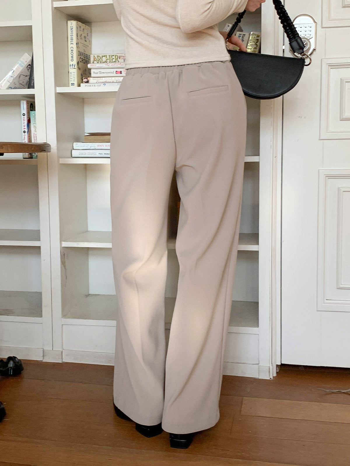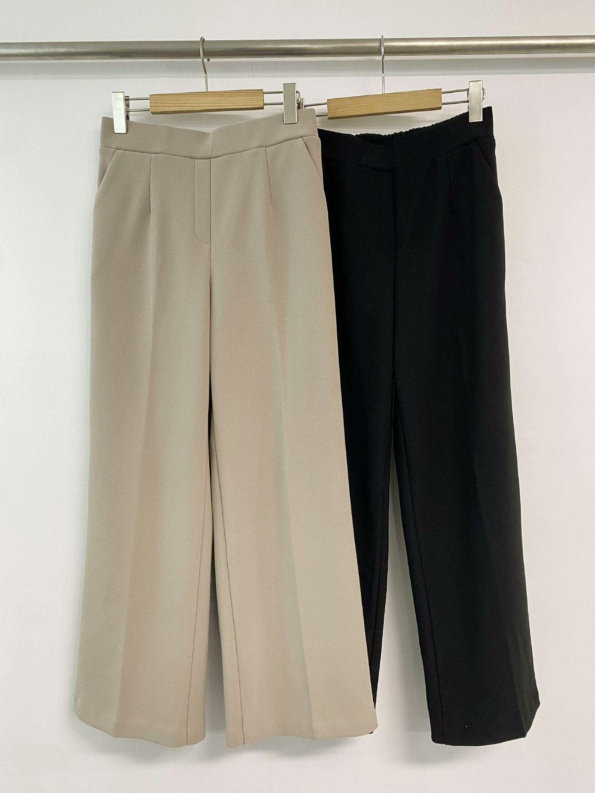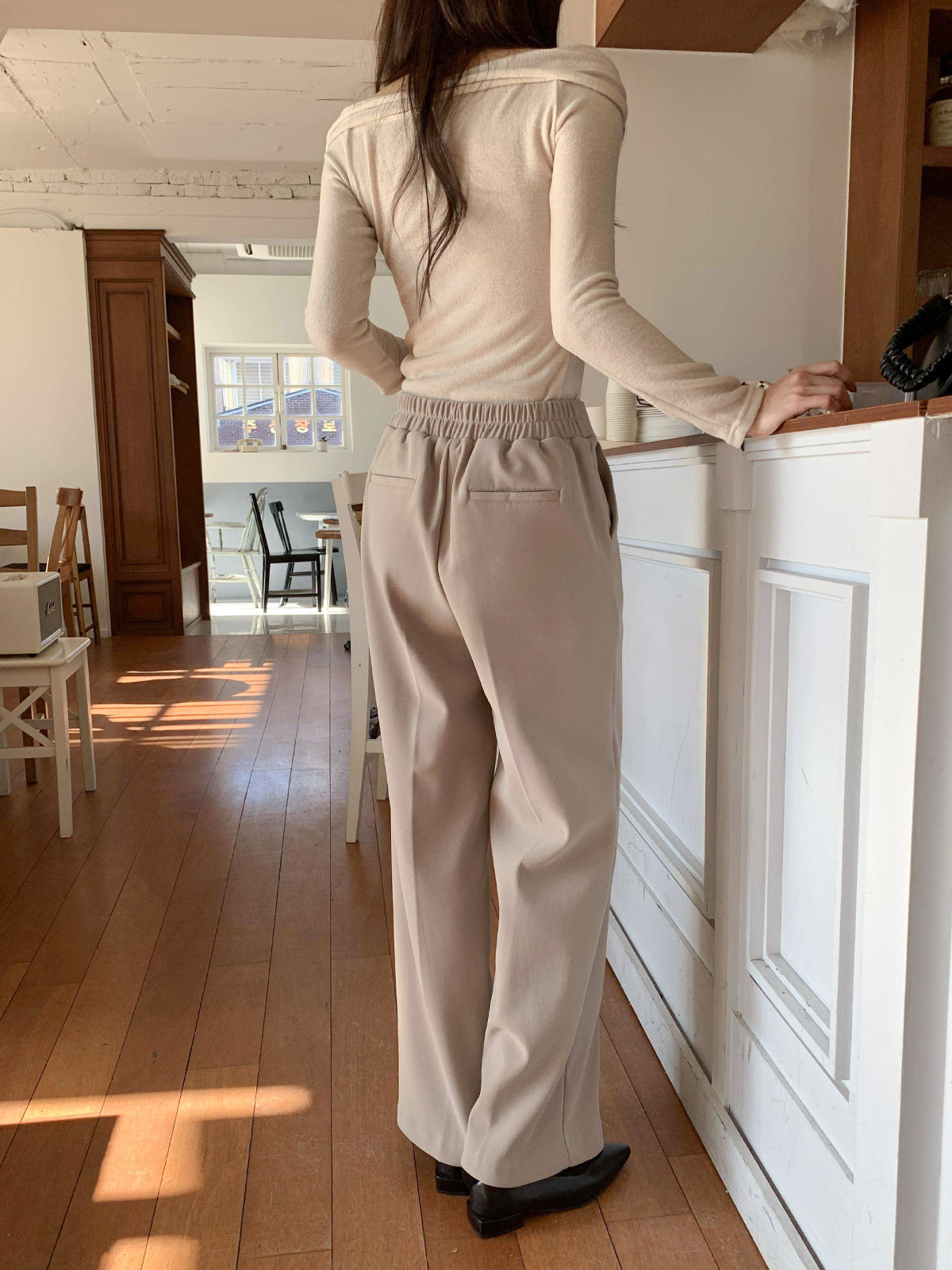 따뜻함과 편안함을 동시에 잡은 기모 뒷밴딩 일자 통 슬랙스로