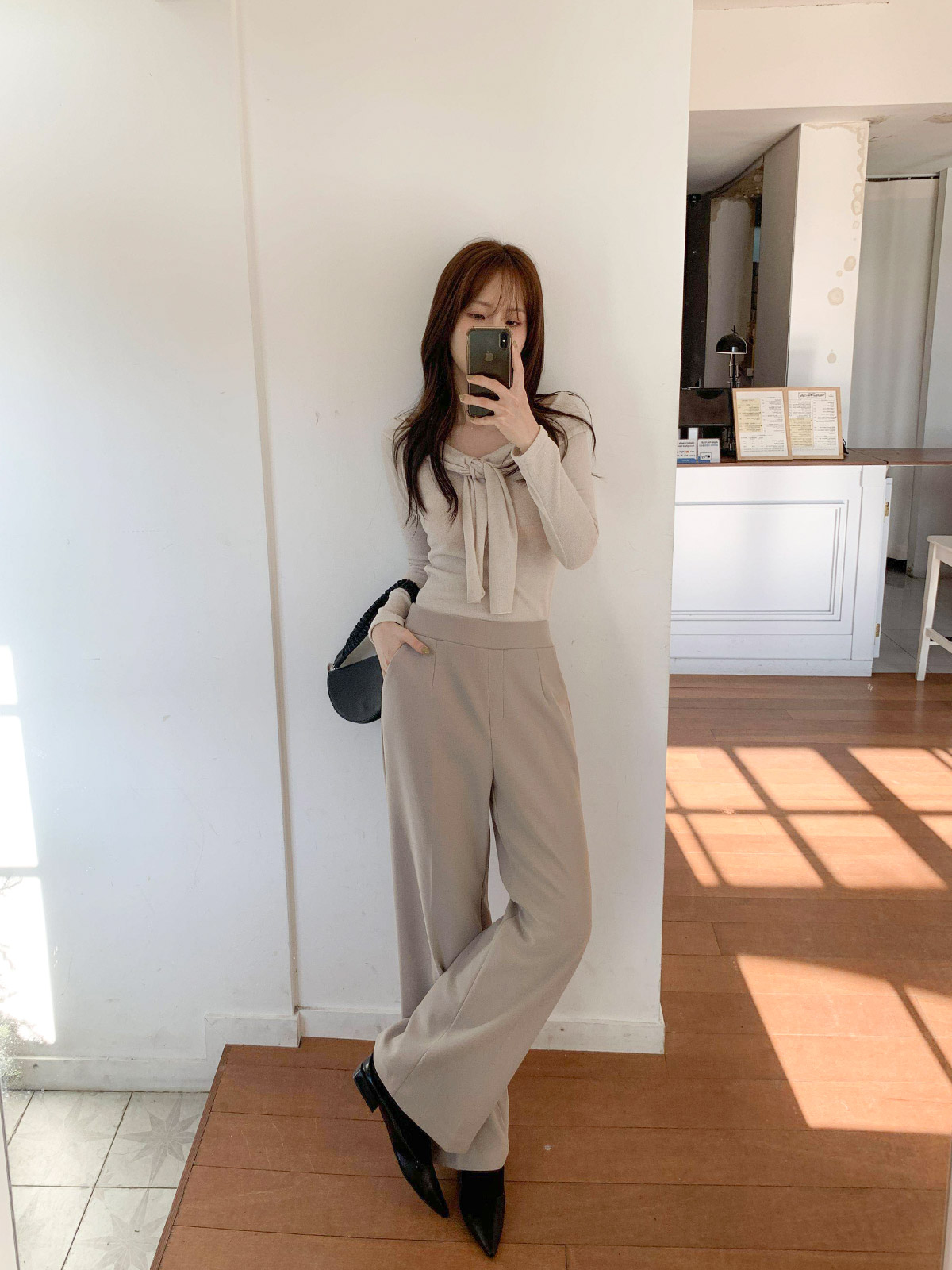 고급스럽고 깔끔한 무드의 오피스룩으로 제격인 기모 슬랙스