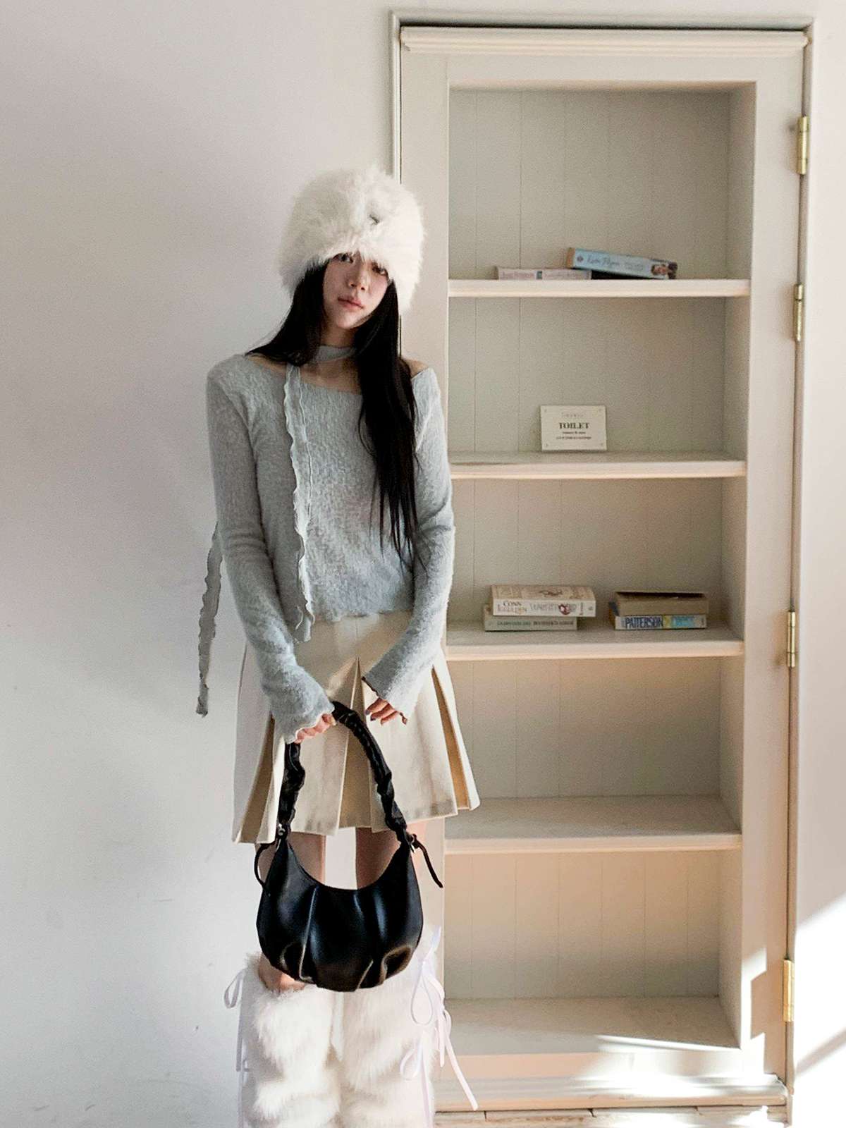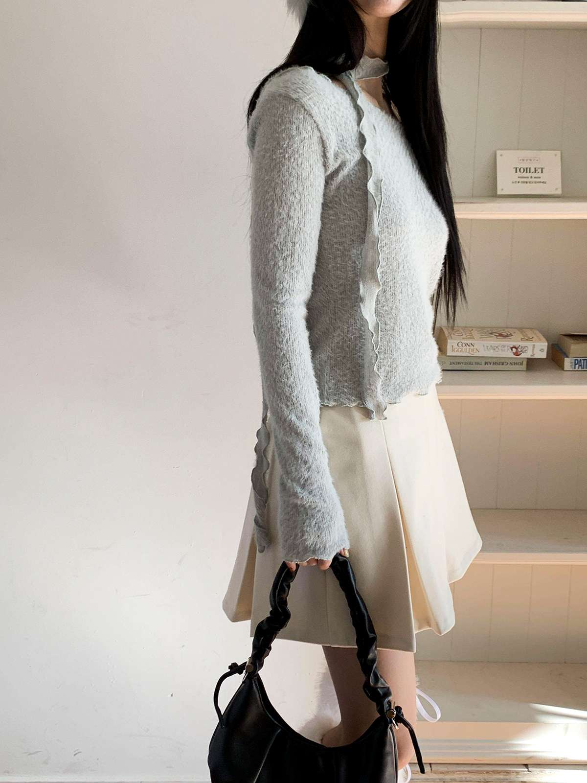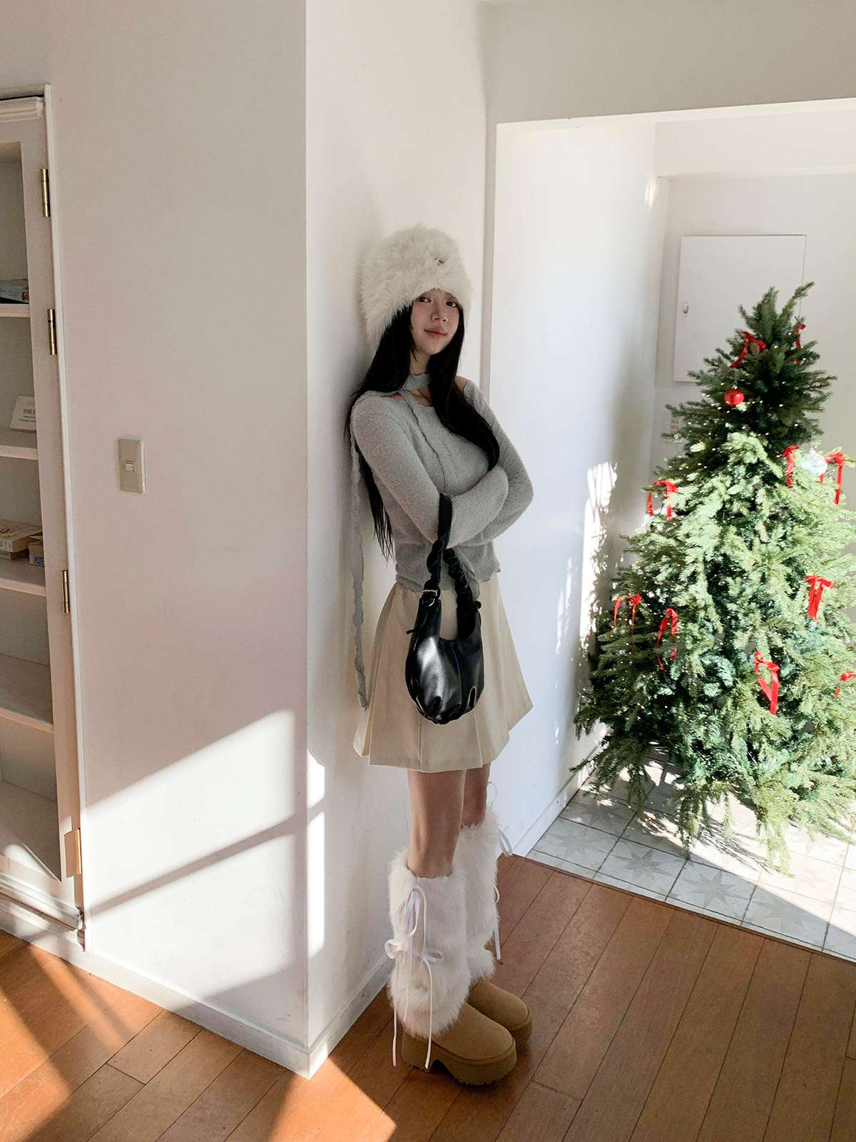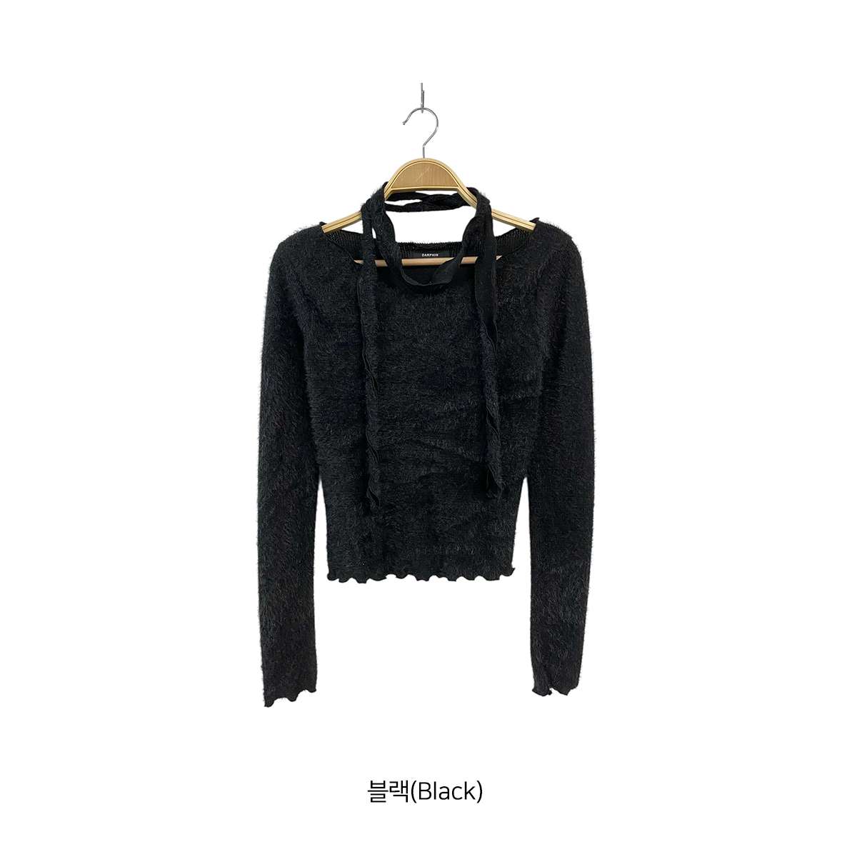 연말에 입기 좋은 페미닌한 초커 앙고라 니트