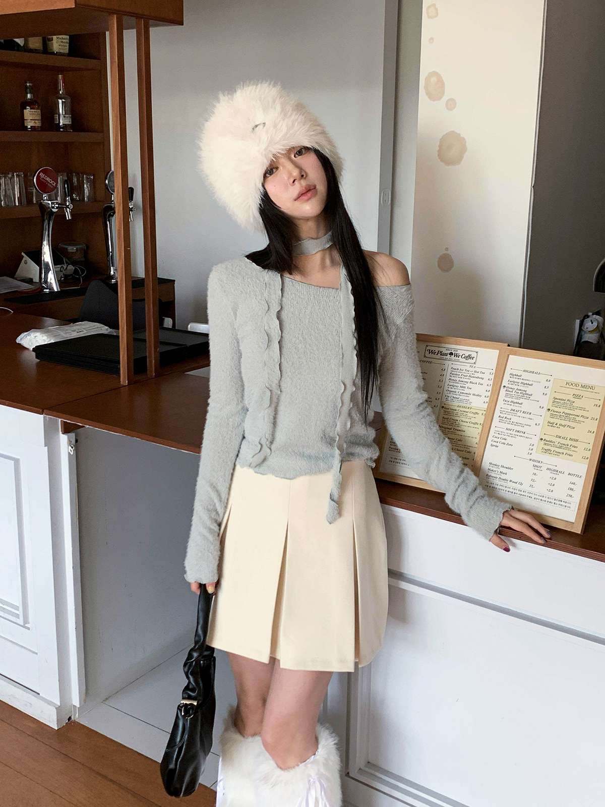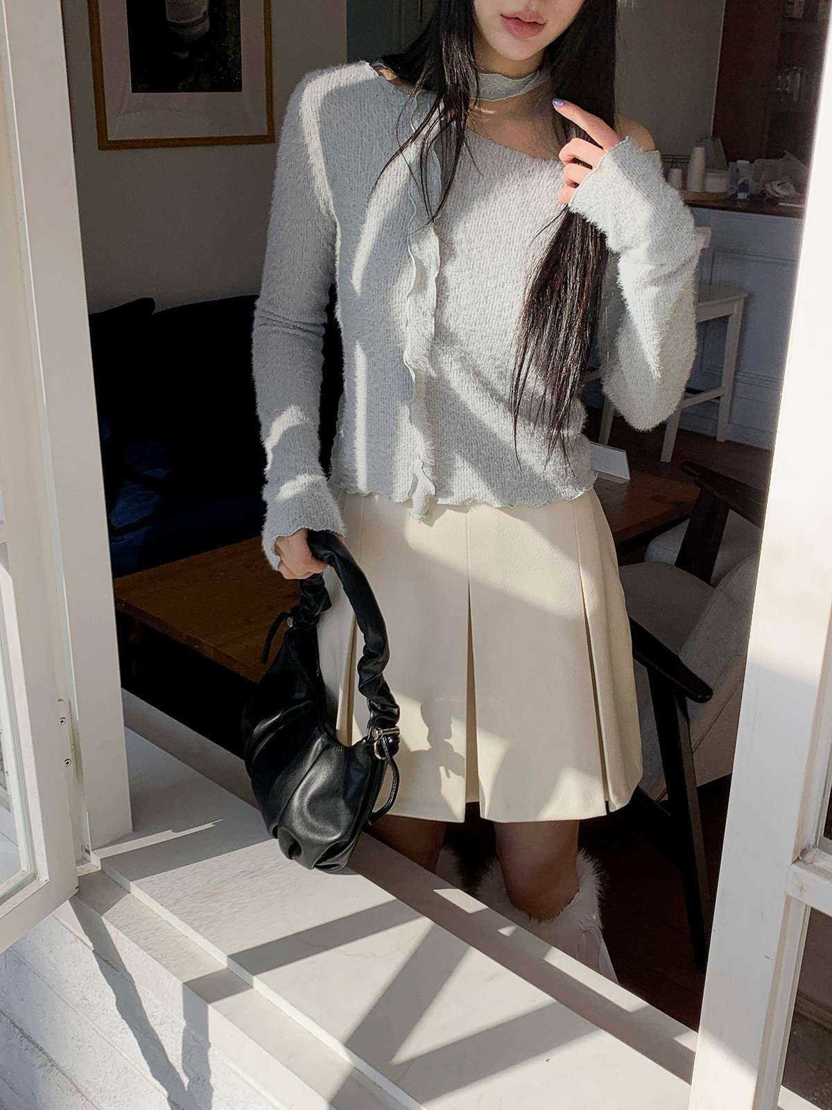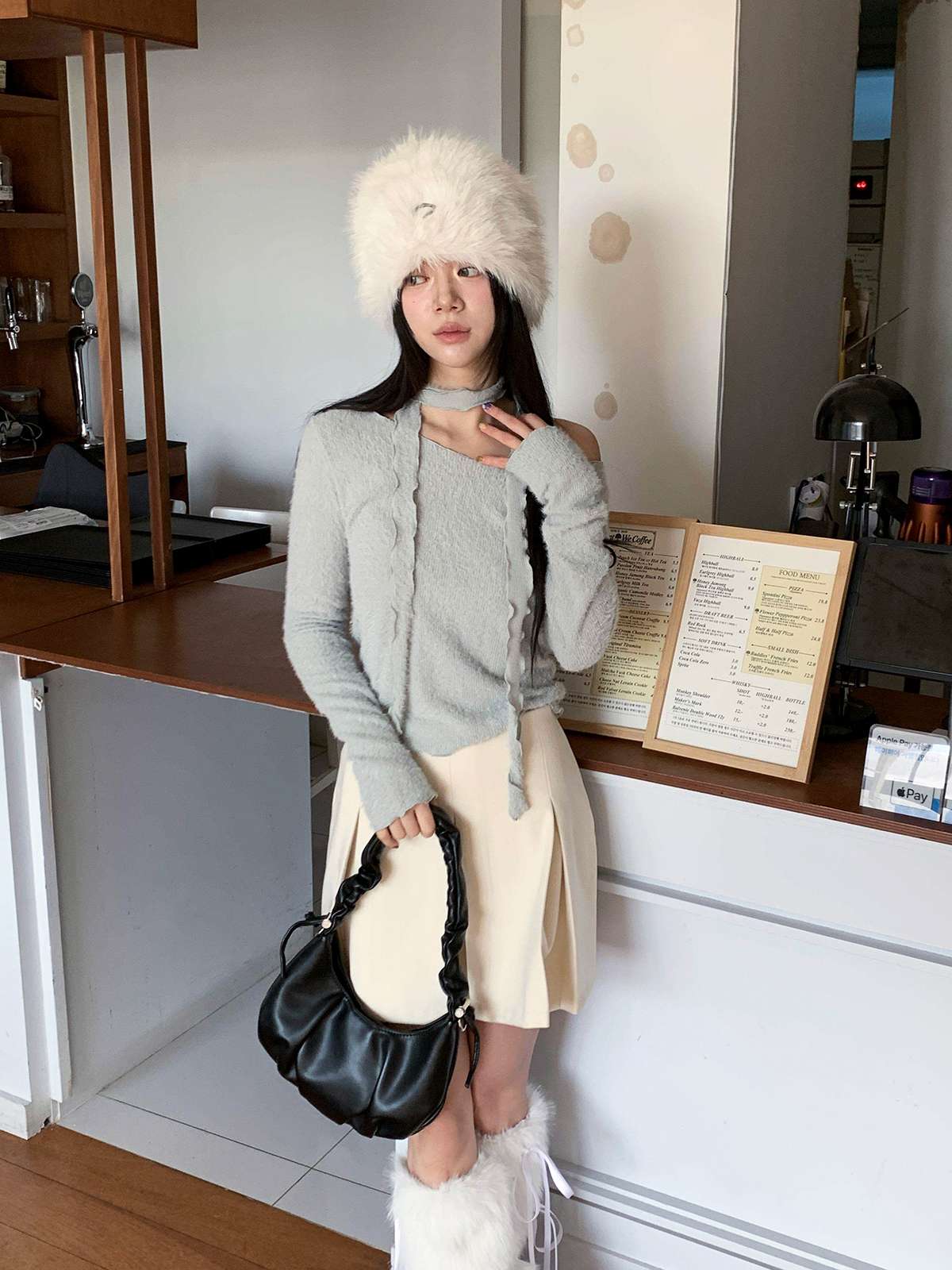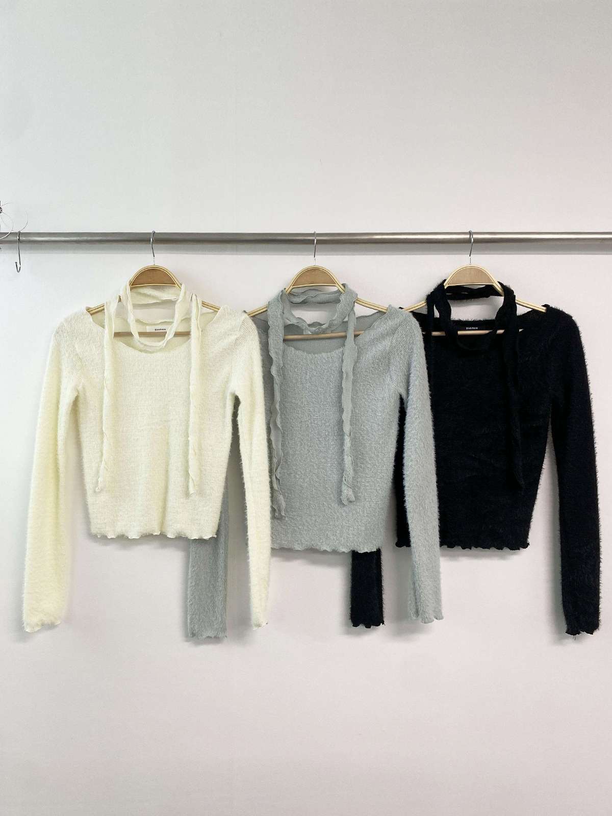 연말에 입기 좋은 페미닌한 초커 앙고라 니트