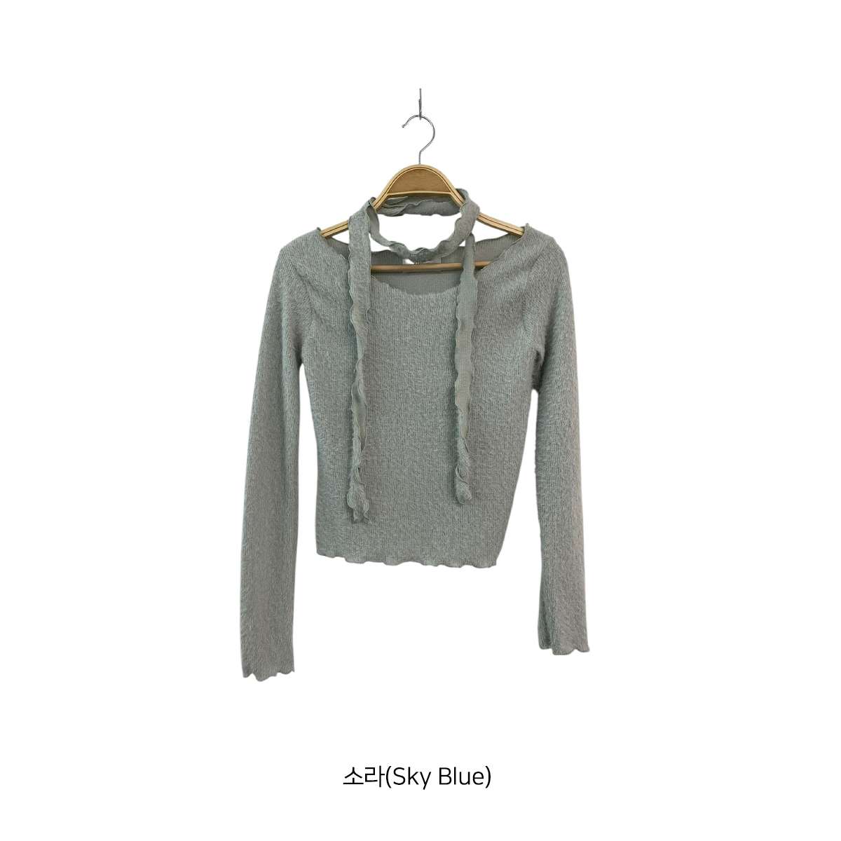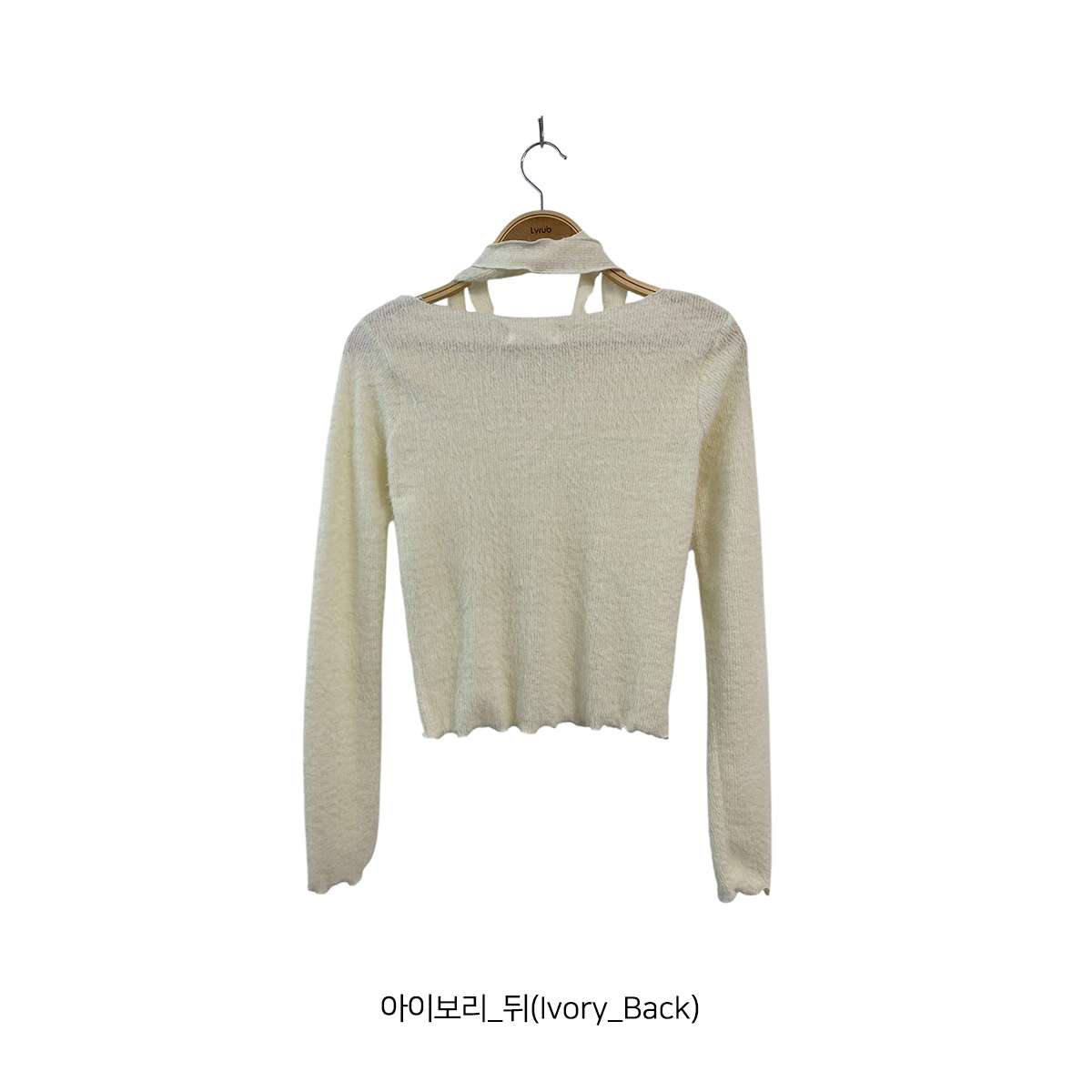 살짝 파인 브이넥과 초커 디테일이 목선을 여리하게 강조해 주고