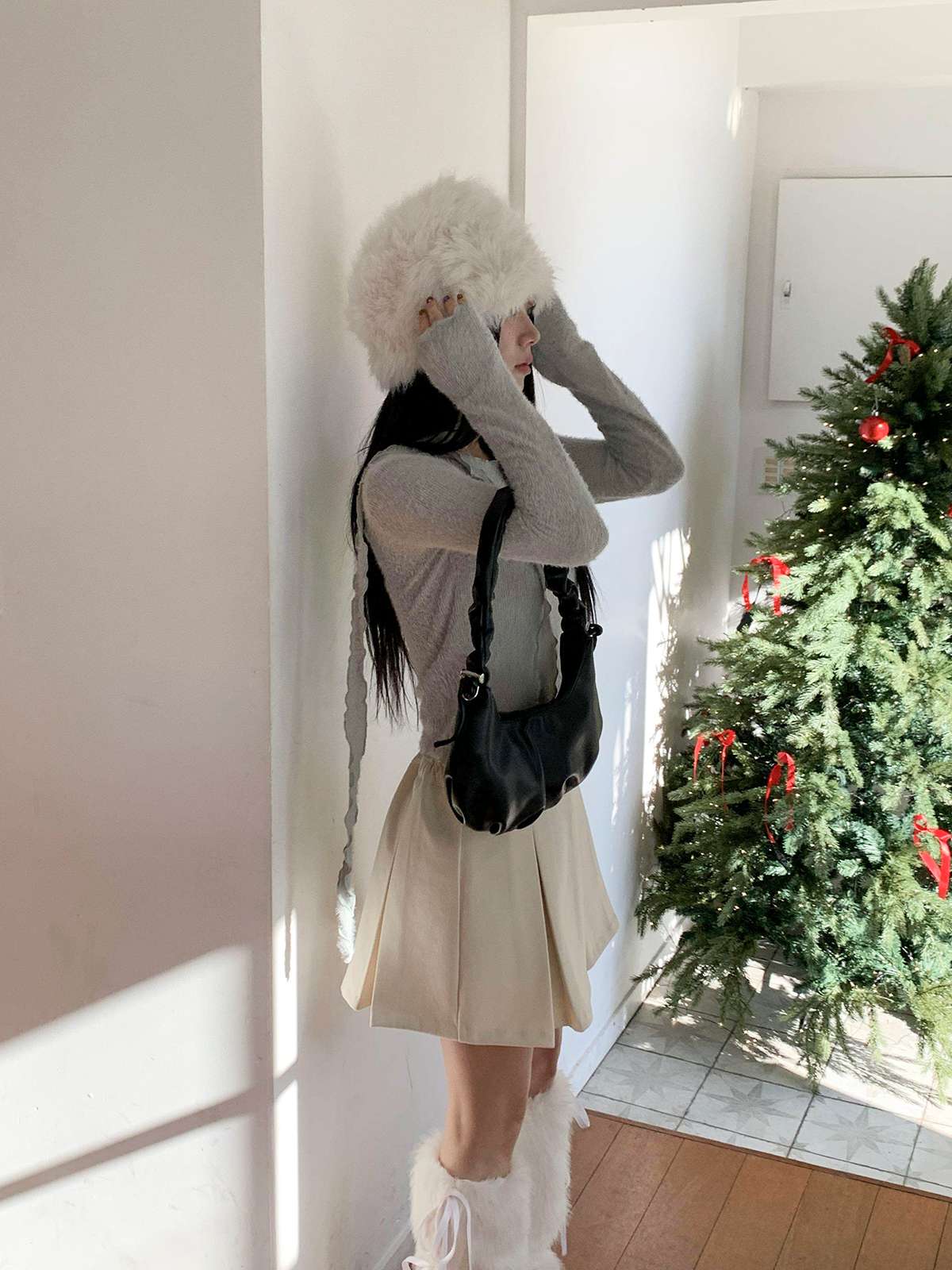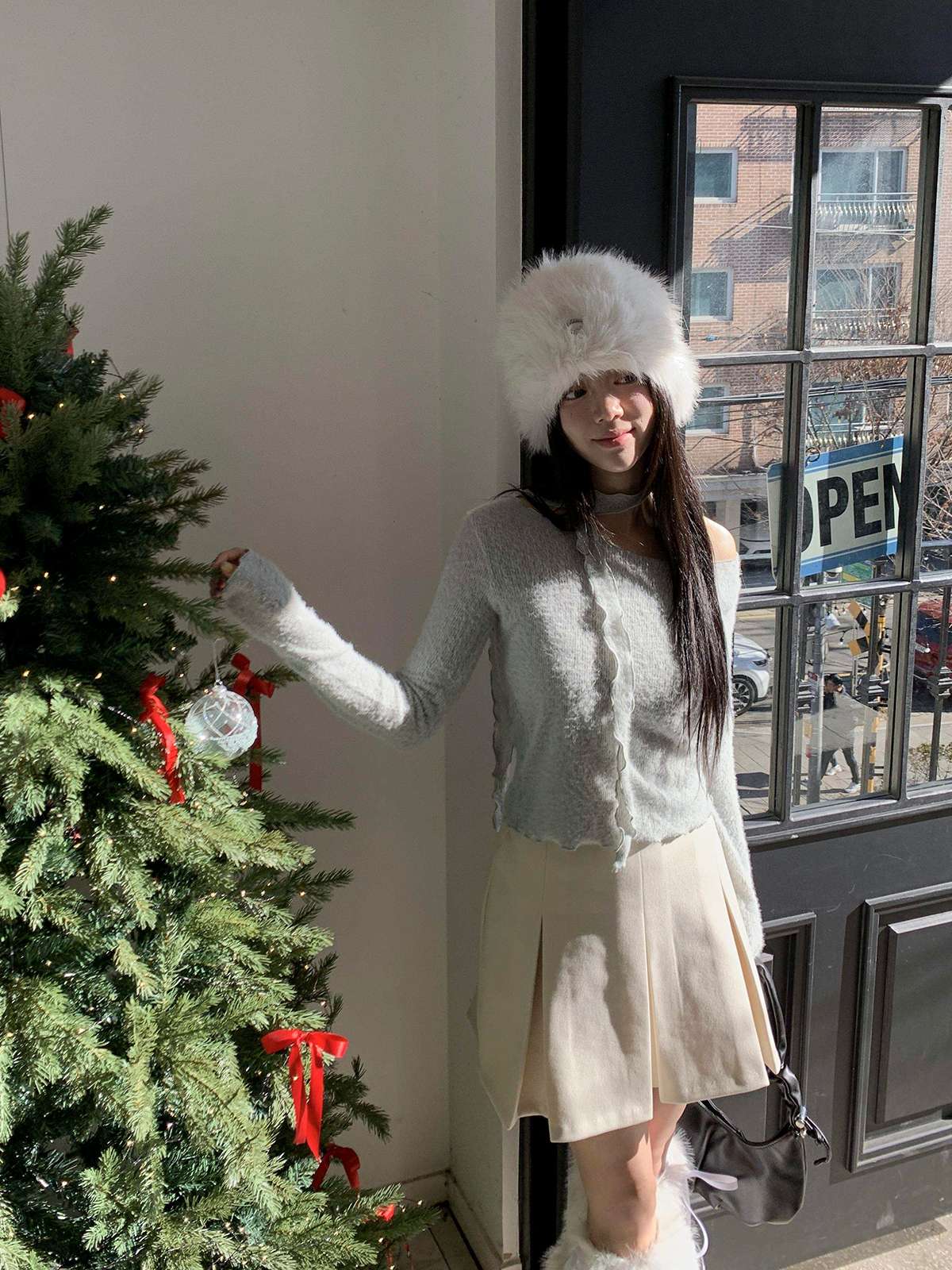 보송보송한 앙고라 텍스처가 피부에 부드럽게 닿아 따뜻한 착용감을 느낄 수 있으며,