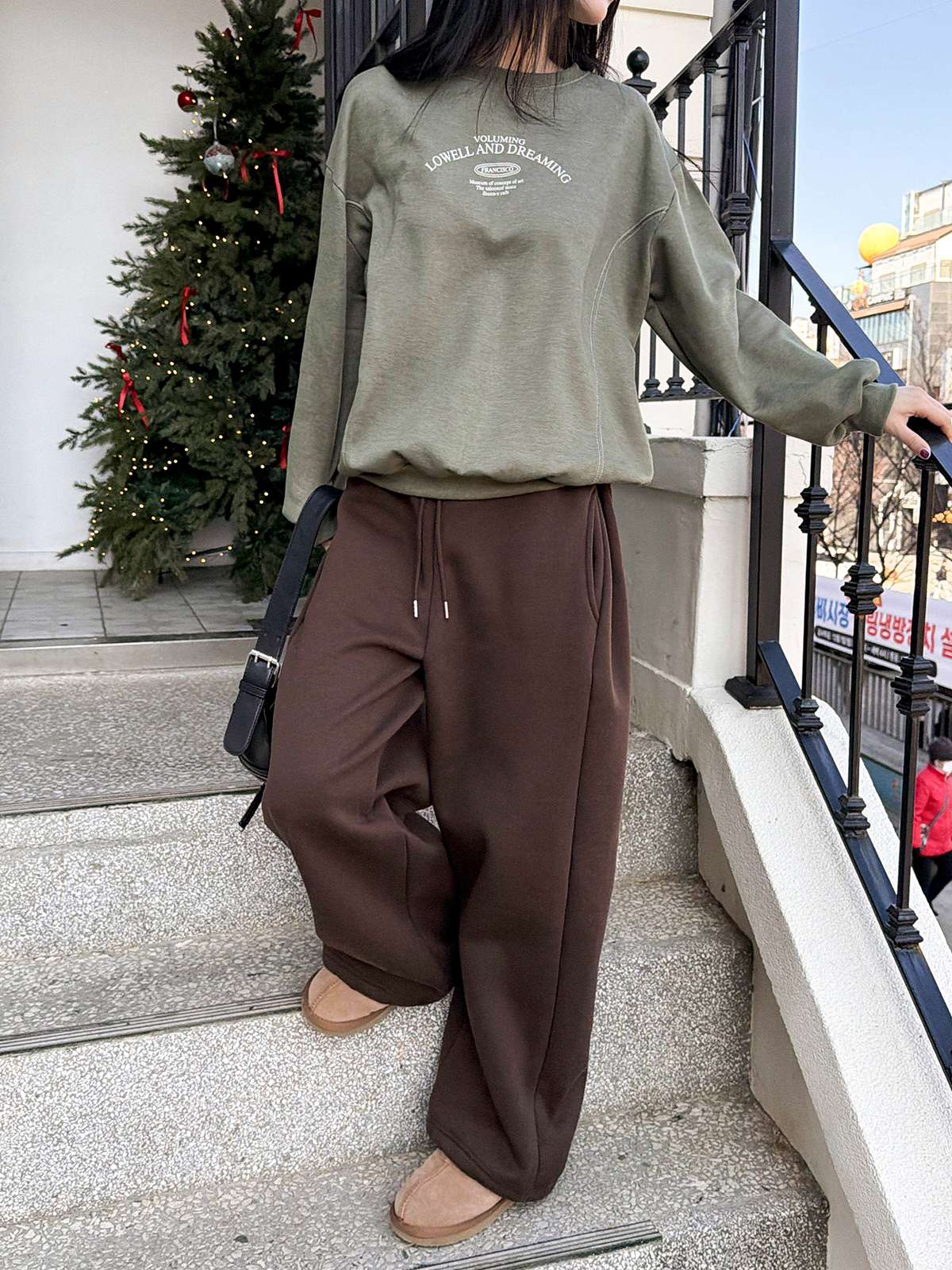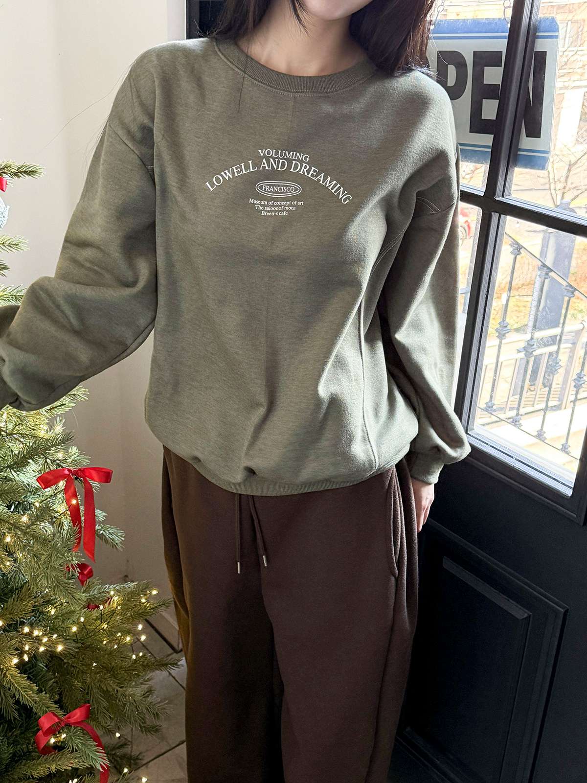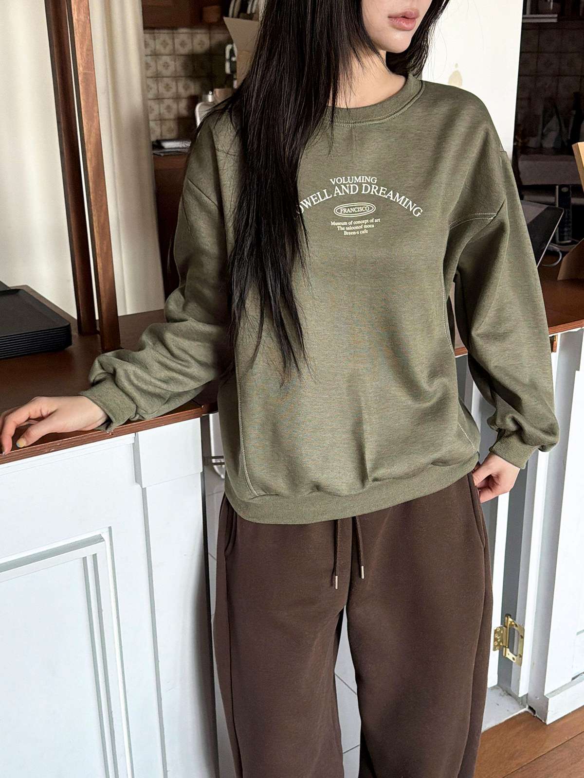 포근한 기모 안감의 레터링 프린팅이 포인트인 데일리 맨투맨