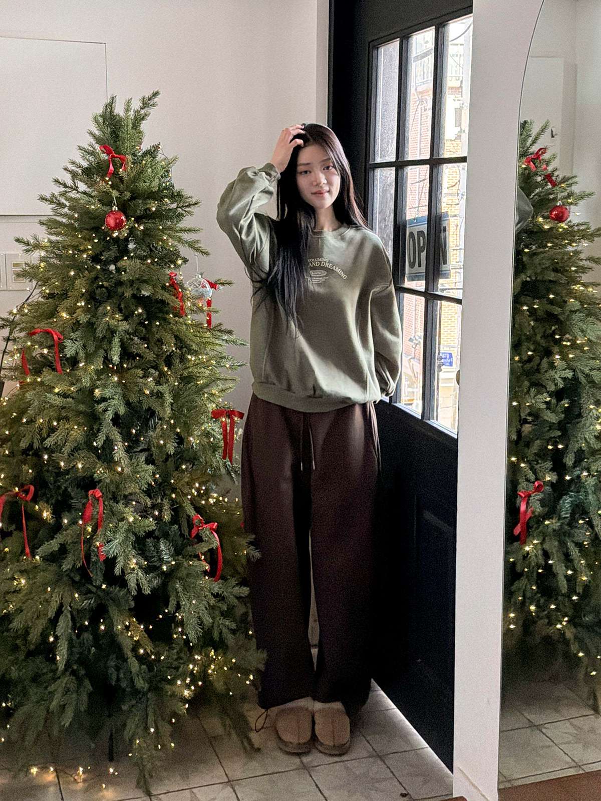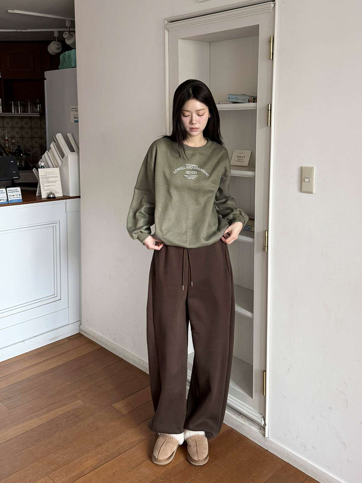 ☆ 모델 착용 사이즈 : FREE/카키 착용/SY