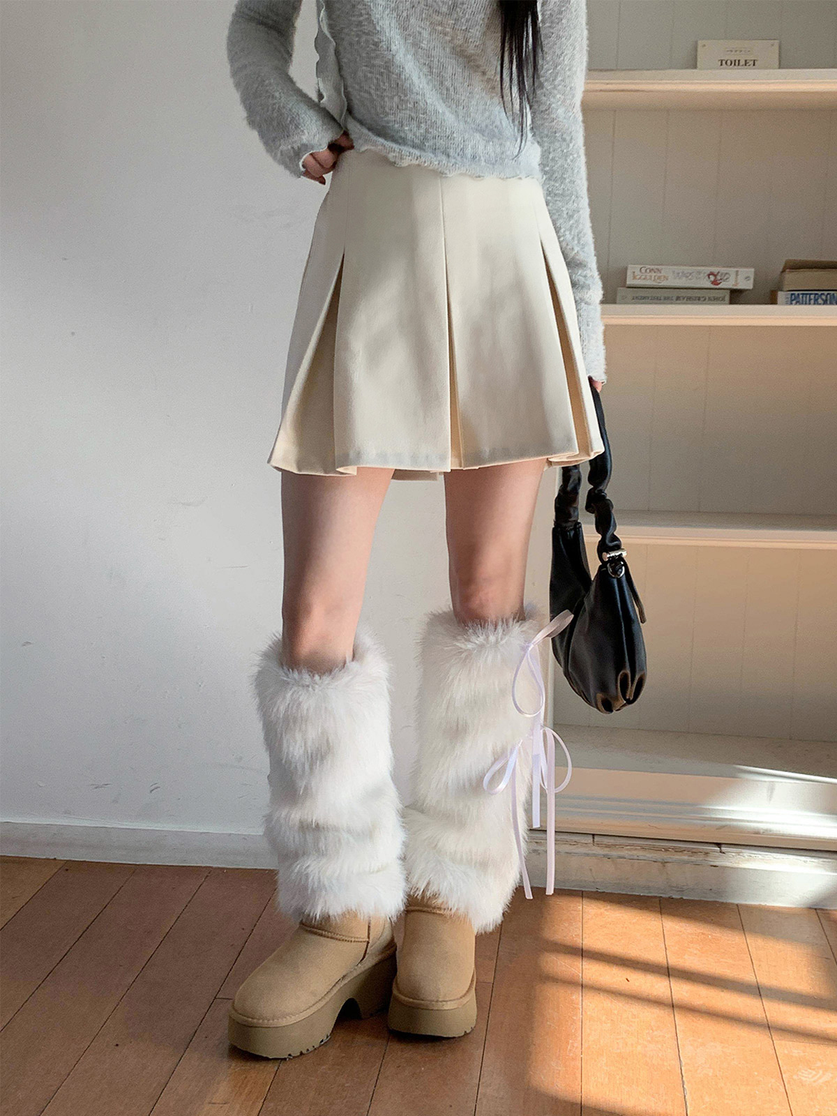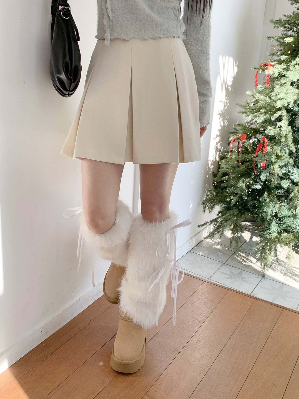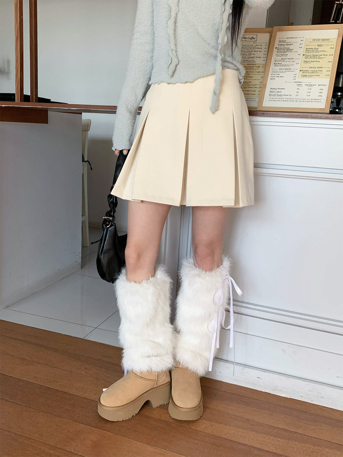 포근하고 따듯한 두께감의 여성스러운 플레어 라인으로 떨어지는 A라인 미니스커트