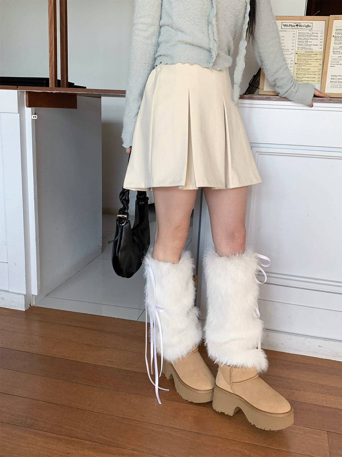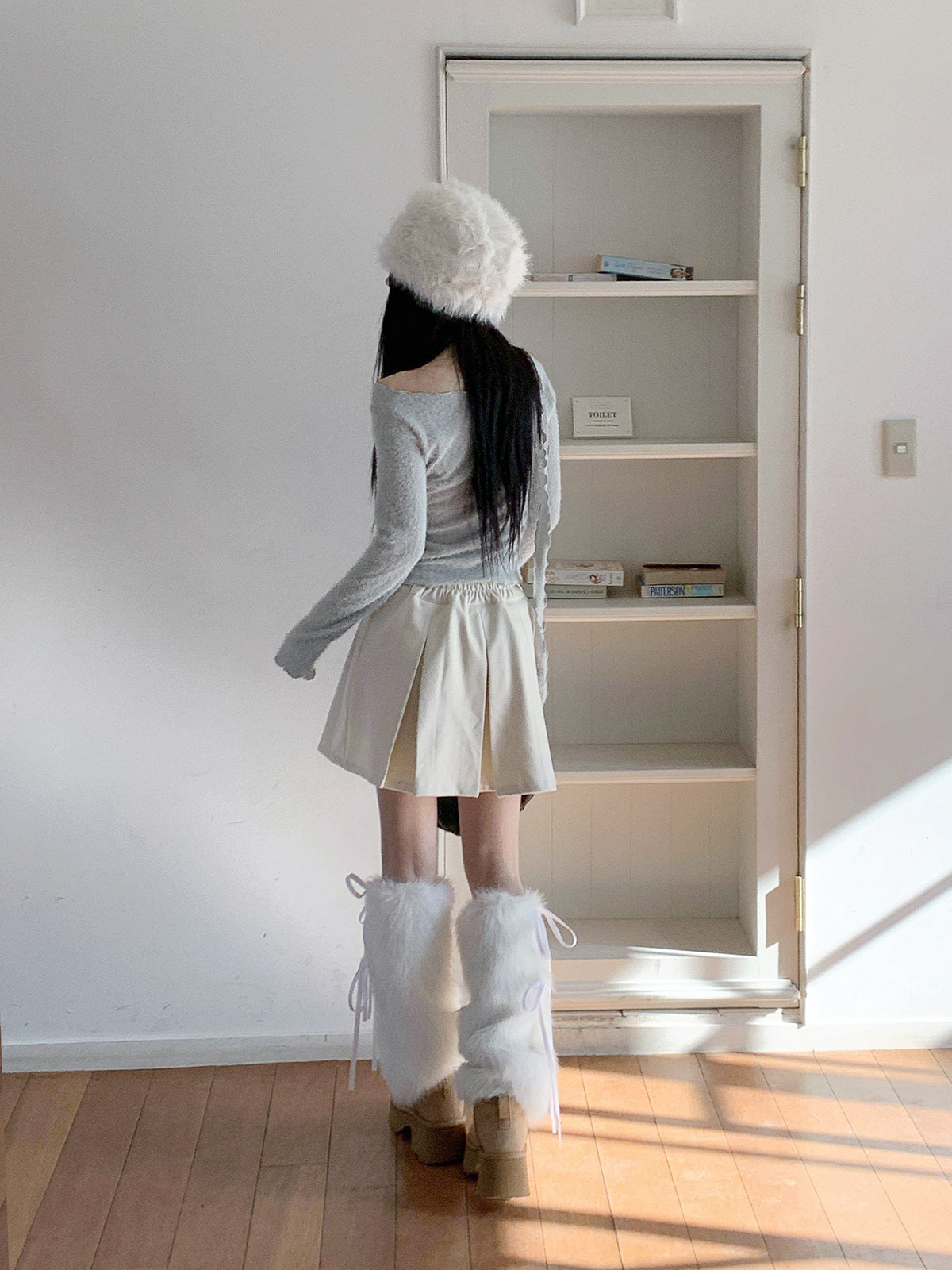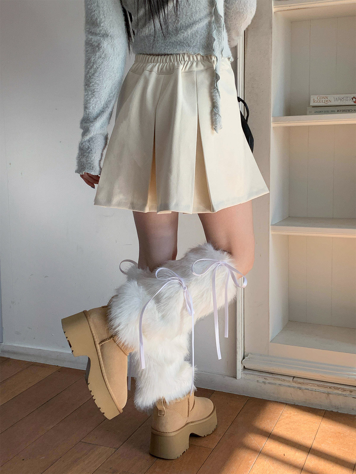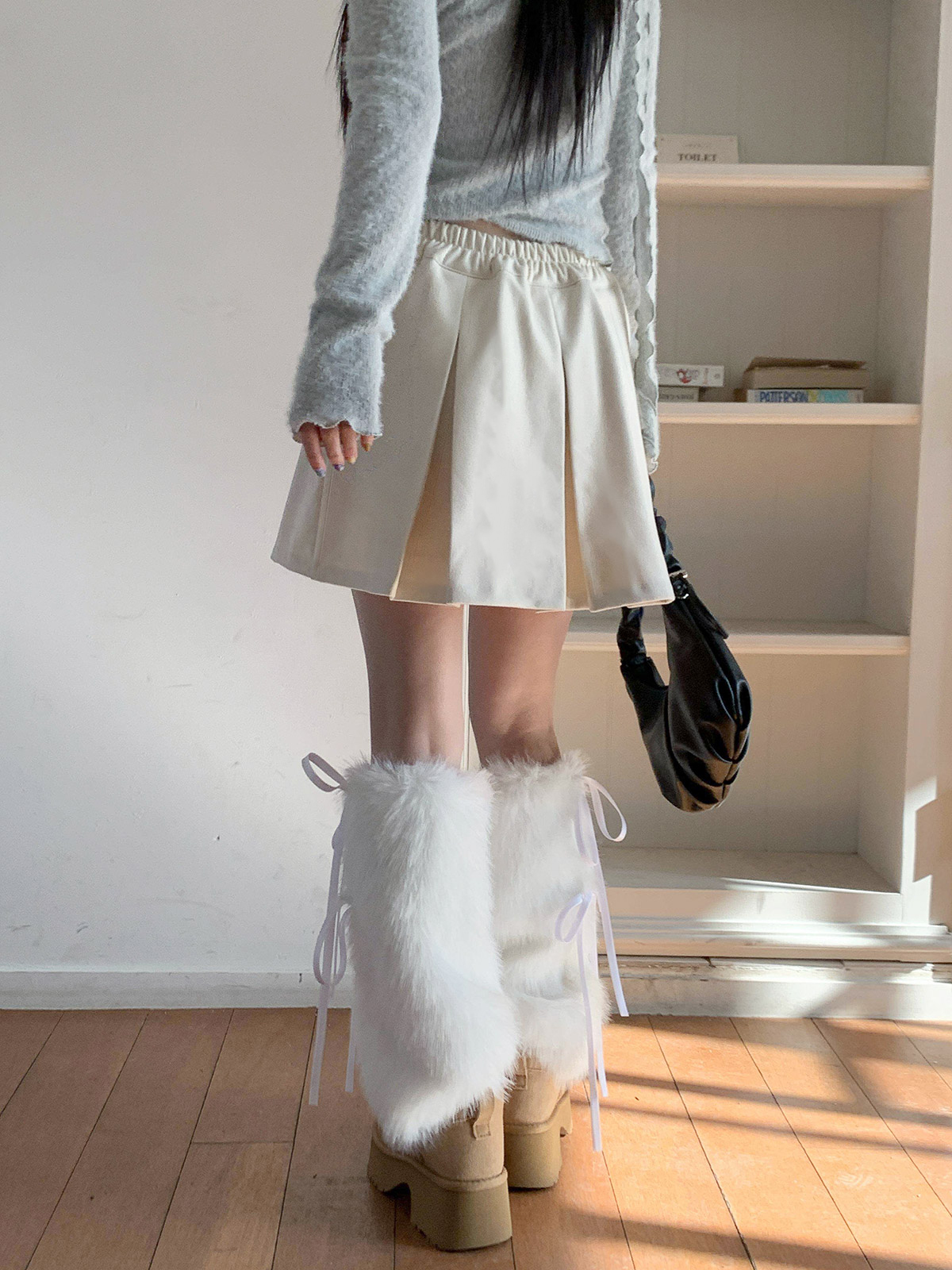 포근하고 따듯한 두께감의 여성스러운 플레어 라인으로 떨어지는 A라인 미니스커트