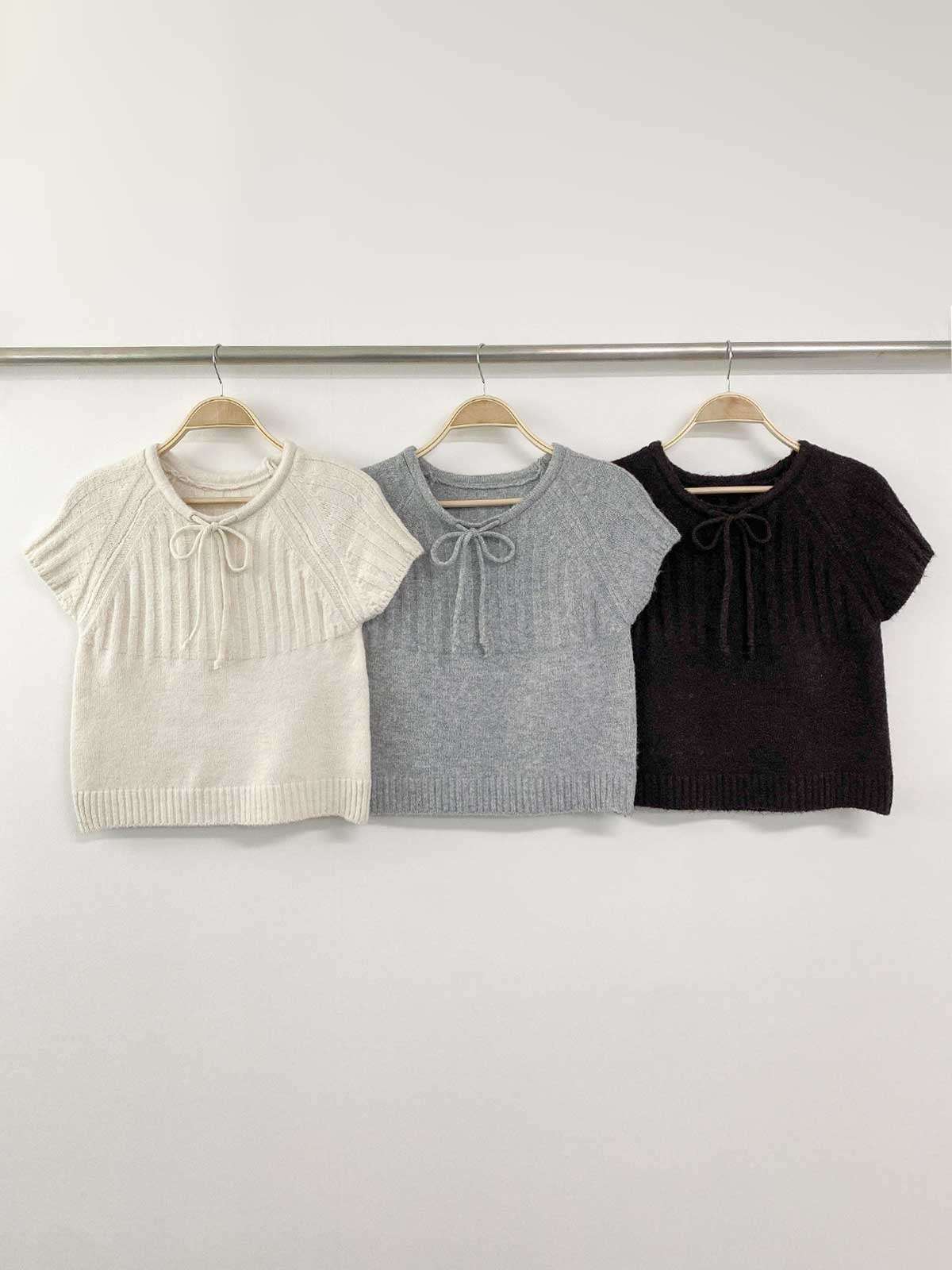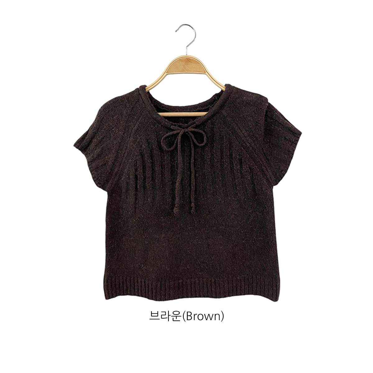 NT6114K5C-크헤리 리본 나그랑 골지 반팔 니트