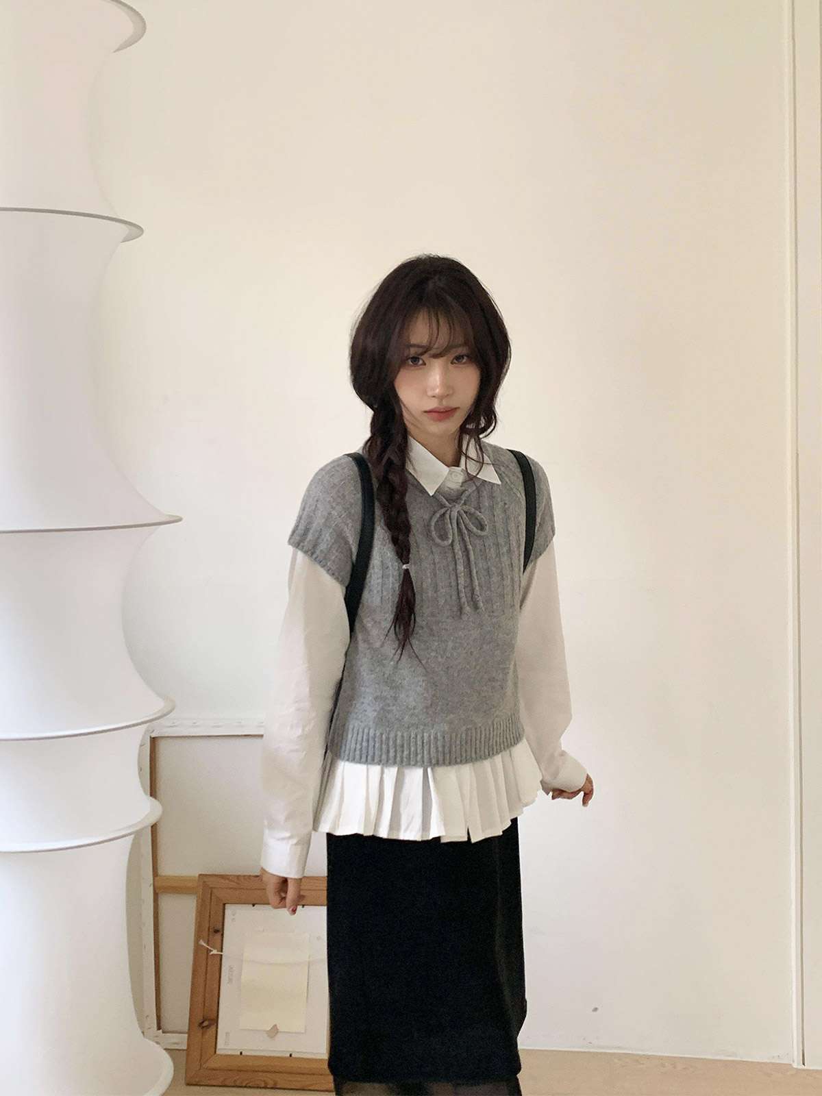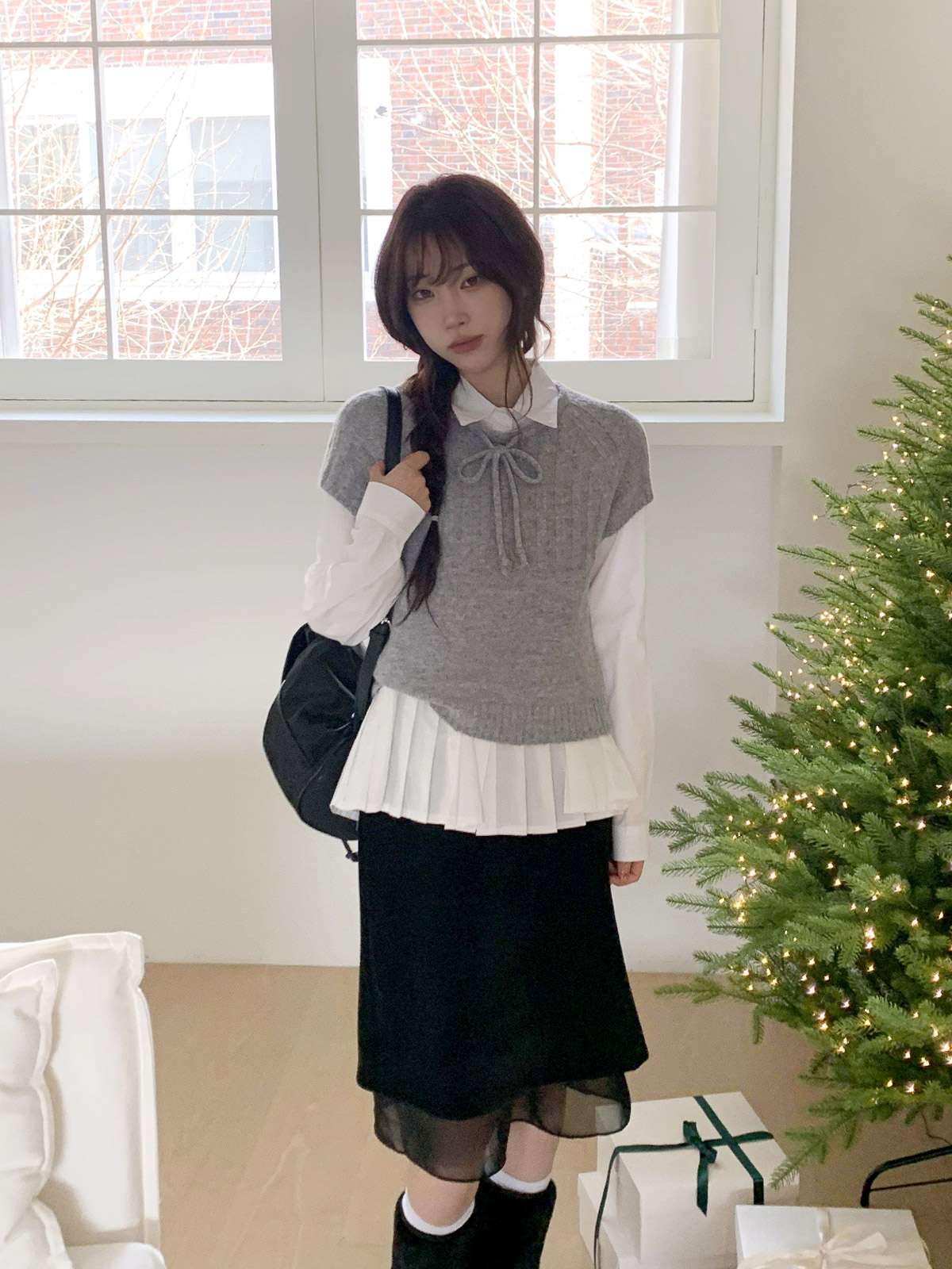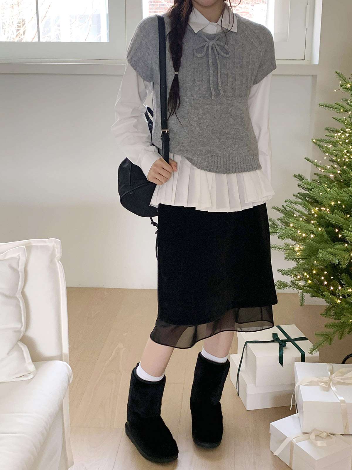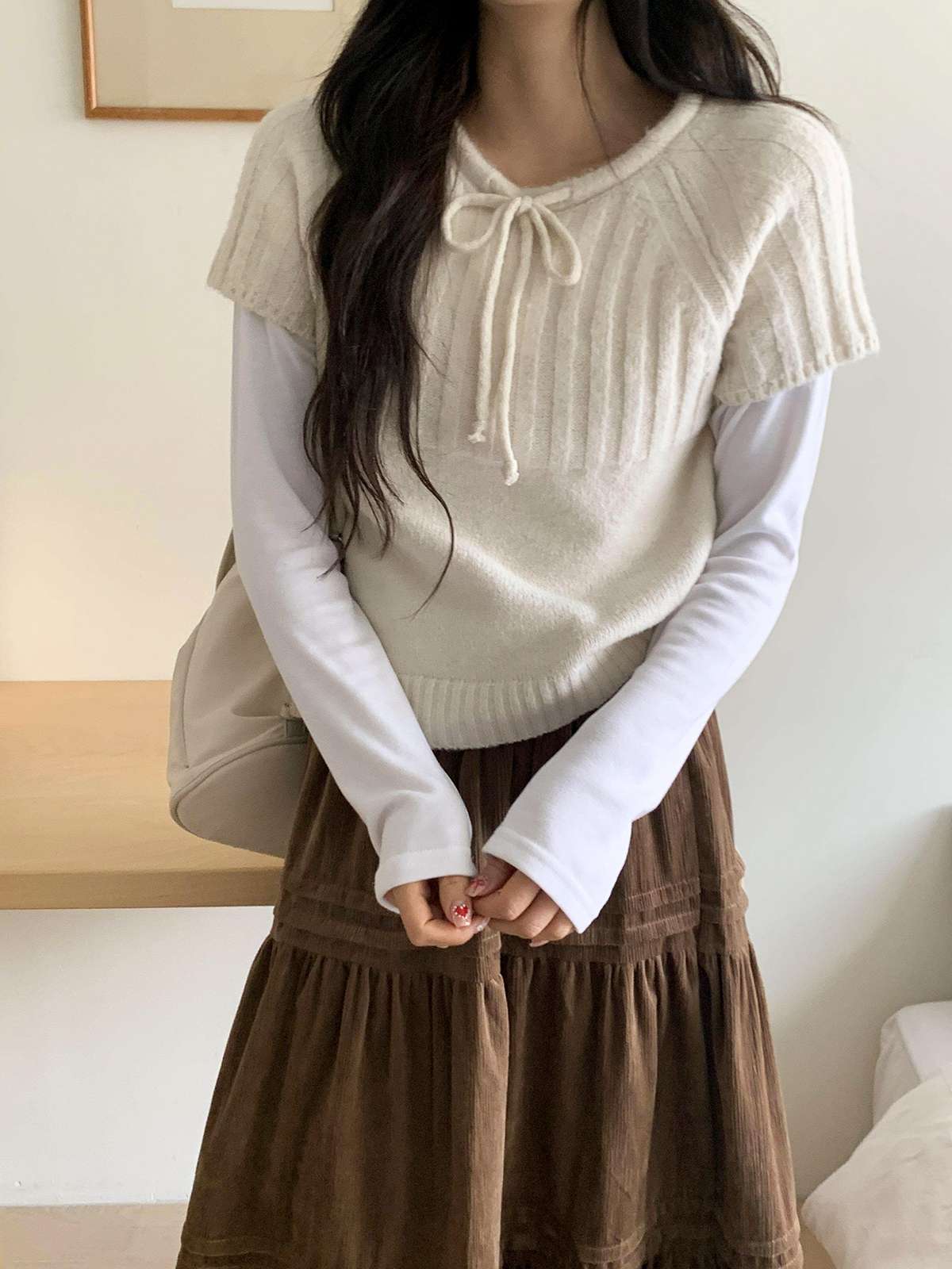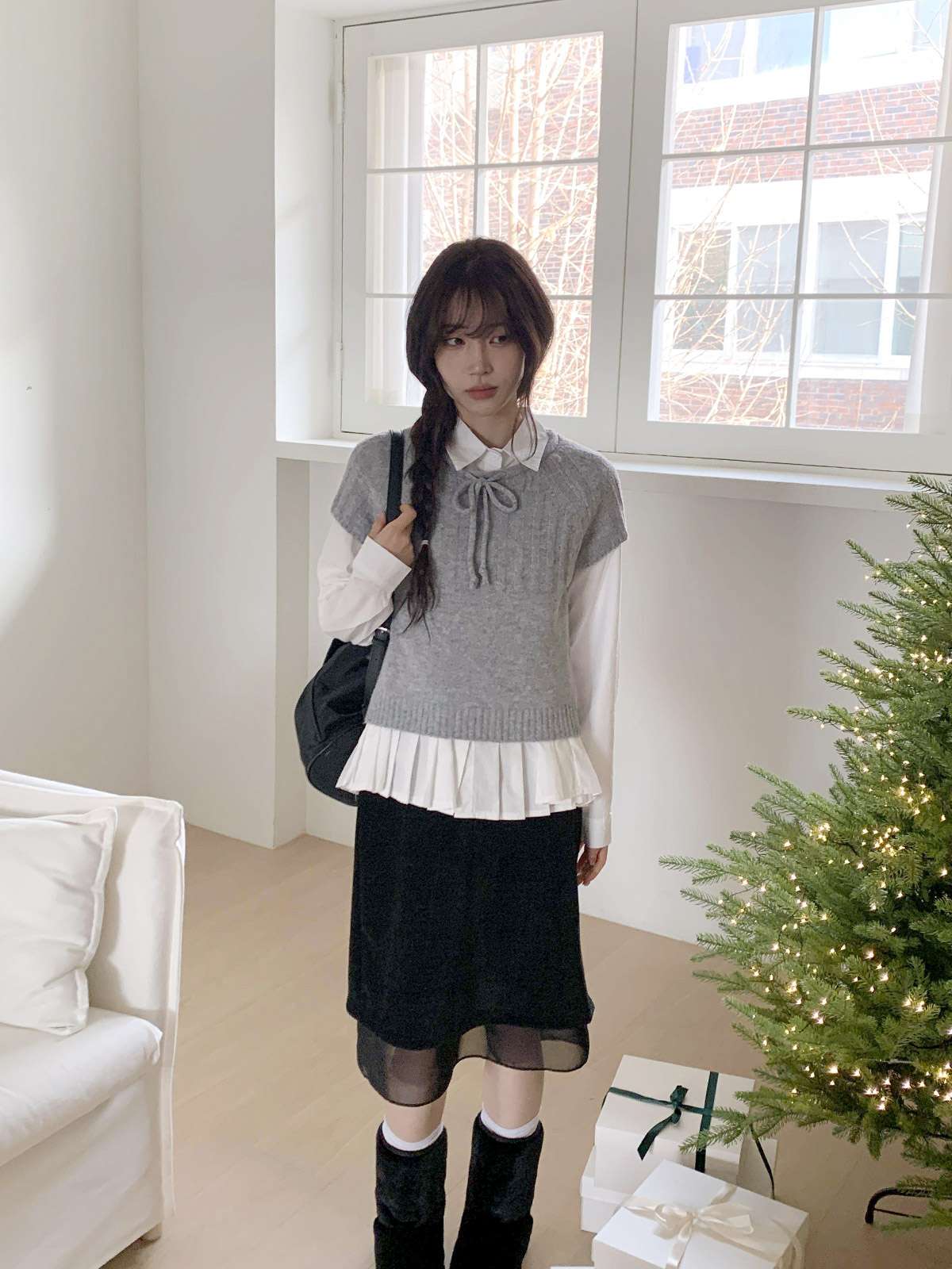 #니트#반팔#리본#골지#나그랑#레이온#울#겨울#반팔니트#골지니트#리본니트#나그랑니트#레이어드#포근한#리본반팔니트#나그랑골지니트#리본골지니트#레이어드용니트#베이직#포인트#데일리룩#겨울룩#러블리룩#페미닌룩#캐주얼룩#연말룩