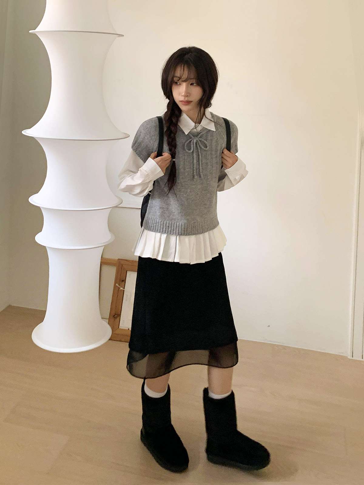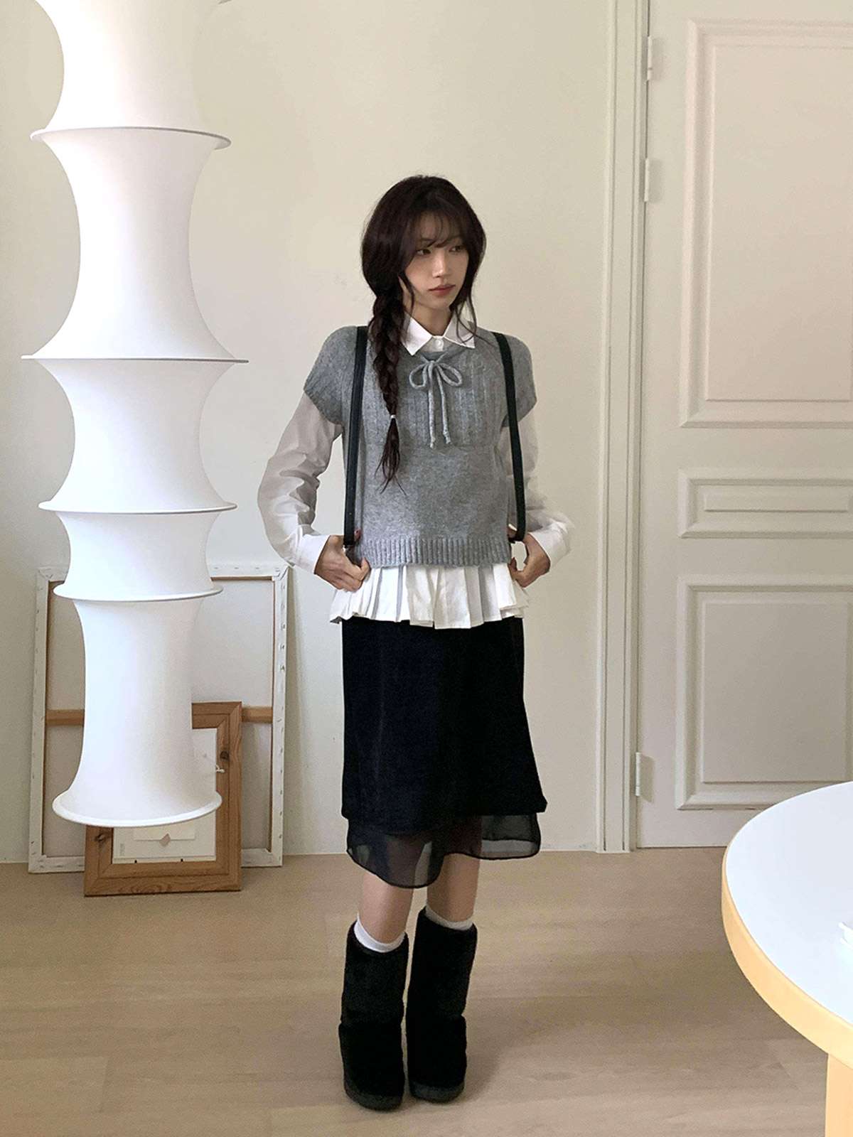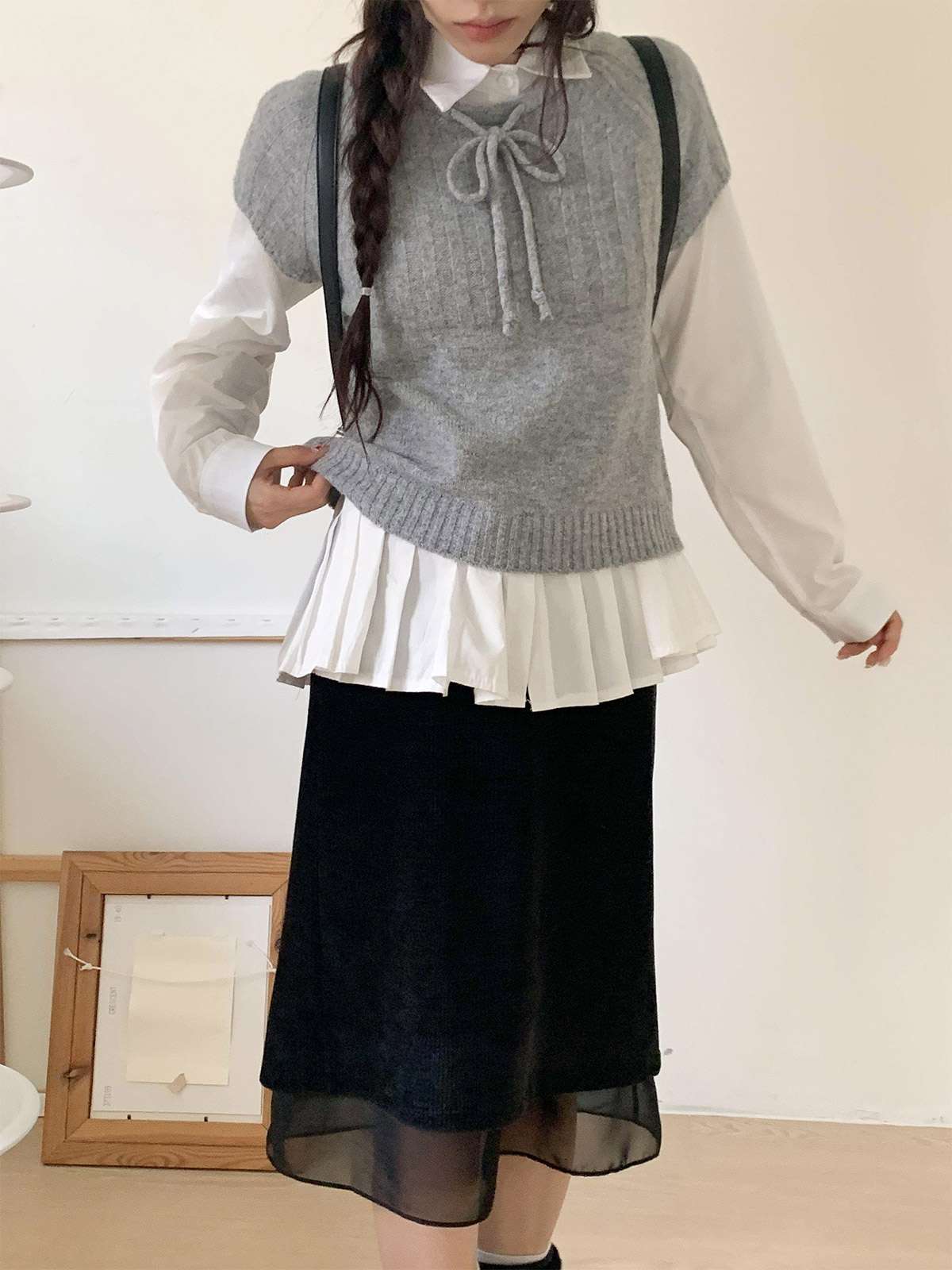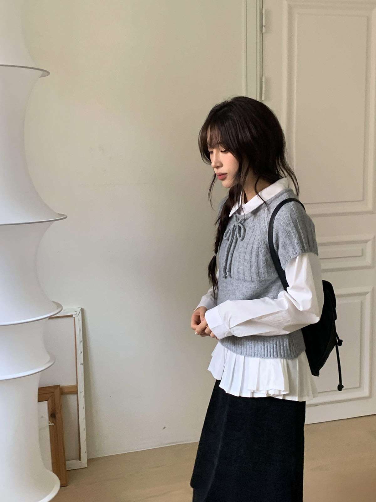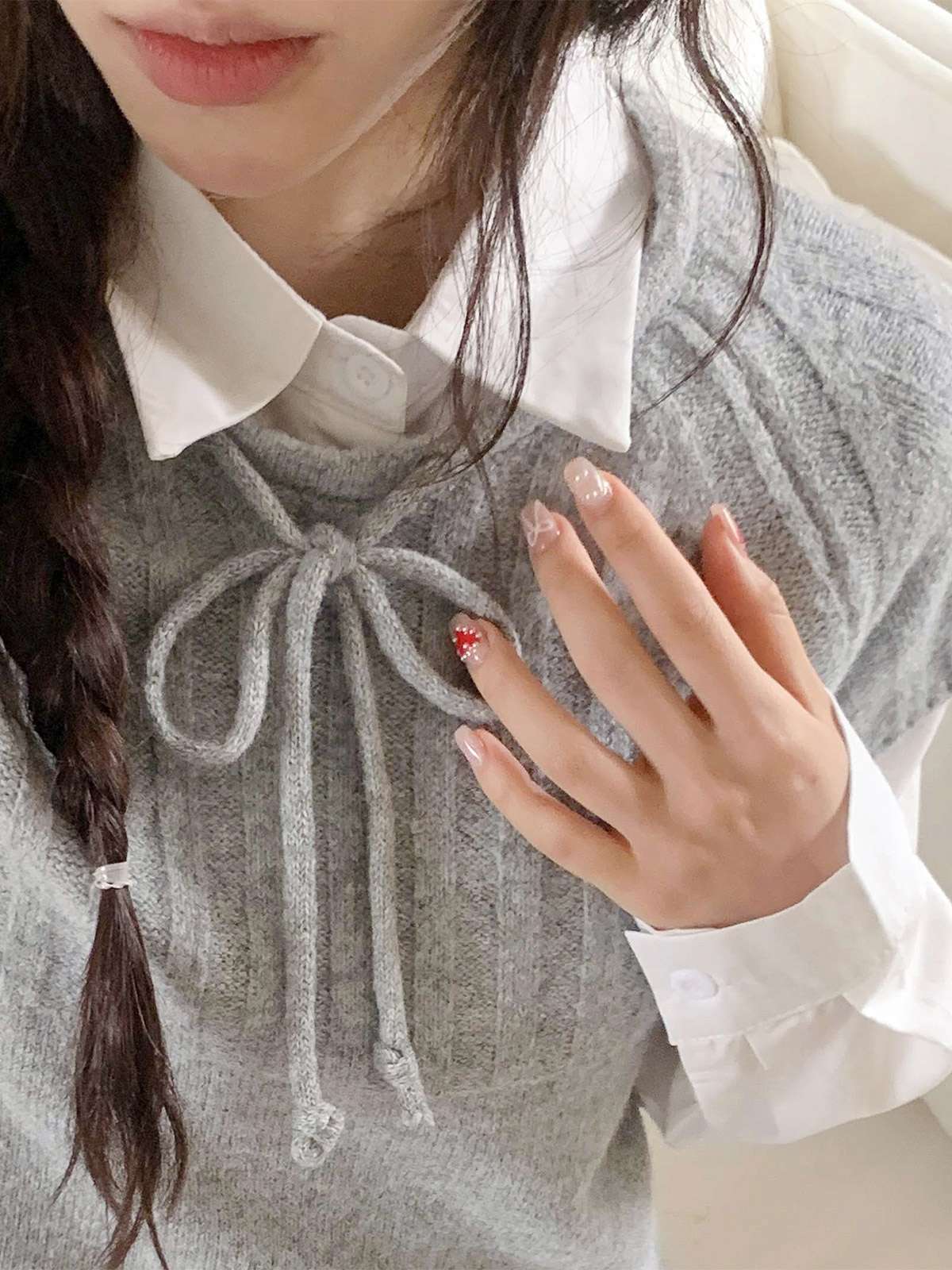 #니트#반팔#리본#골지#나그랑#레이온#울#겨울#반팔니트#골지니트#리본니트#나그랑니트#레이어드#포근한#리본반팔니트#나그랑골지니트#리본골지니트#레이어드용니트#베이직#포인트#데일리룩#겨울룩#러블리룩#페미닌룩#캐주얼룩#연말룩