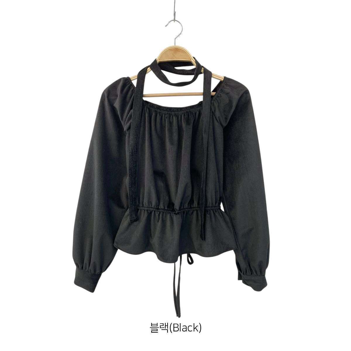 [ BL5860K5C-크헤리 벨벳 셔링 크롭 스퀘어넥 리본 블라우스 ]