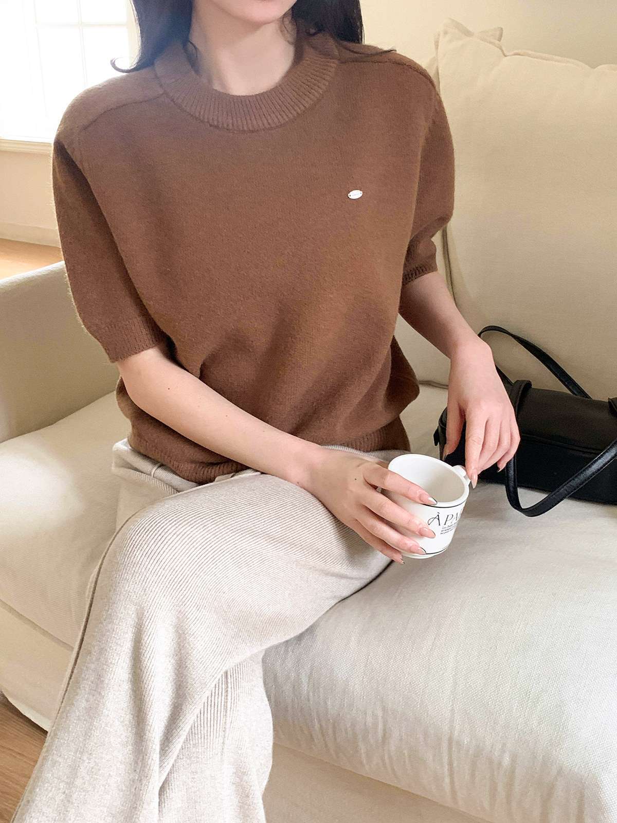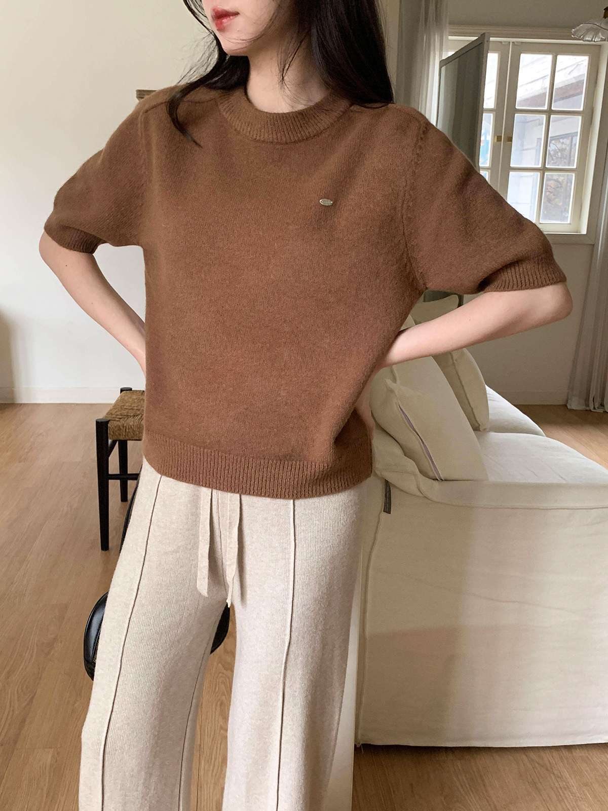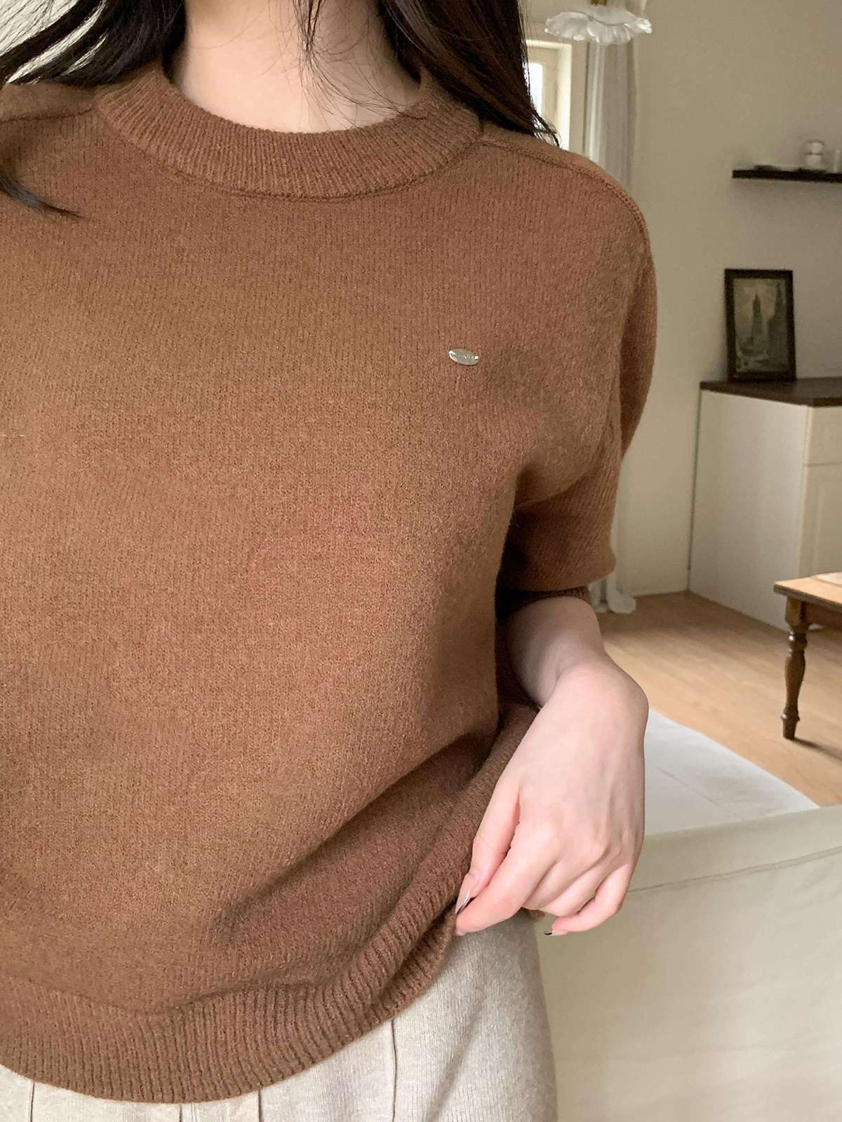 어디에나 매치하기 좋은 반팔 니트입니다!