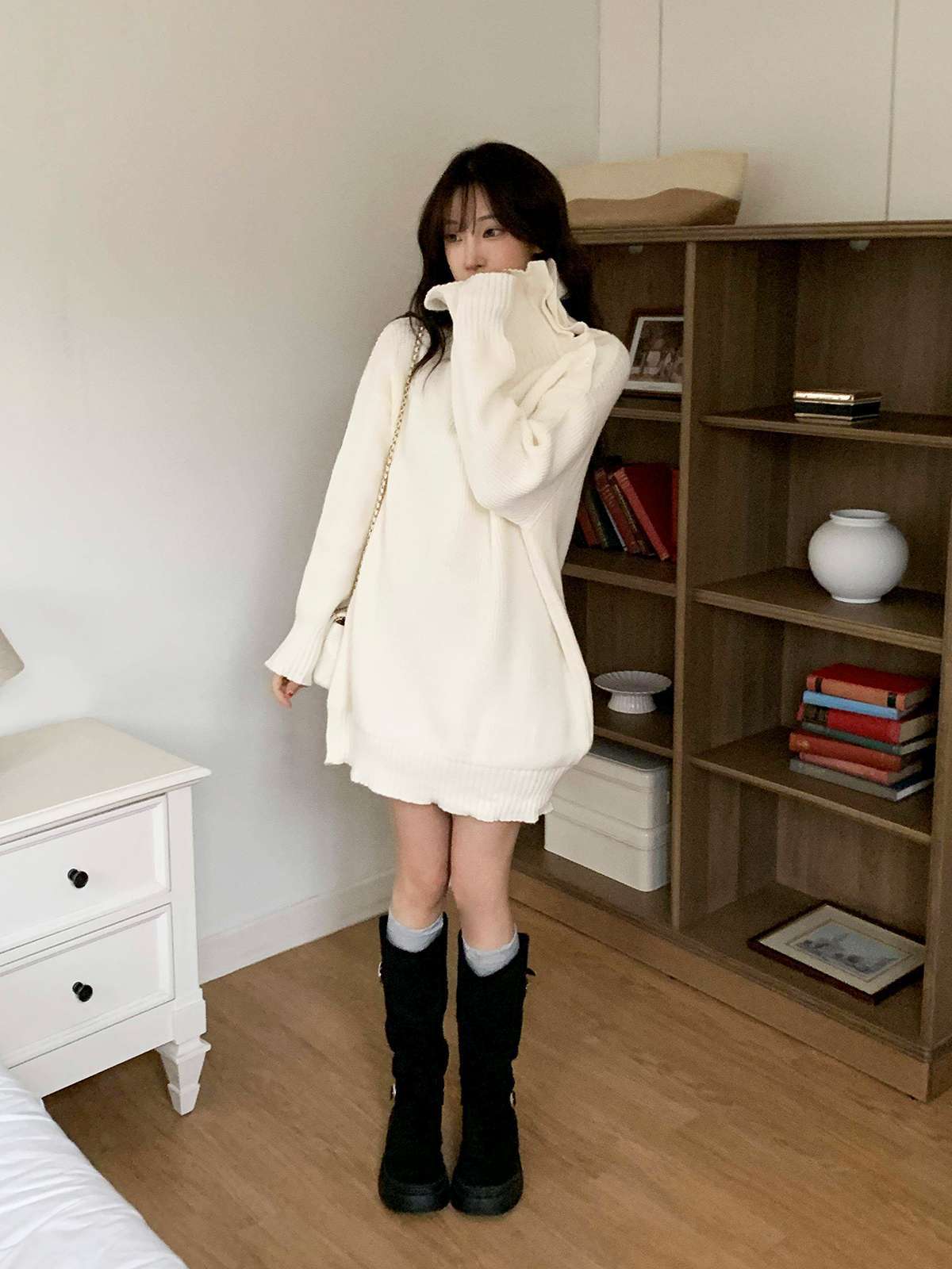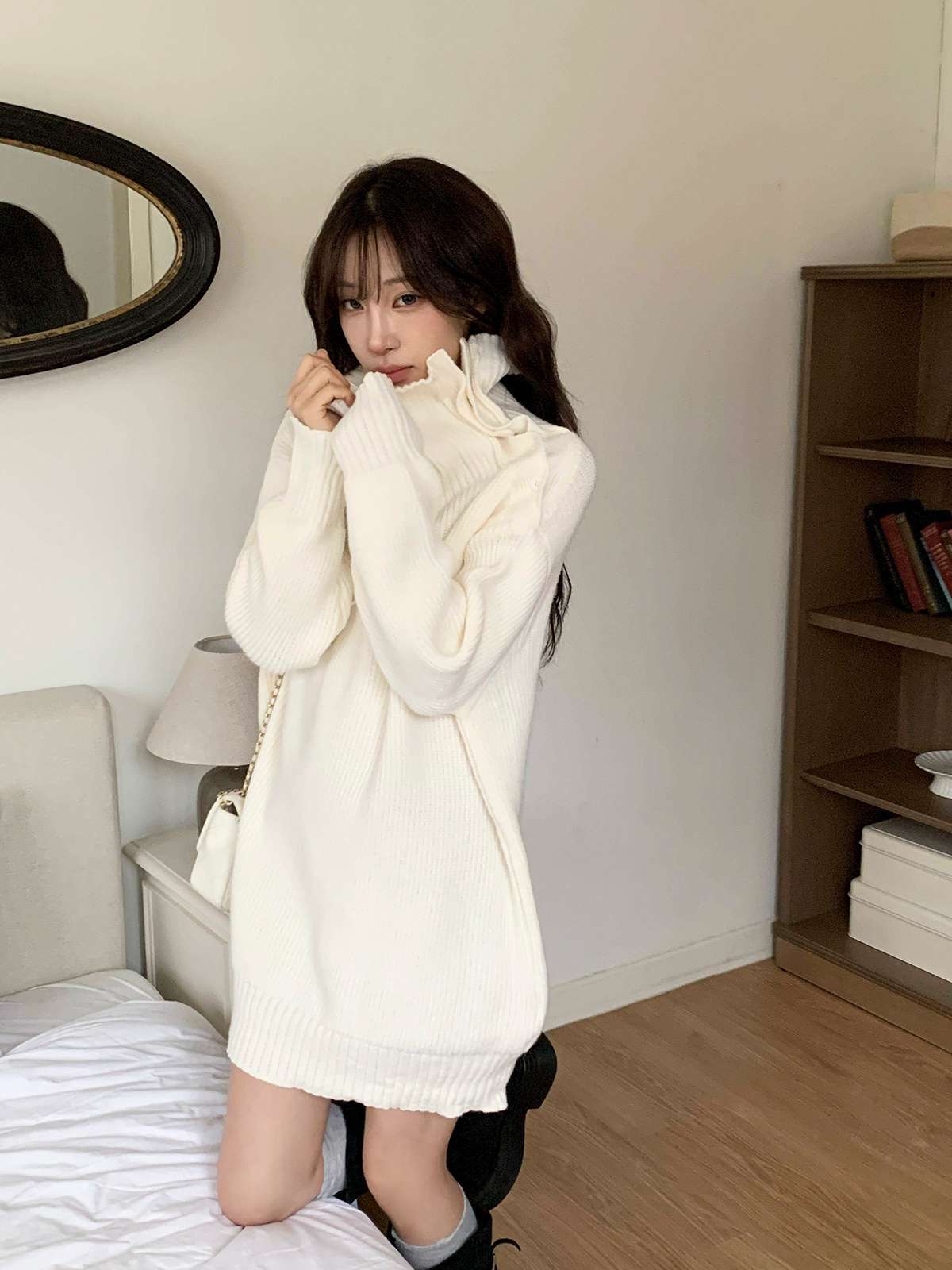 여리여리한 무드가 느껴지는 미니원피스 기장감의 니트
