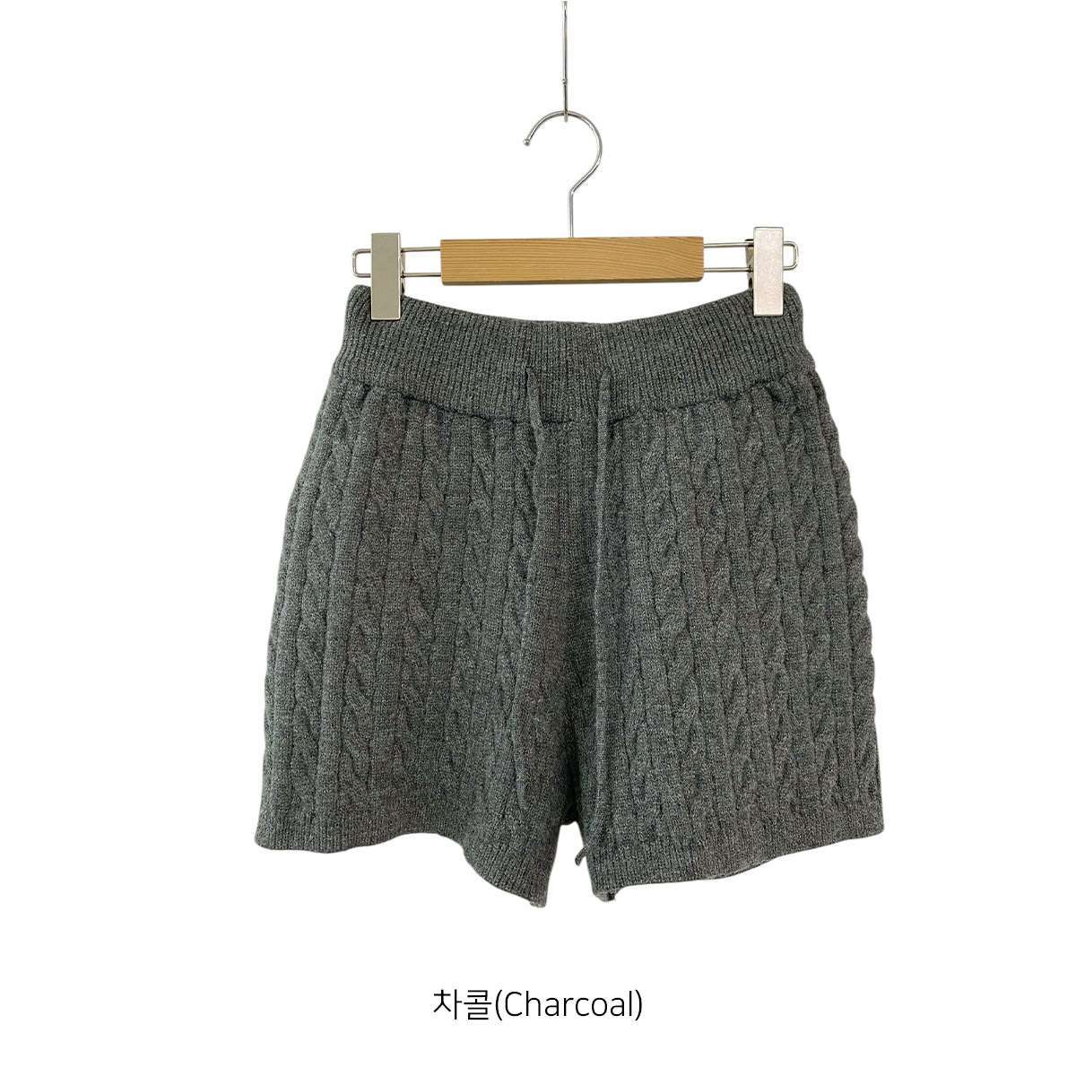 PT15708K5C-크레블 도톰 꽈배기 니트 스트링 반바지