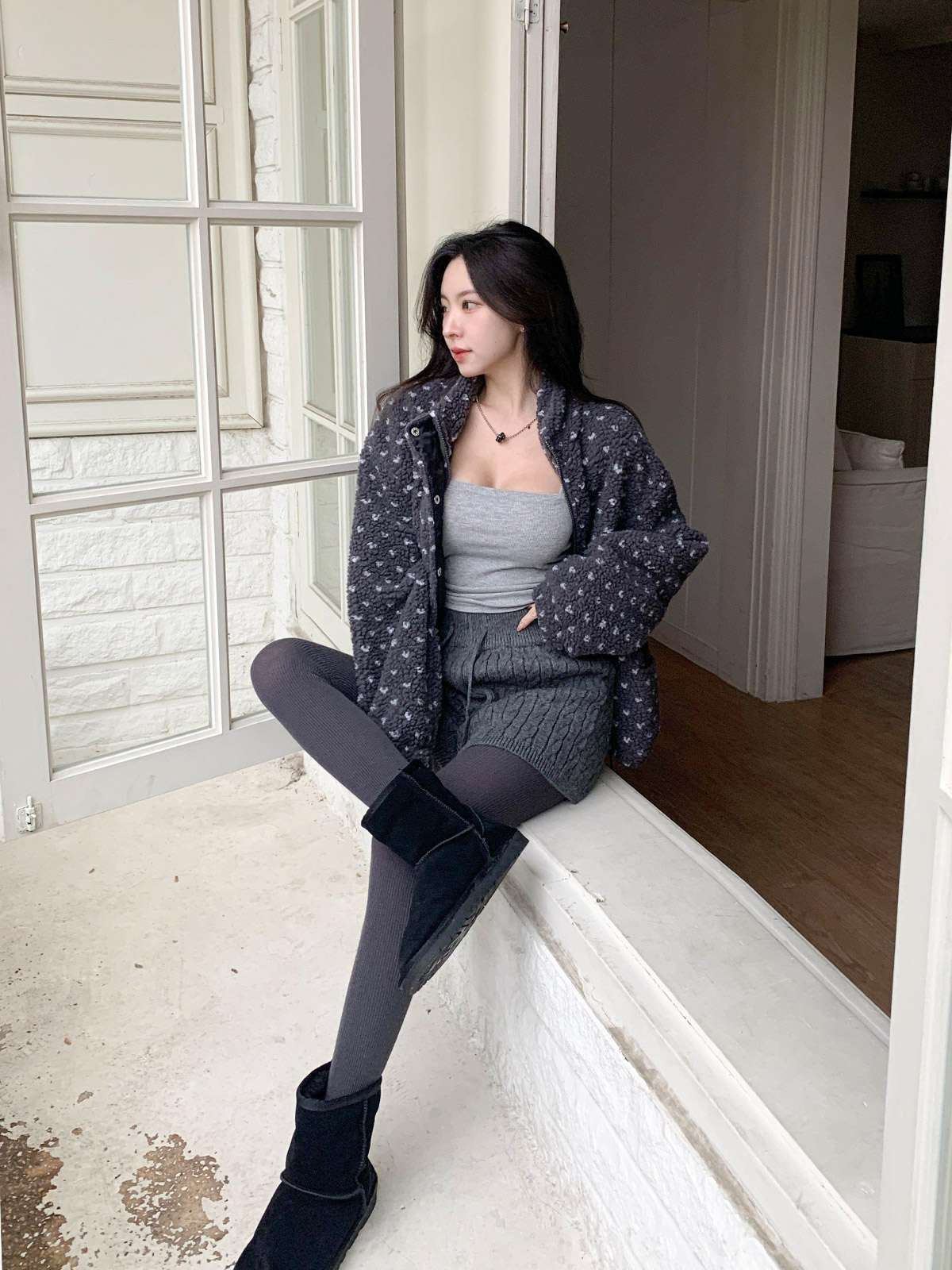 ☆ 모델 착용 사이즈 : FREE/차콜 착용/JY