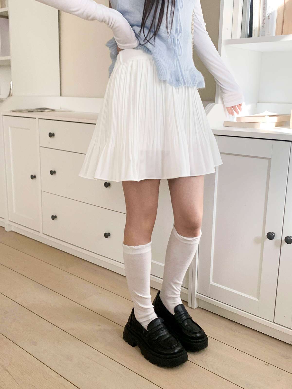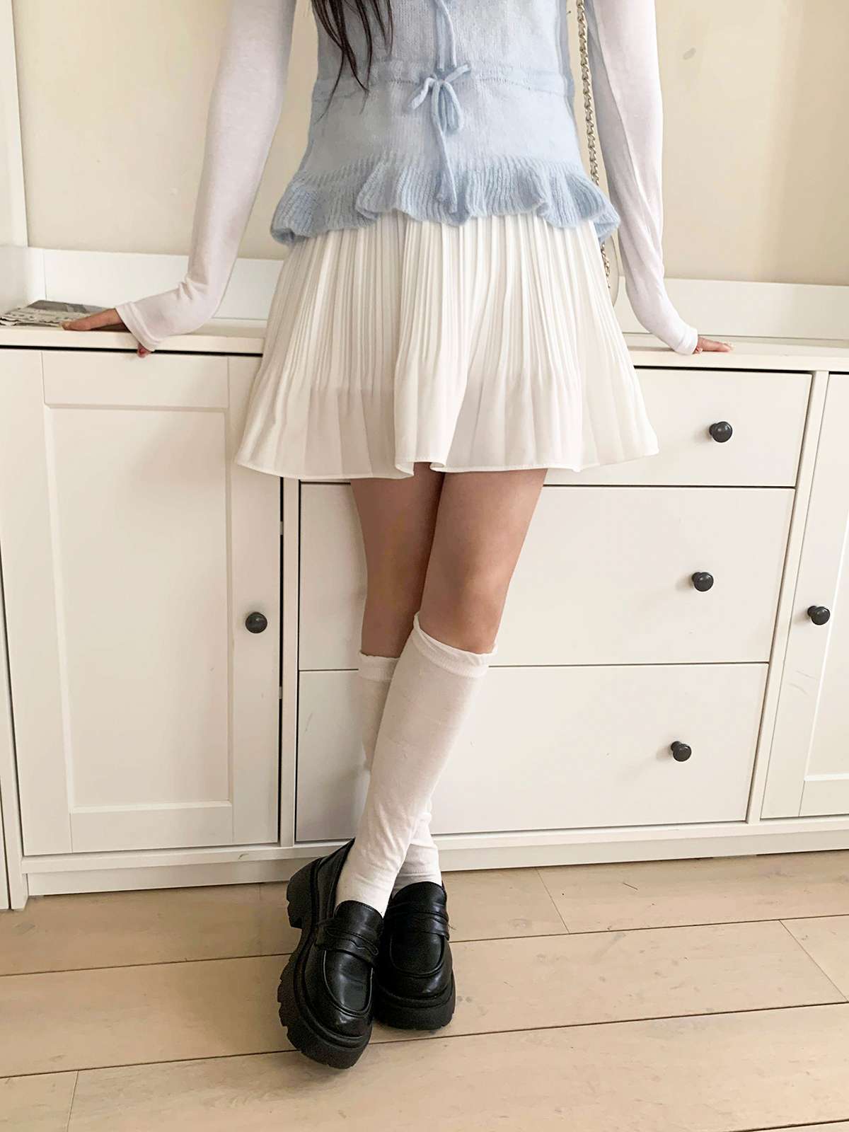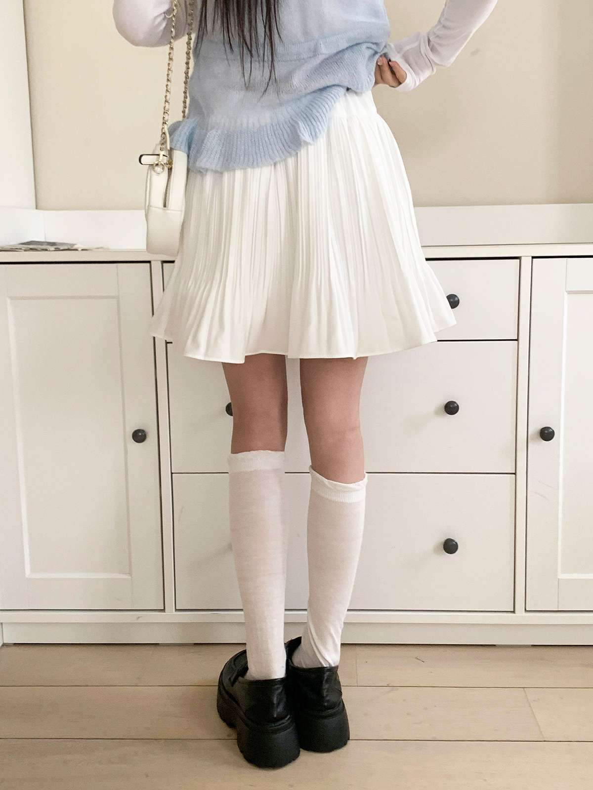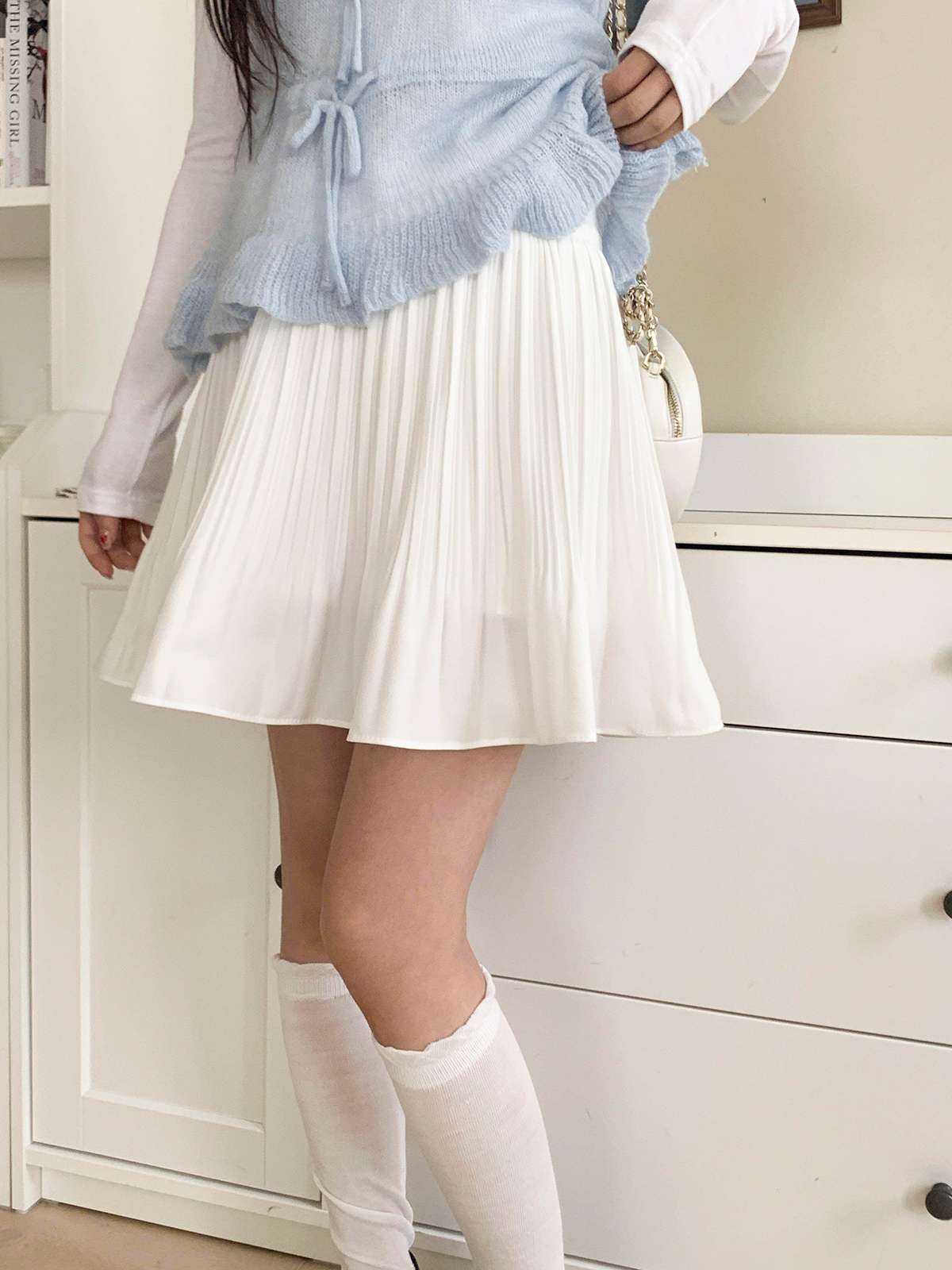 러블리한 무드를 연출해주는 미니 플리츠 스커트