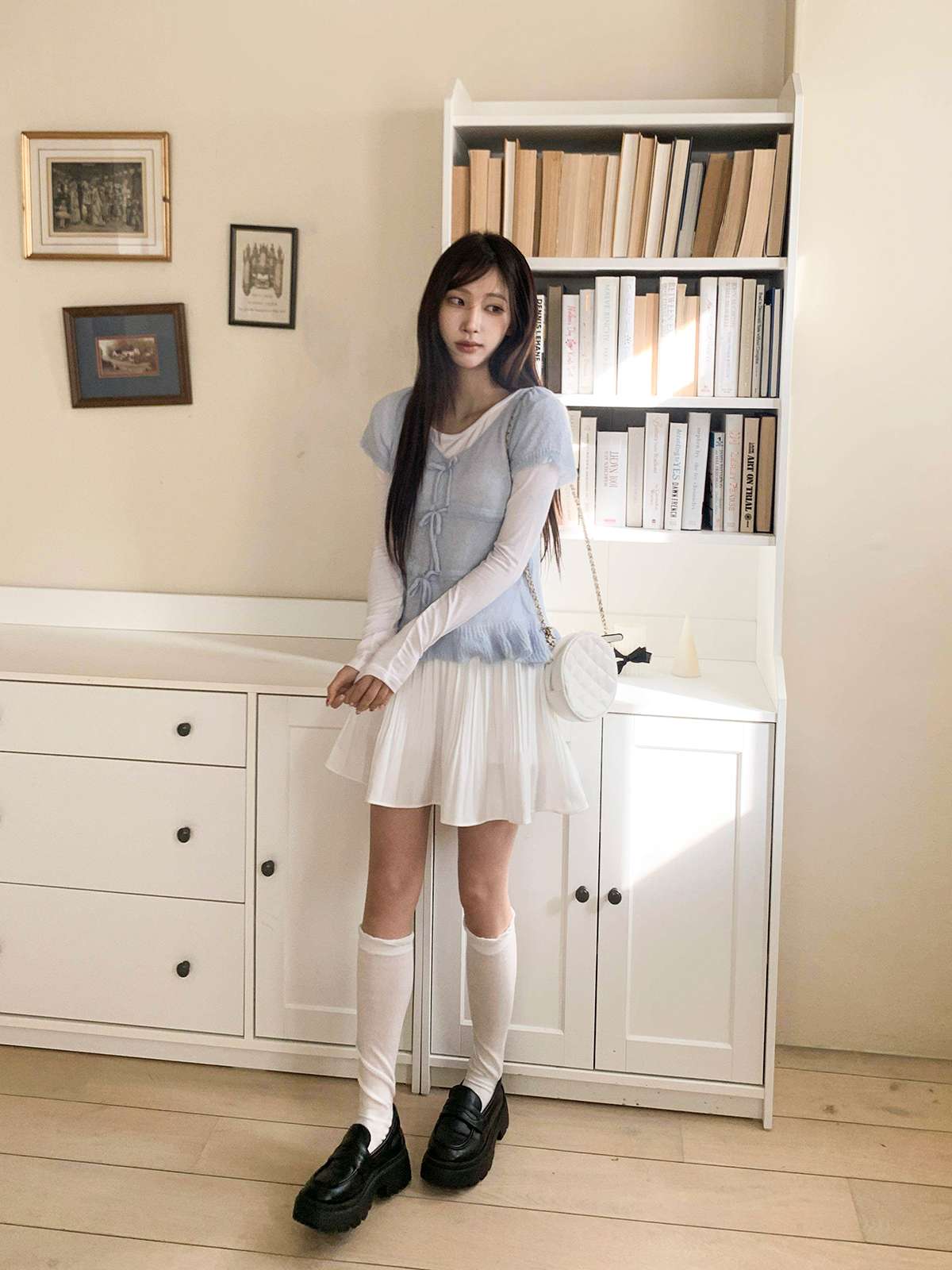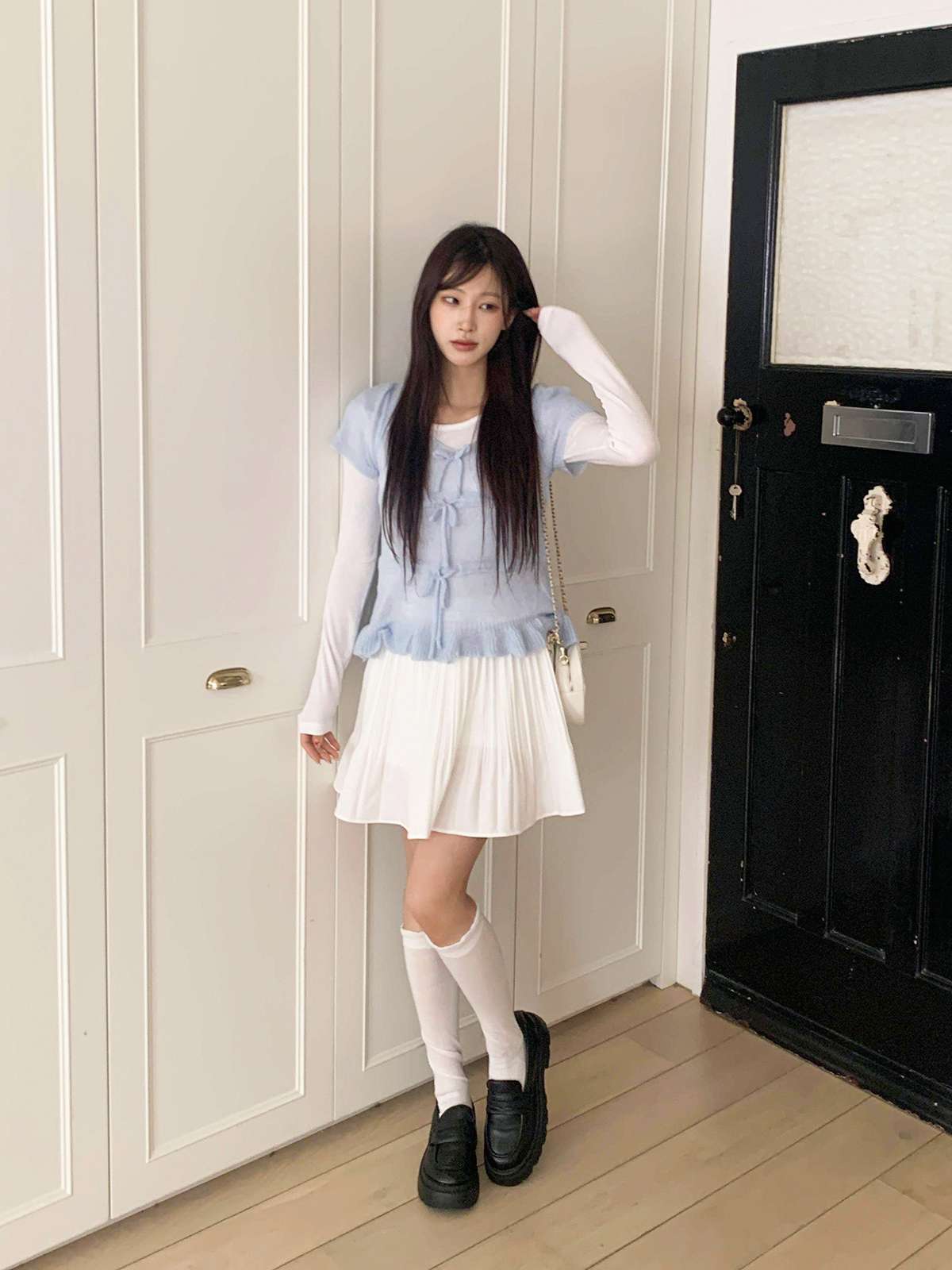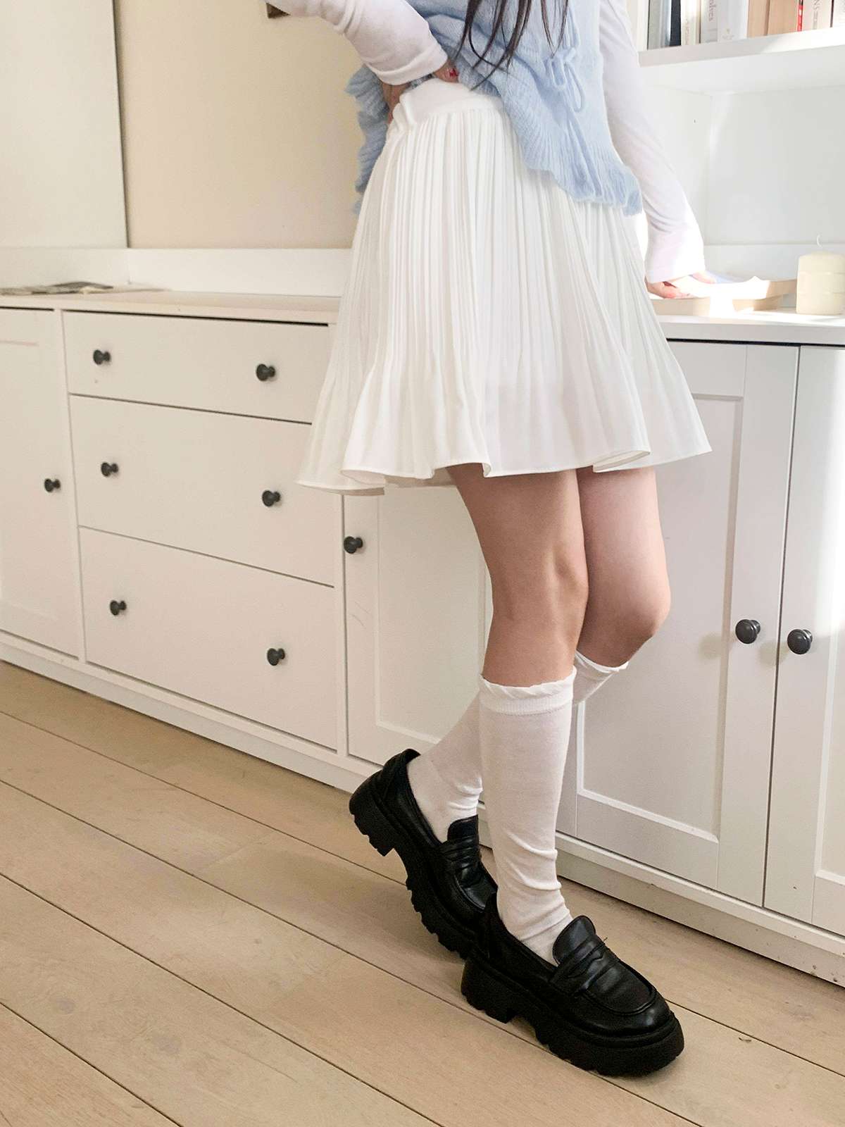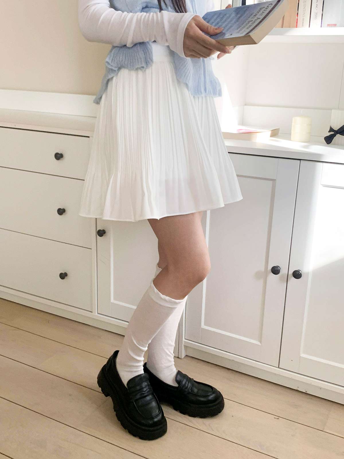 러블리한 무드를 연출해주는 미니 플리츠 스커트