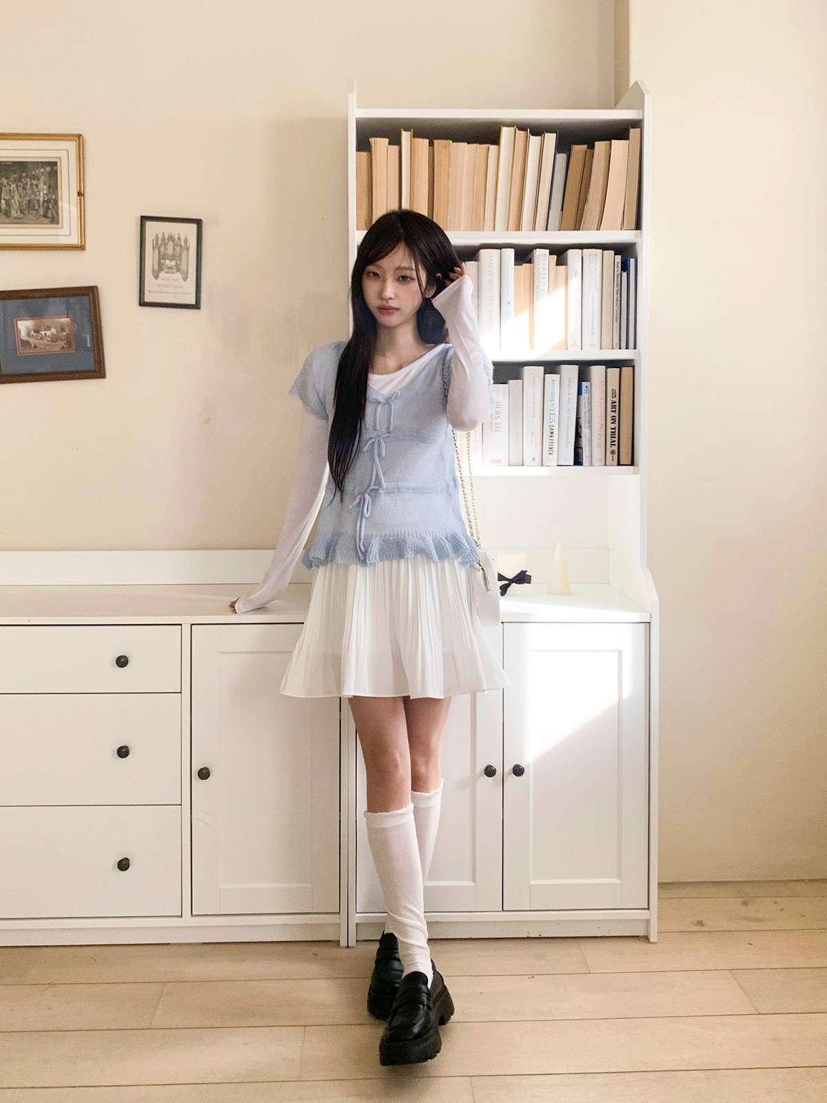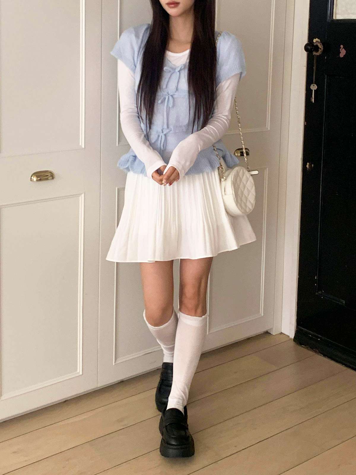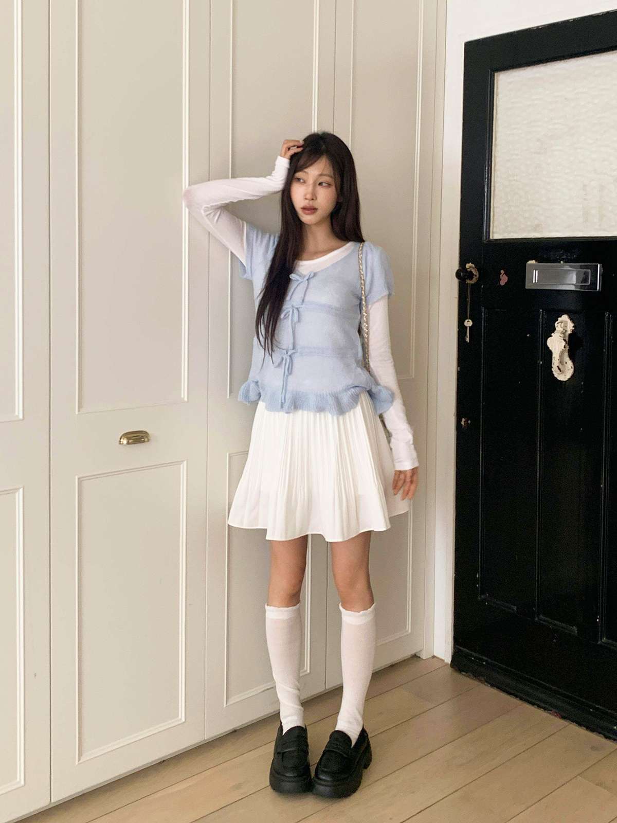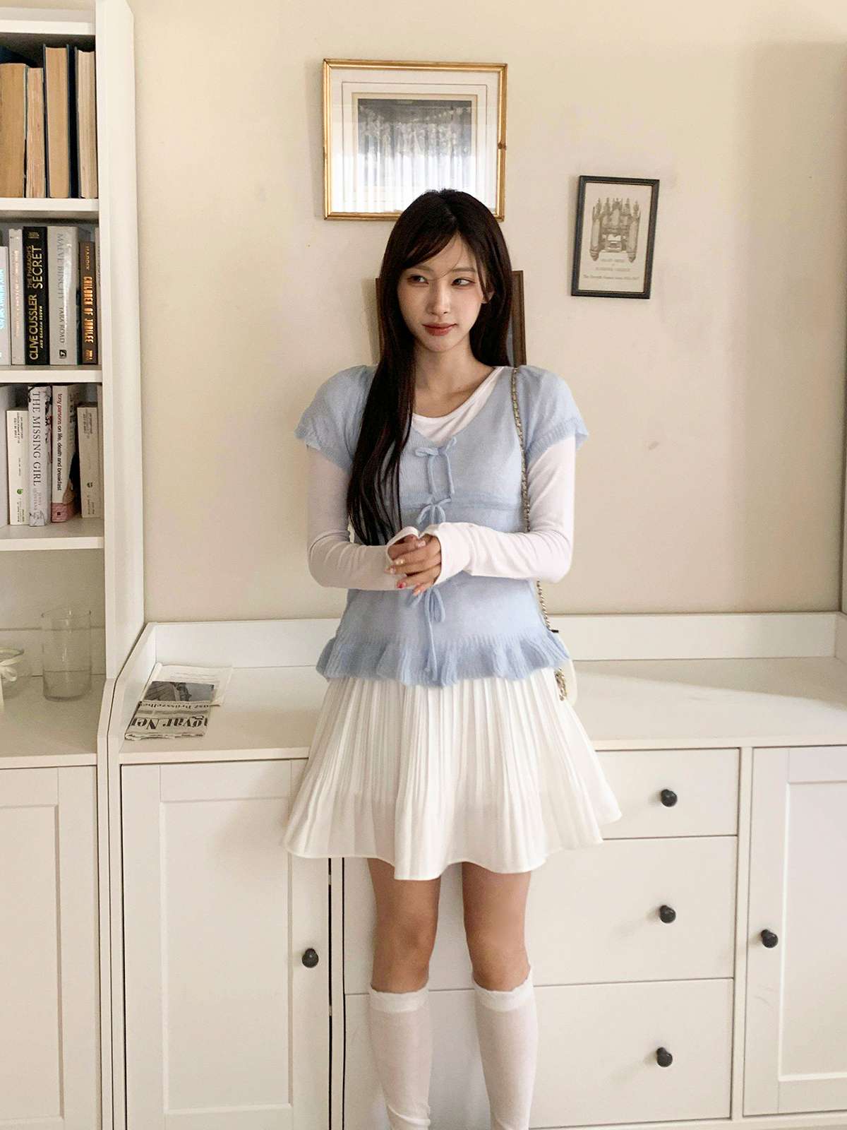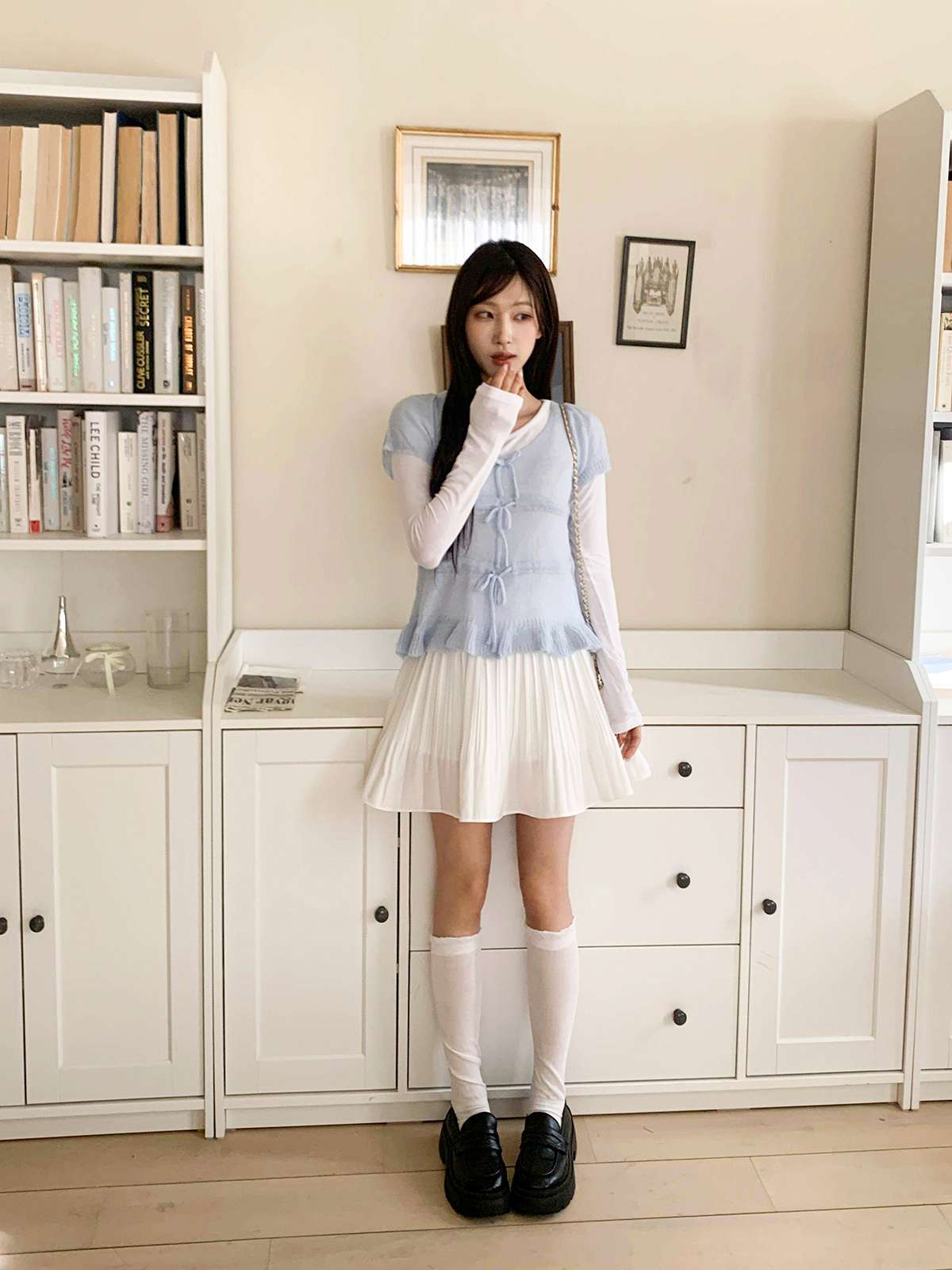 러블리한 무드를 연출해주는 미니 플리츠 스커트