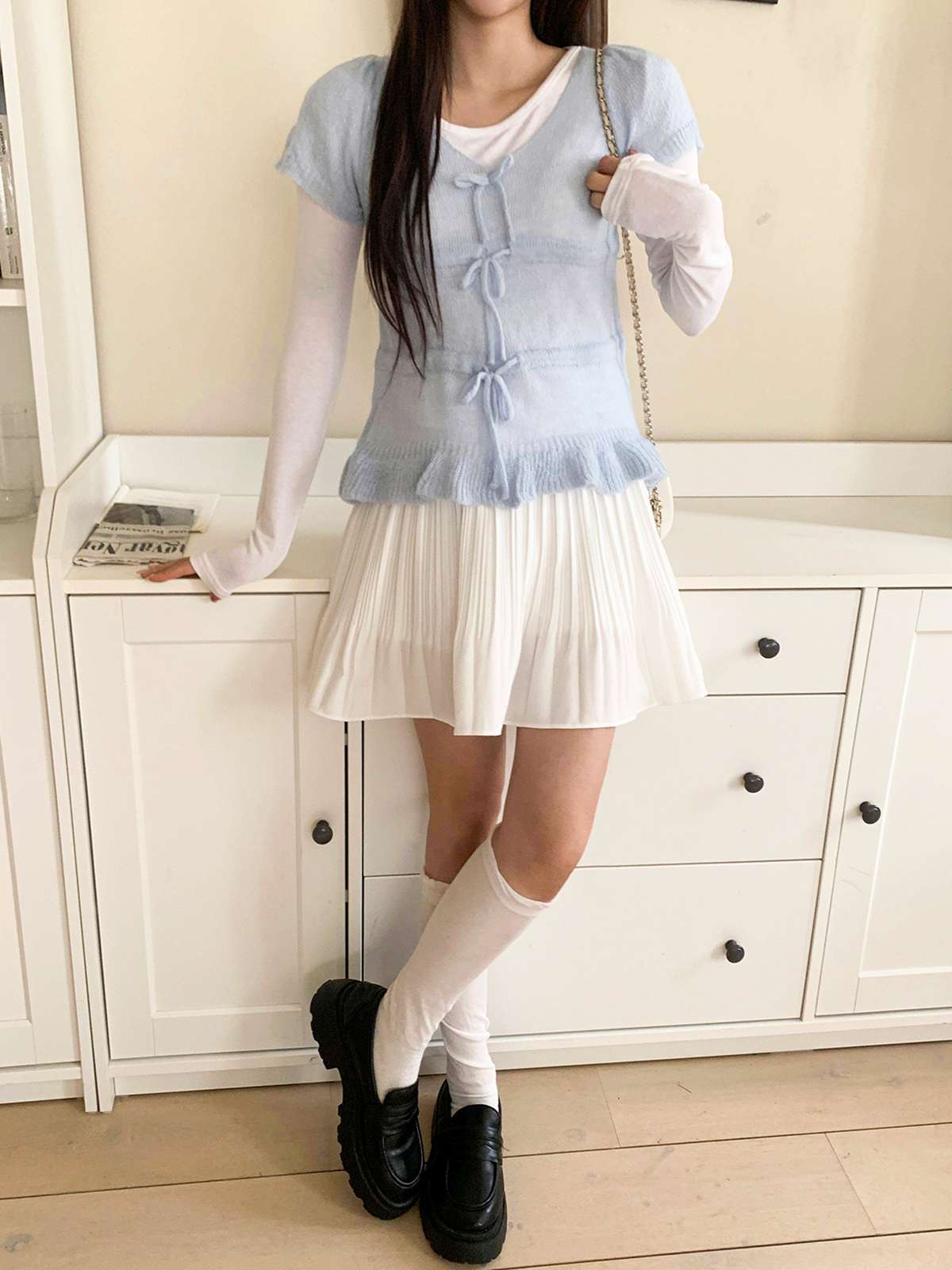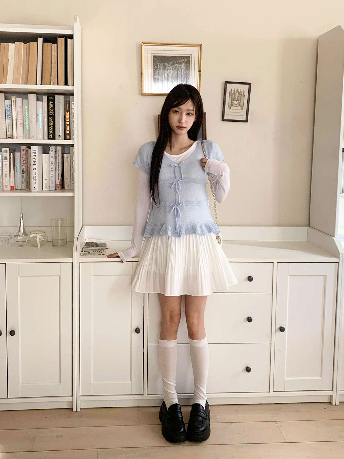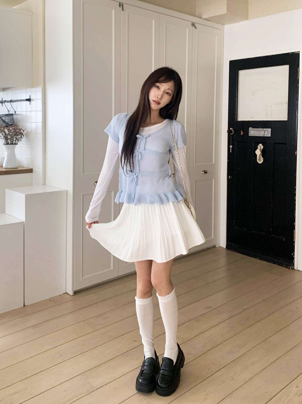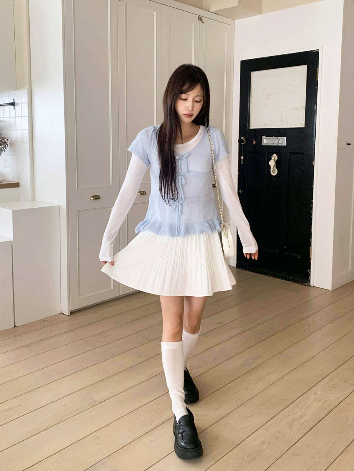 러블리한 무드를 연출해주는 미니 플리츠 스커트