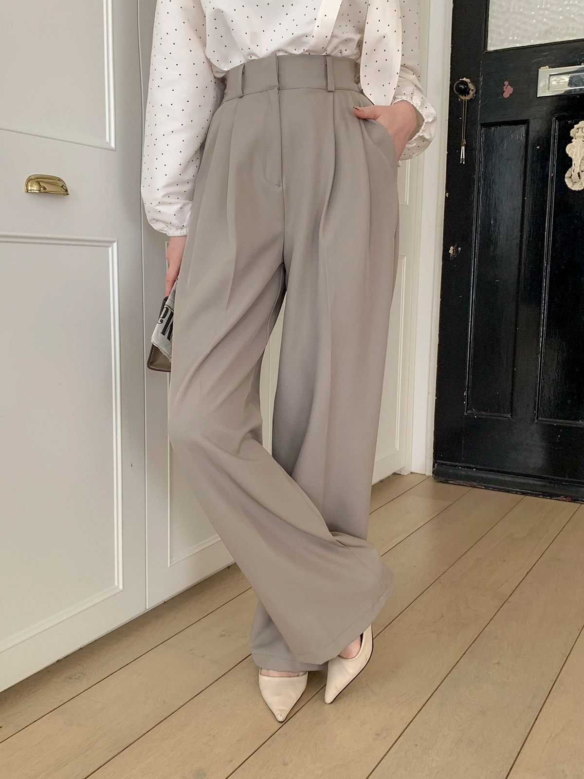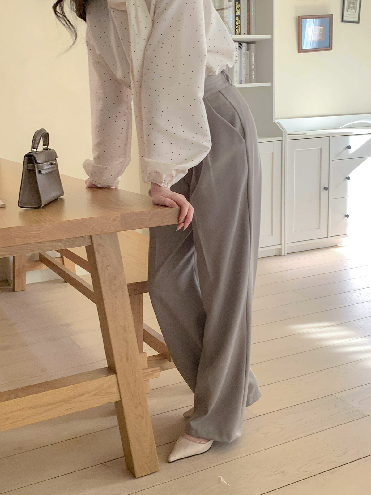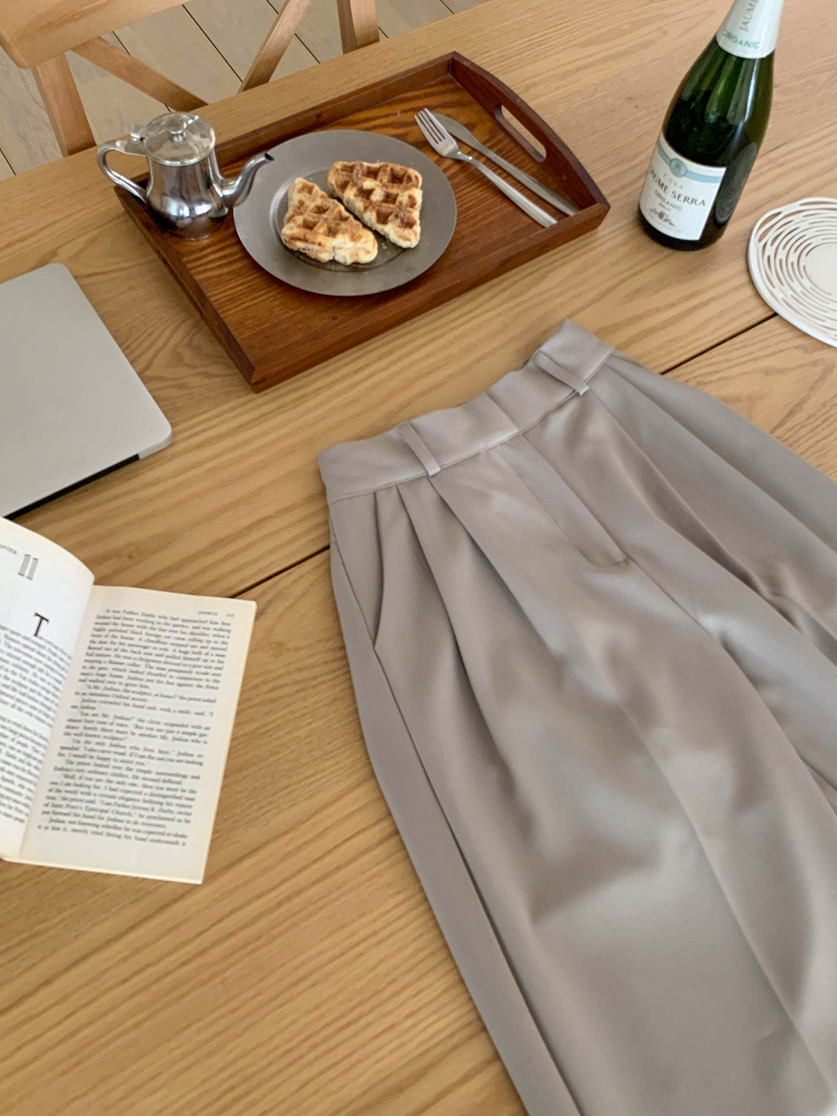 찰랑거리는 부드러운 소재의 투핀턱 와이드 슬랙스
