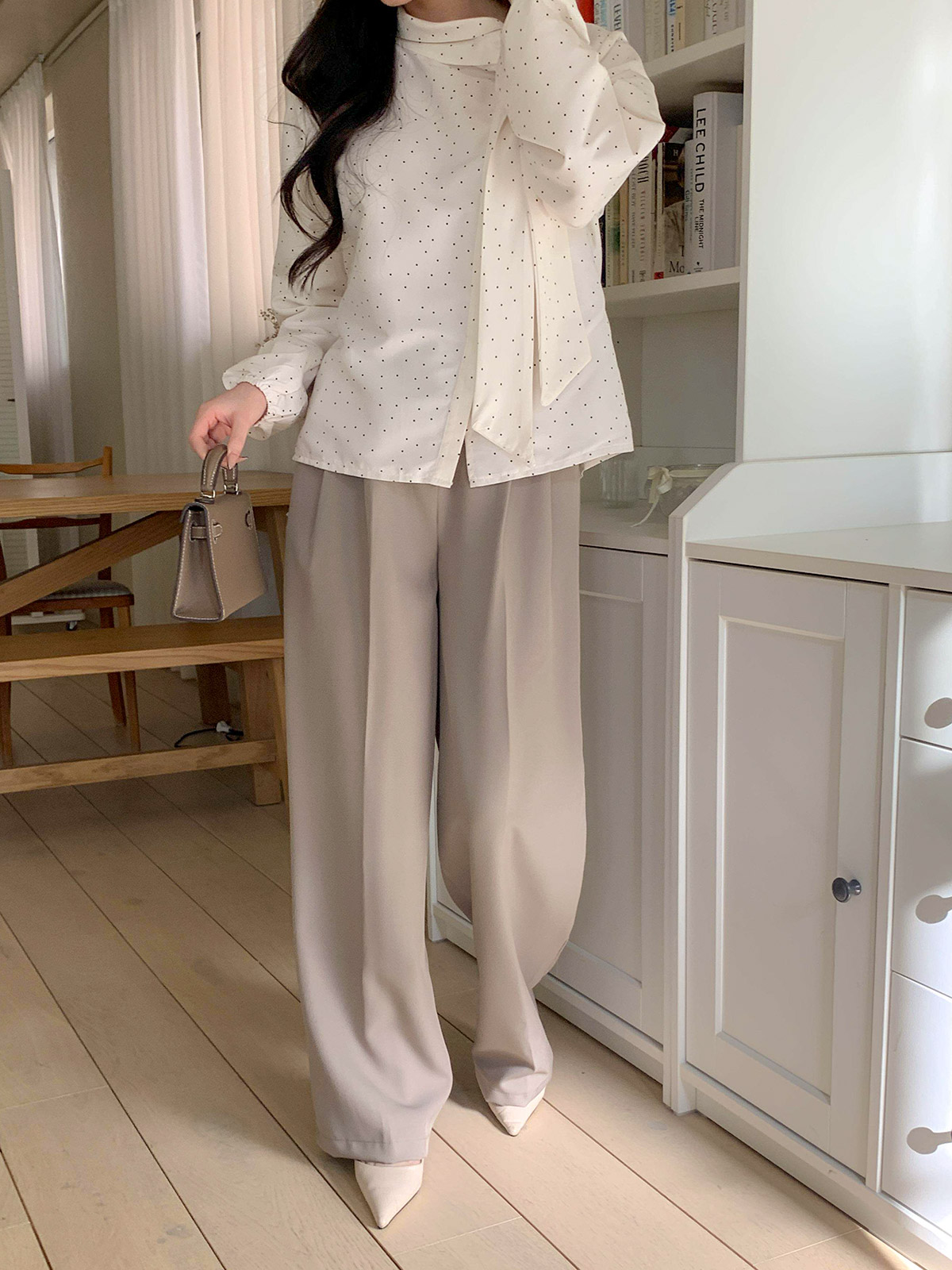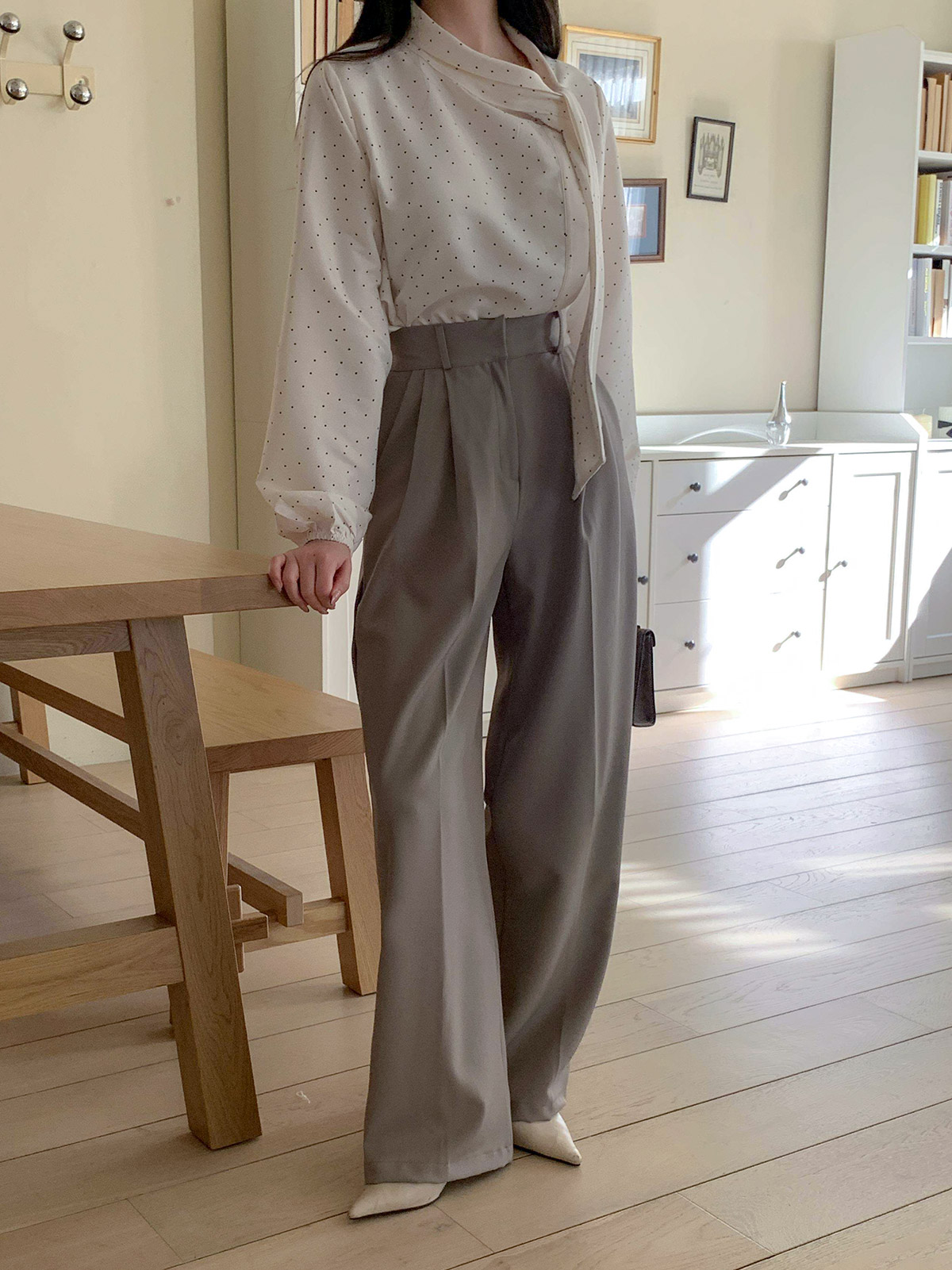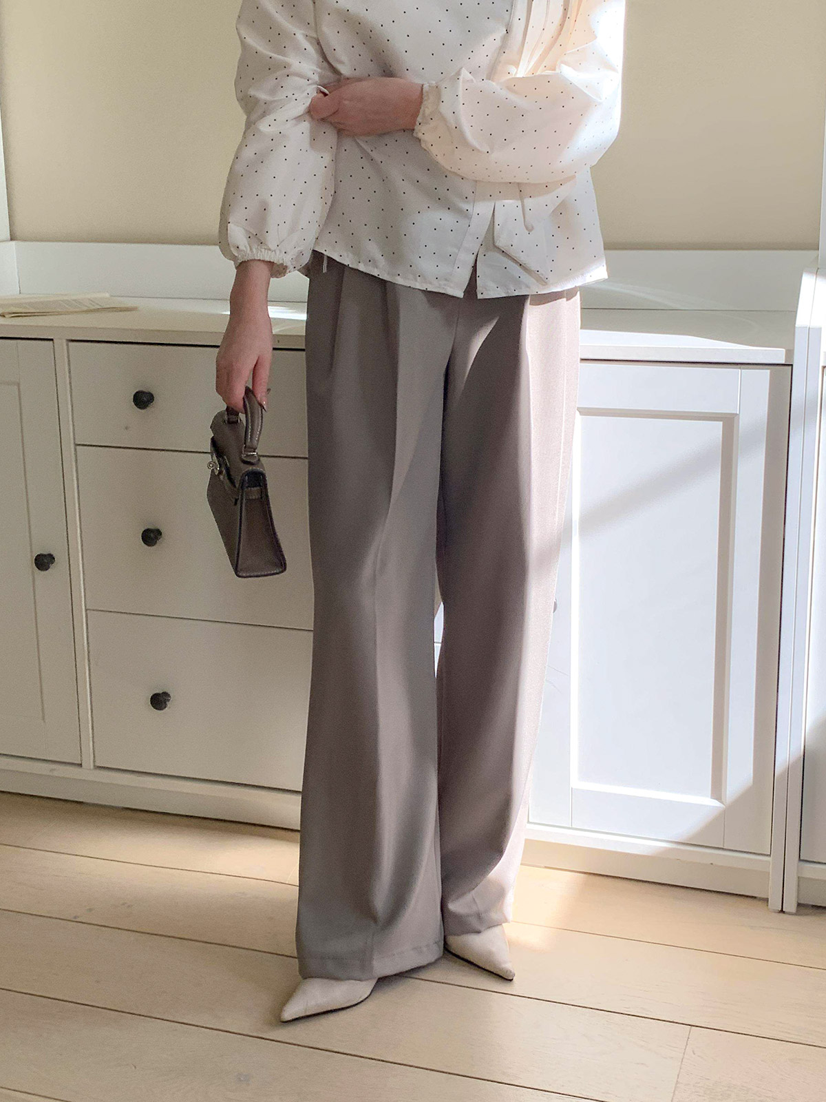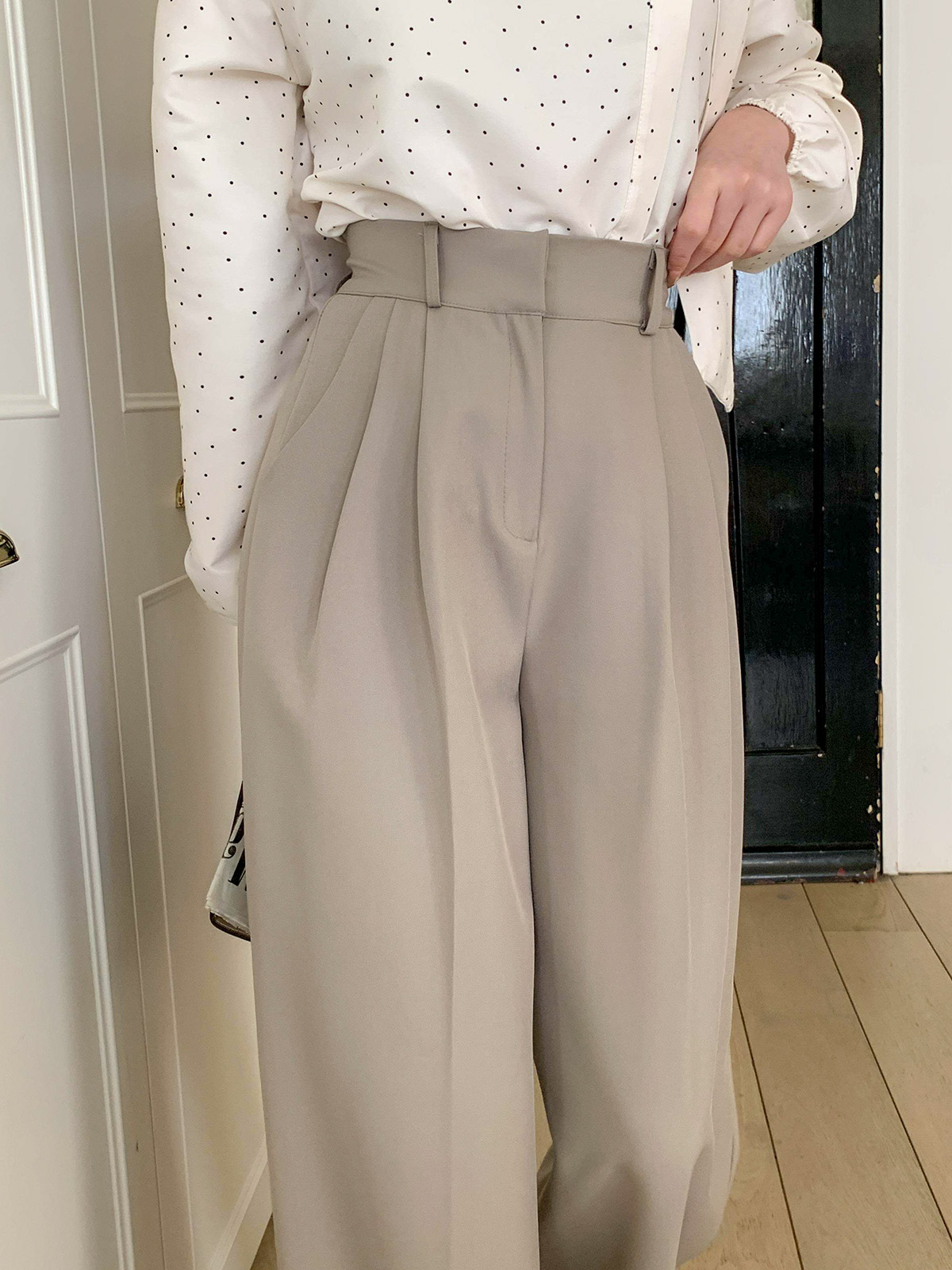찰랑거리는 부드러운 소재의 투핀턱 와이드 슬랙스