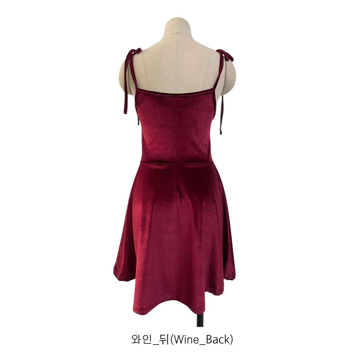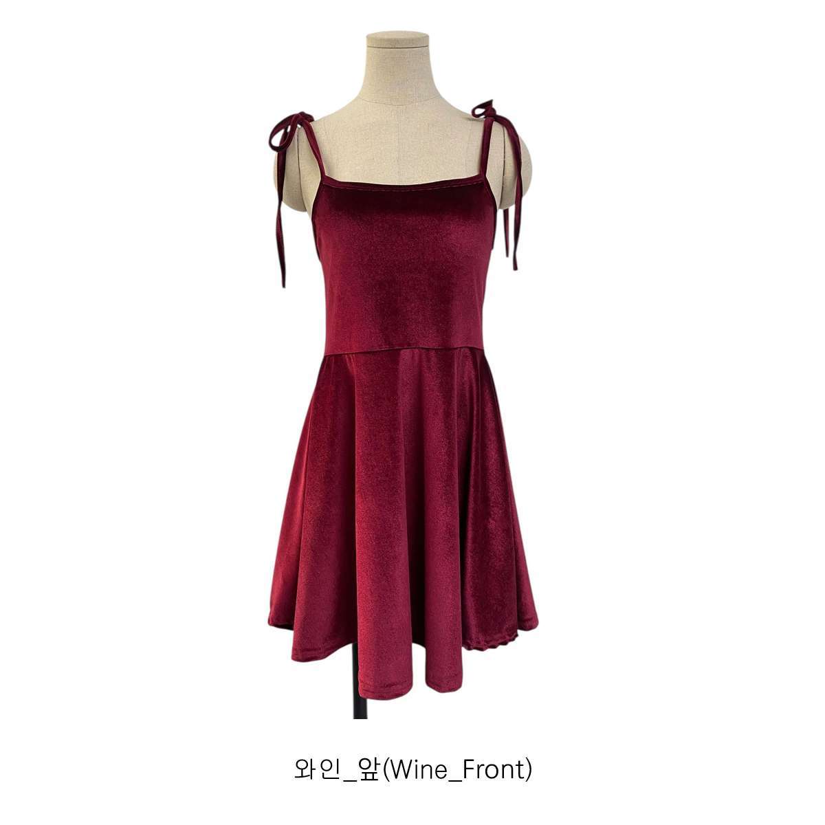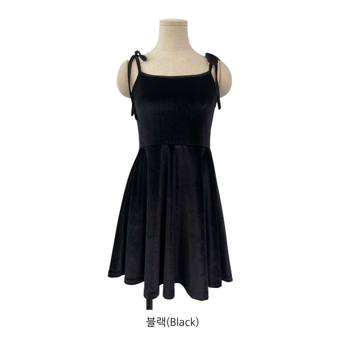 OPS10439K5C-로아벨 리본 나시 플레어 벨벳 미니 원피스