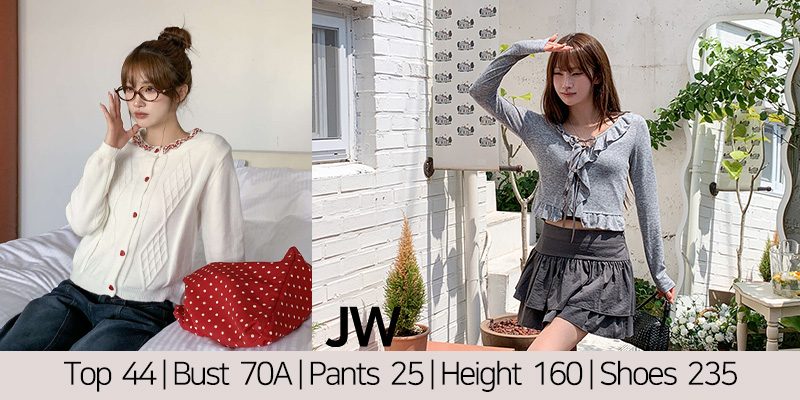 Top 44 / Bust 70A / Pants 25 / Height 160cm / Shoes 235