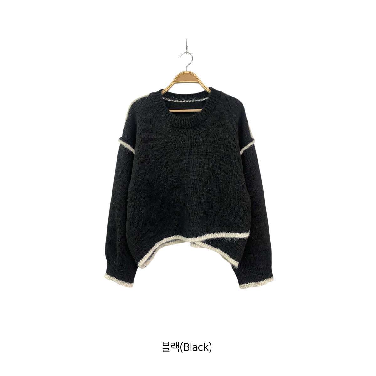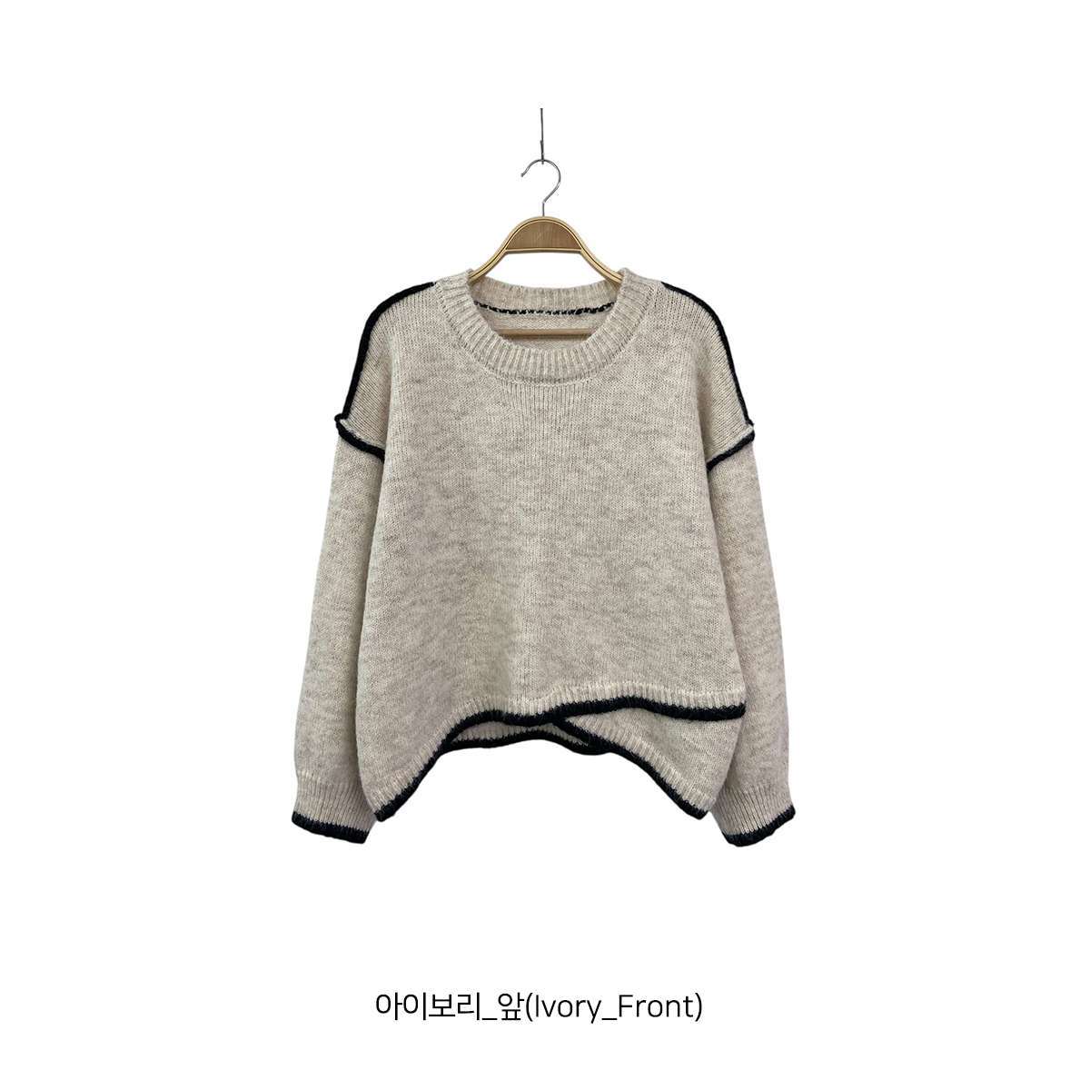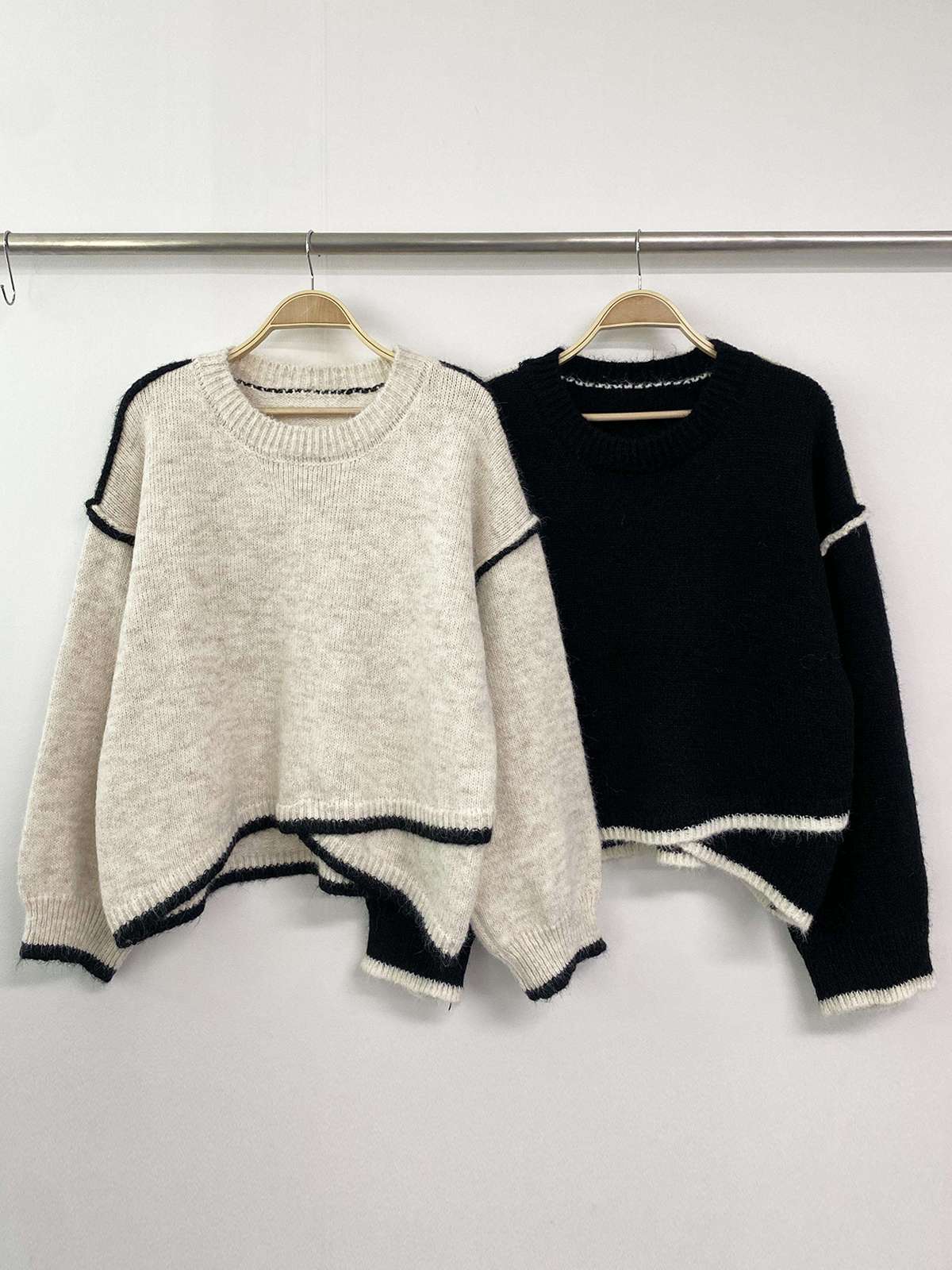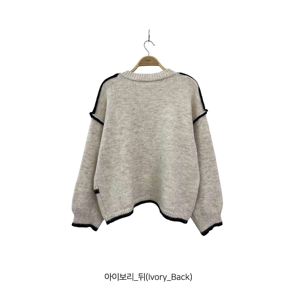NT6123K5C-무아린 배색 라인 루즈핏 니트