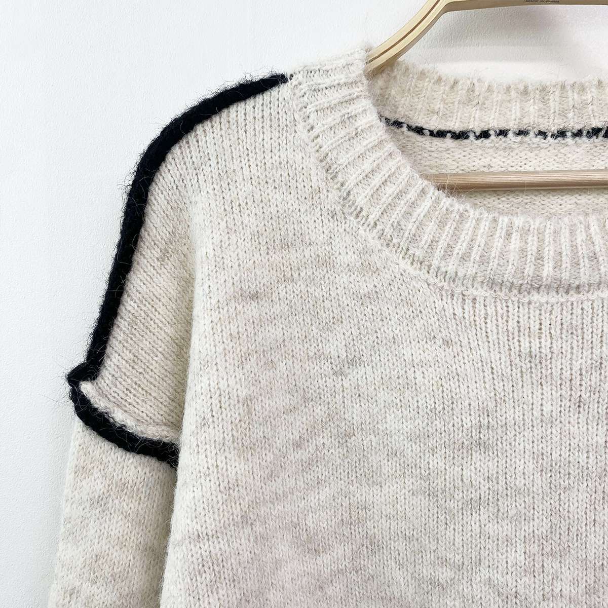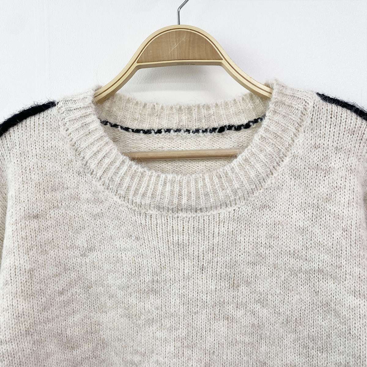 [ NT6123K5C-무아린 배색 라인 루즈핏 니트 ]
